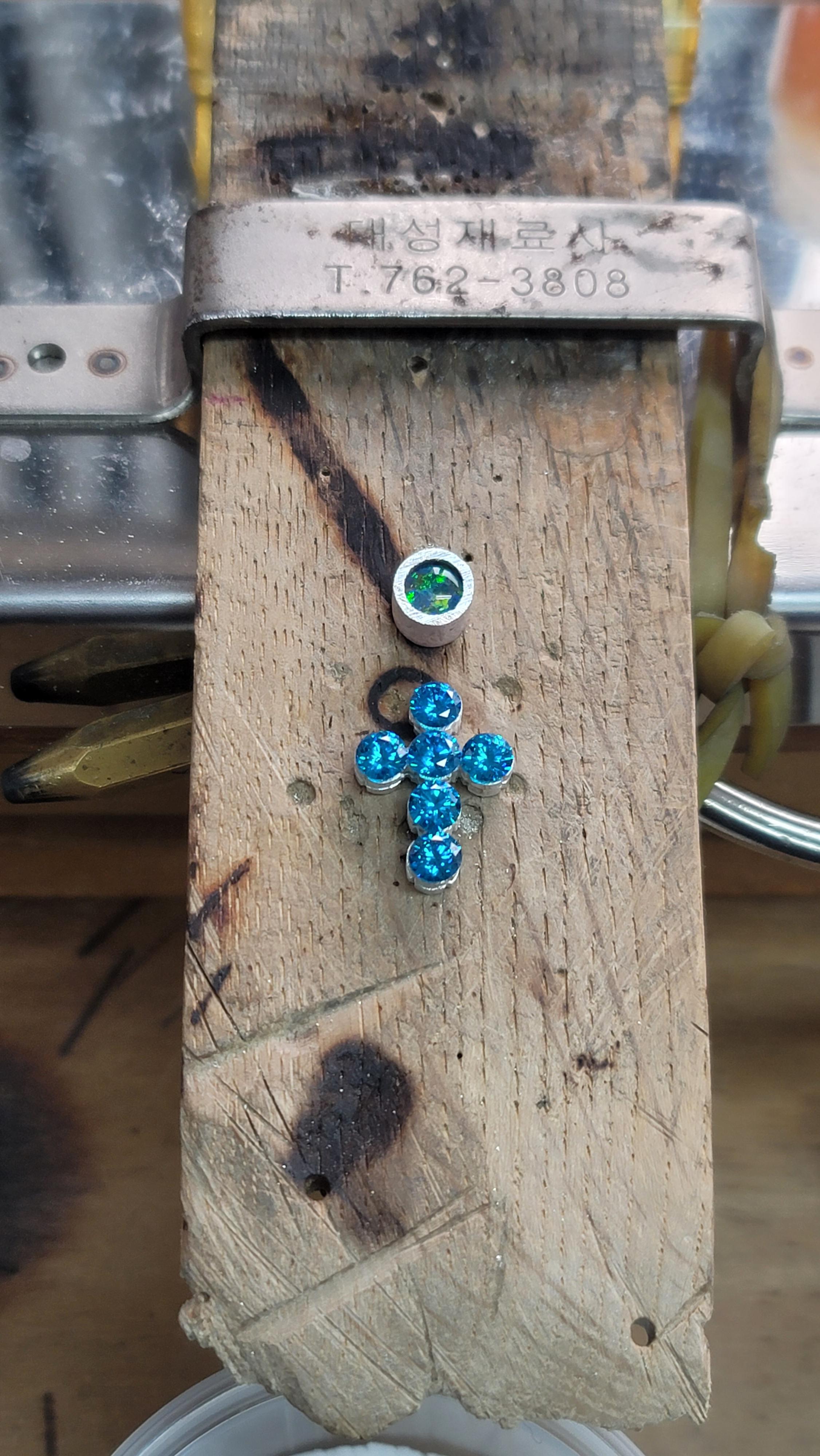 위에 트리플릿 오팔을 하나 포인트로 끼워줍니다.