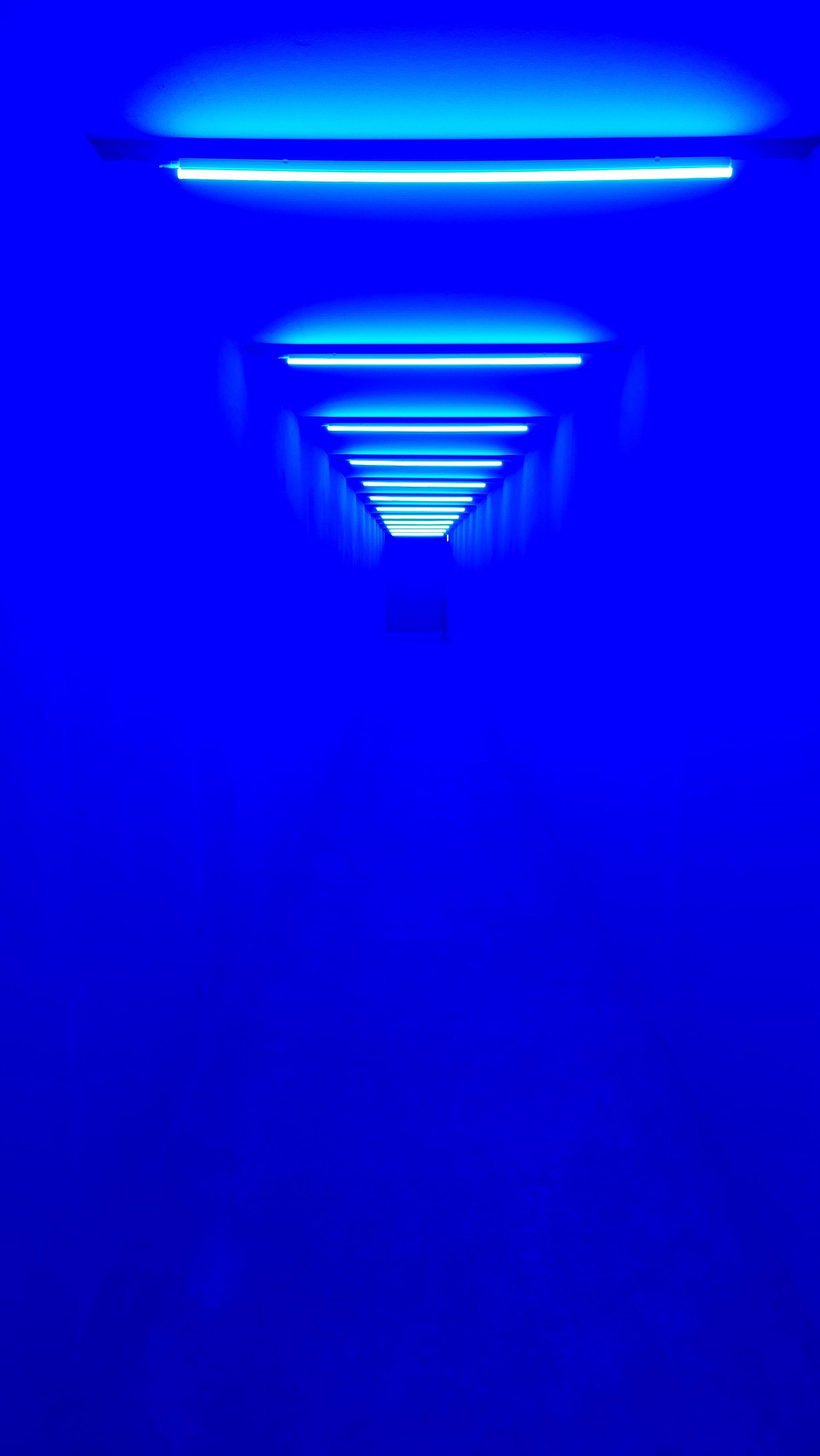 육안으로 보면 보라색이 좀 더 가미된 자외선등 아래 긴 복도를 걸어서 나가야 합니다.