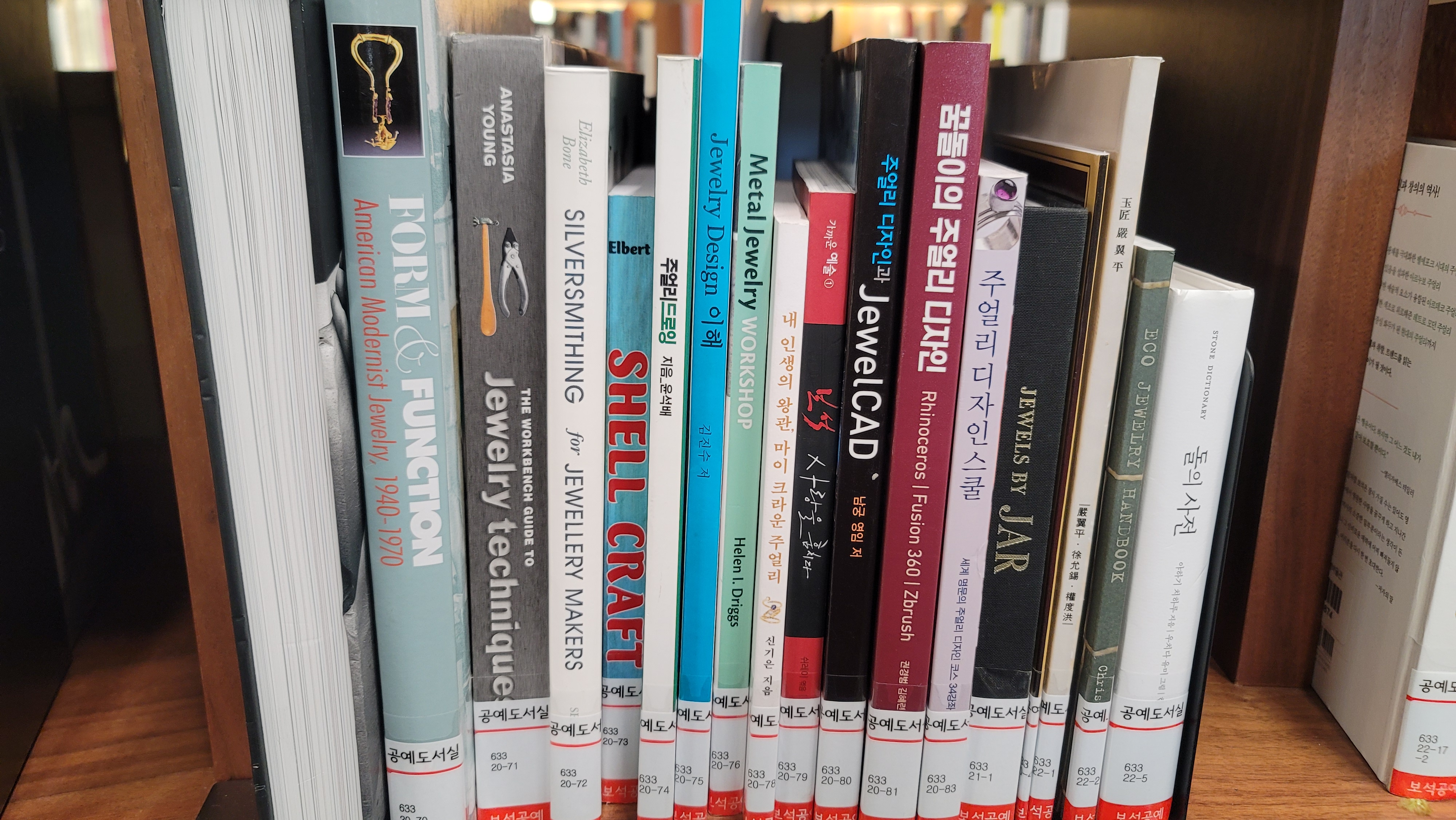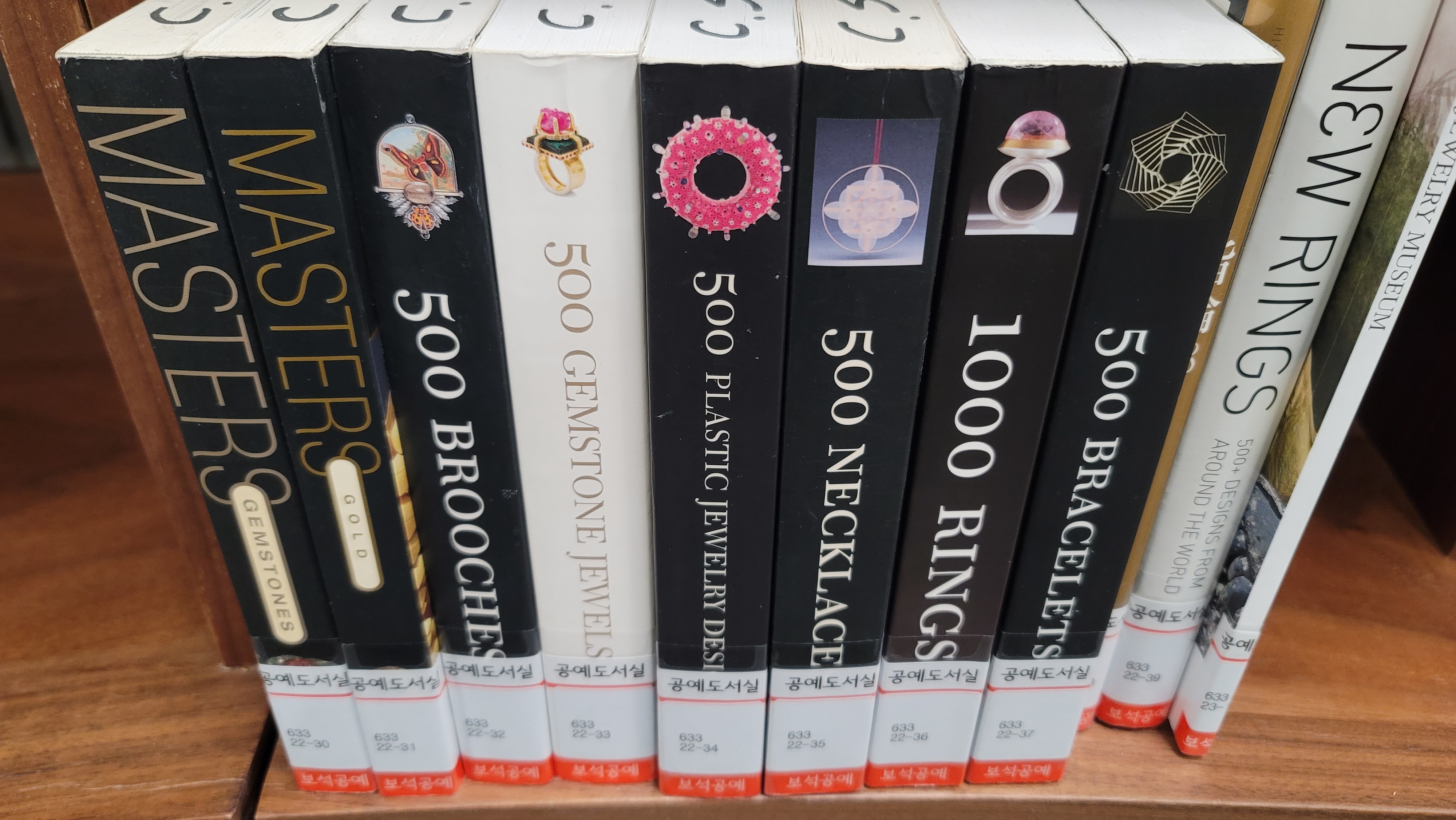 온갖 귀금속, 주얼리 관련 도서가 외서까지 다 모여있어요.