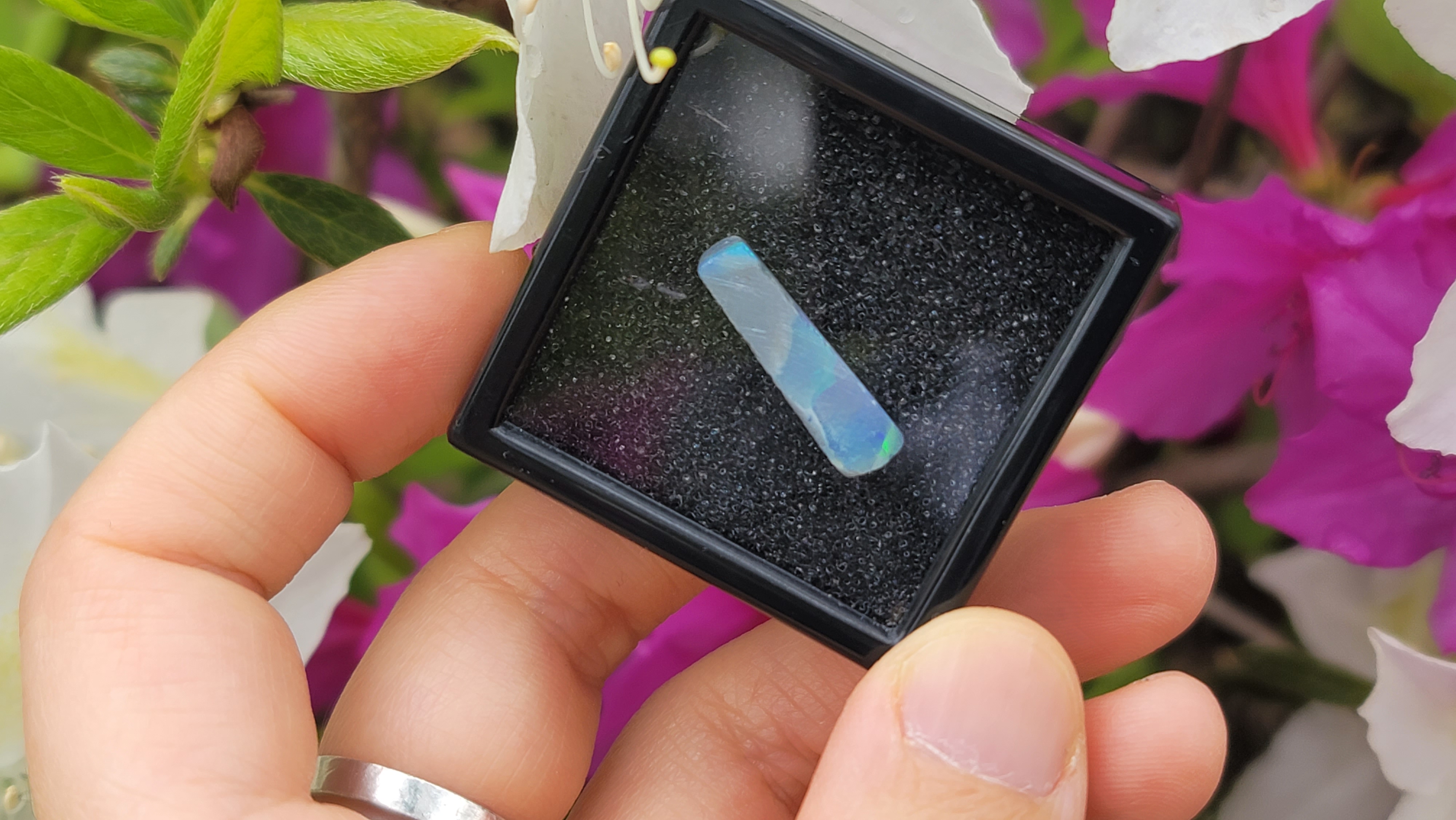 이 길쭉한 녀석은 옆으로 누웠을 때 가장 광채가 낫기 때문에 넥타이핀 같은 세팅이 좋지 않을까 생각하고 있습니다.