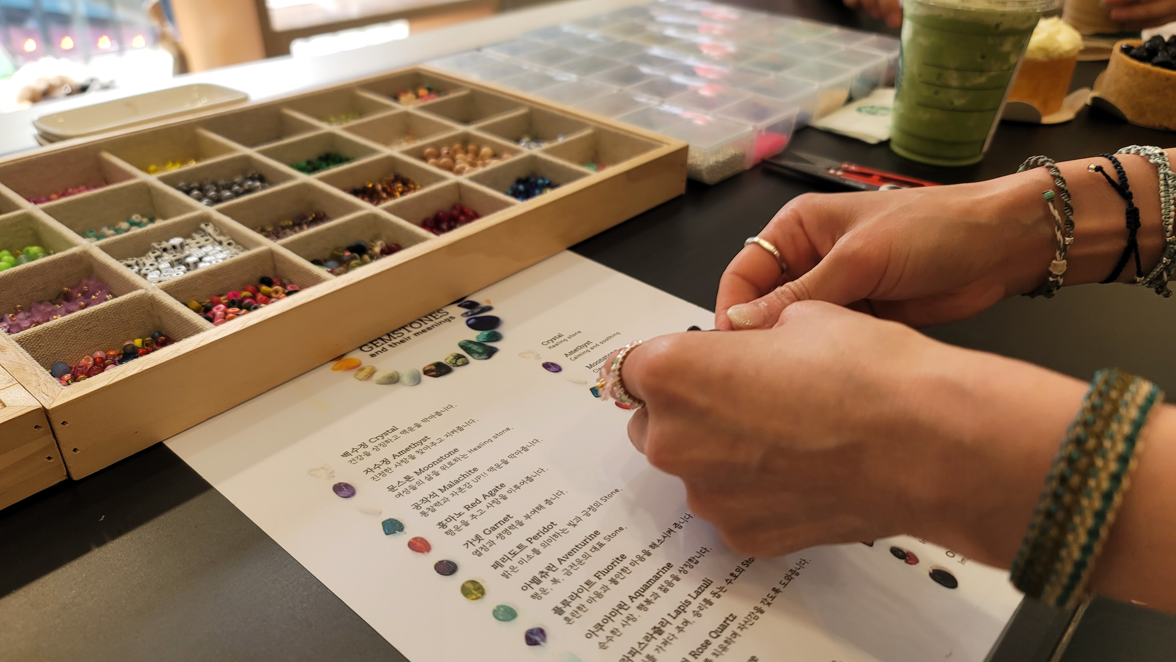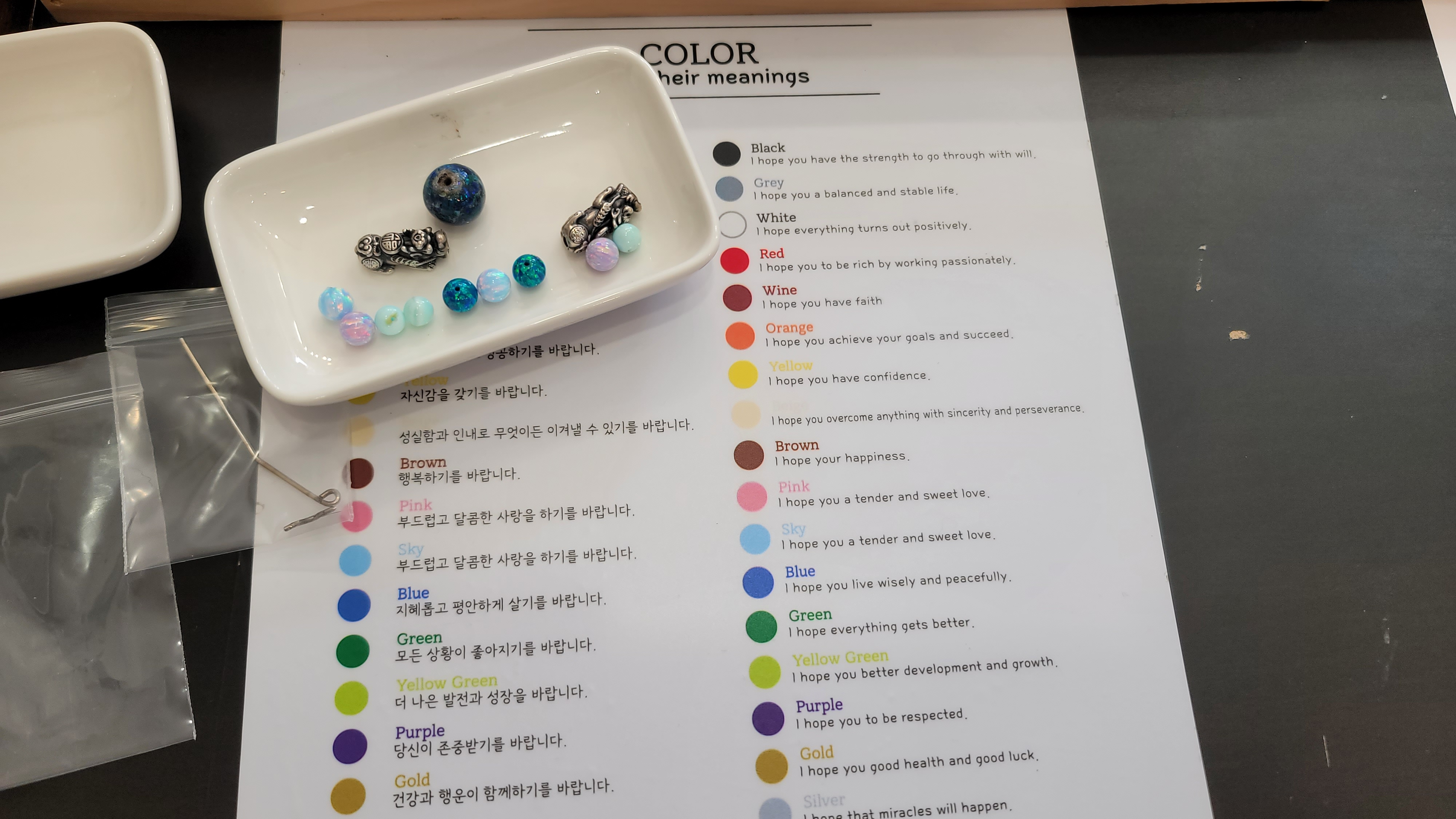 중간에 비드를 끼우는 게 조금 힘들어서 공방 사장님께서 거의 해주셨습니다. ㅋㅋ