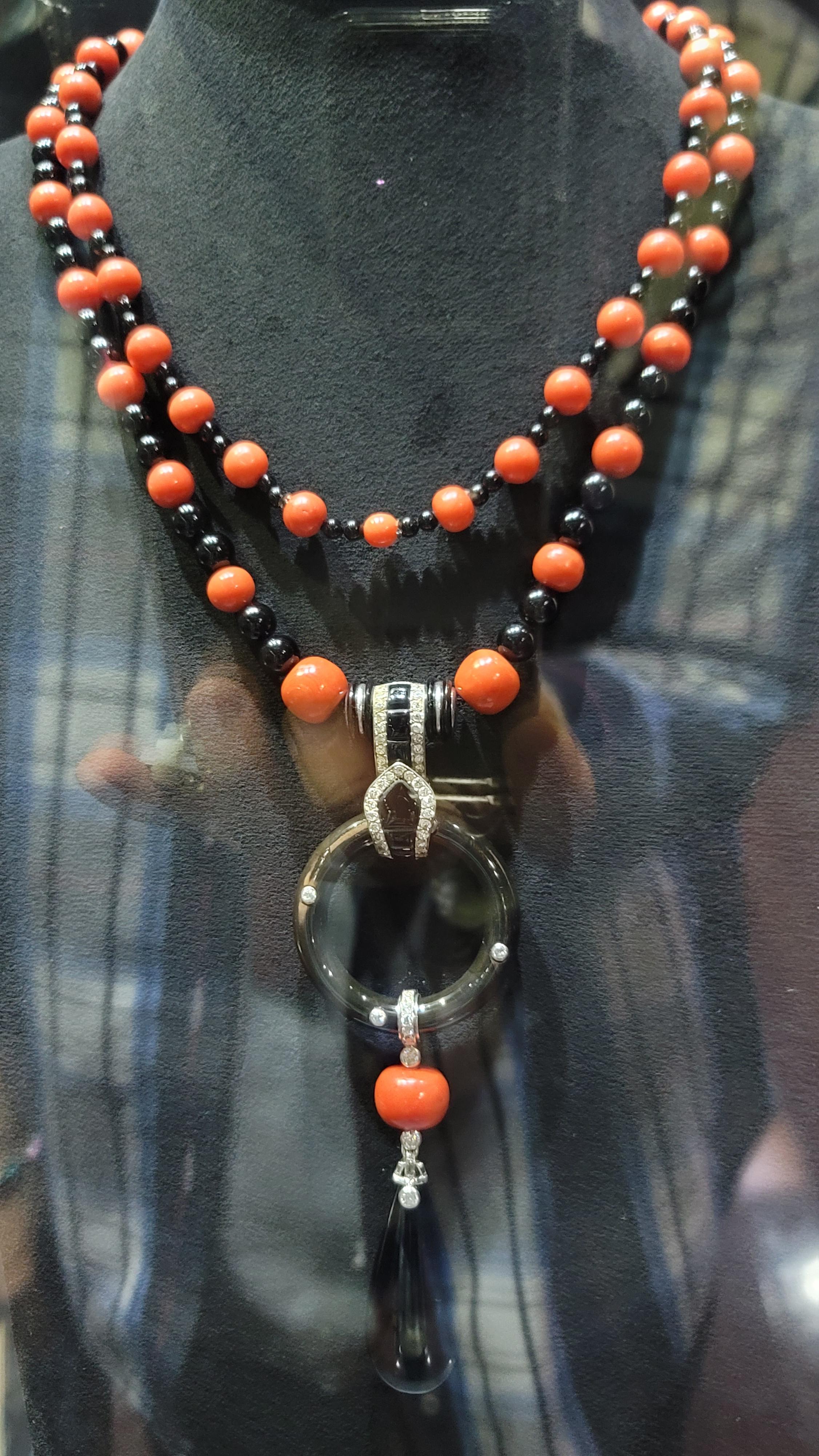 산호와 오닉스로 만든 아르데코 시대의 목걸이. 소투아르(sautoir)라고 부르는 것 같더군요.
