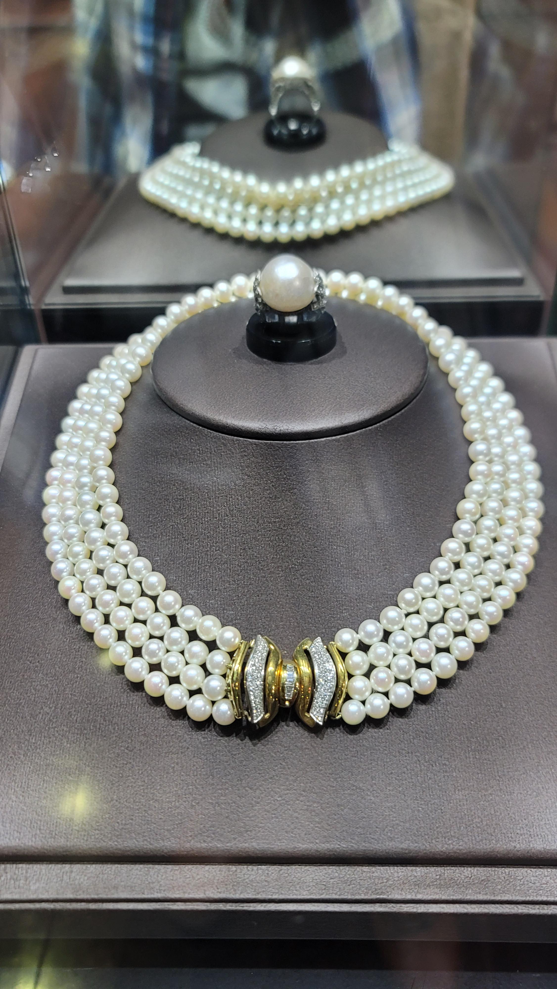 다미아니의 진주와 다이아몬드 목걸이 + 진주 칵테일 반지.