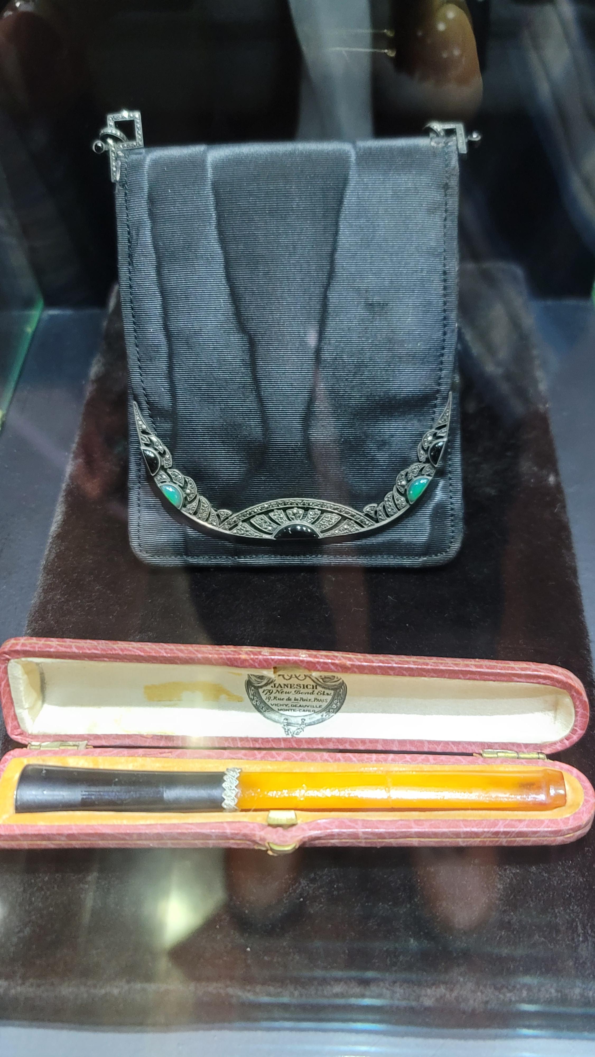 아르데코 이브닝 백 + 호박 오닉스 담뱃대.