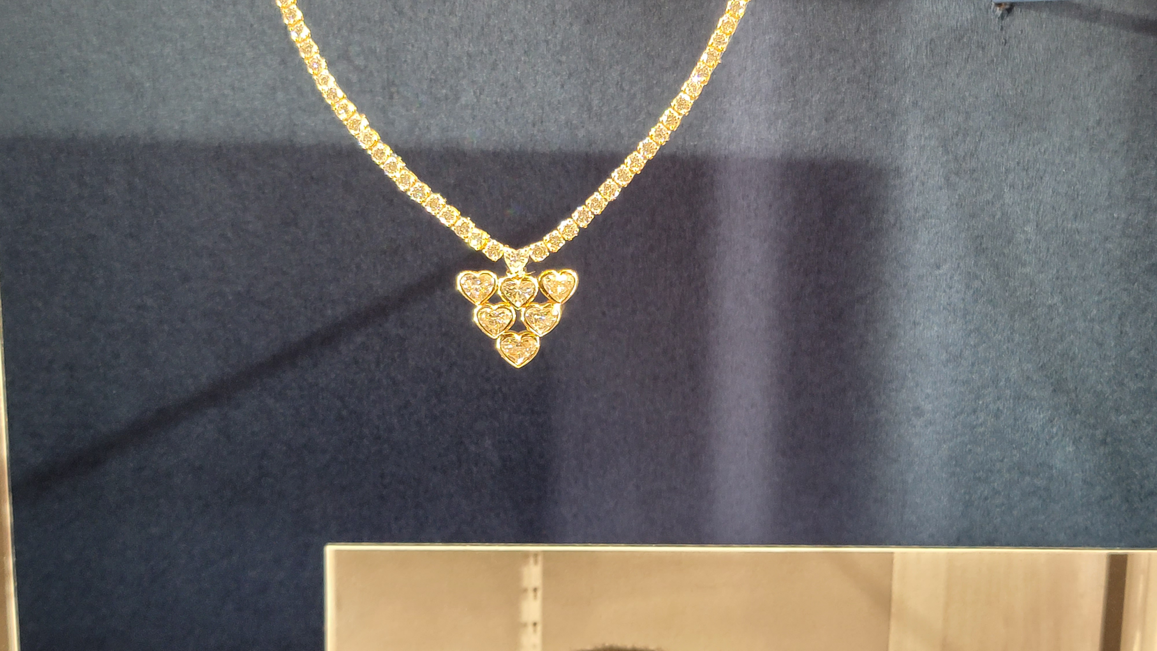 창립자 프레드 사무엘이 결혼기념일에 아내에게 선물했다는, 하트 다이아몬드 6개를 모아 만든 하트 목걸이입니다.
