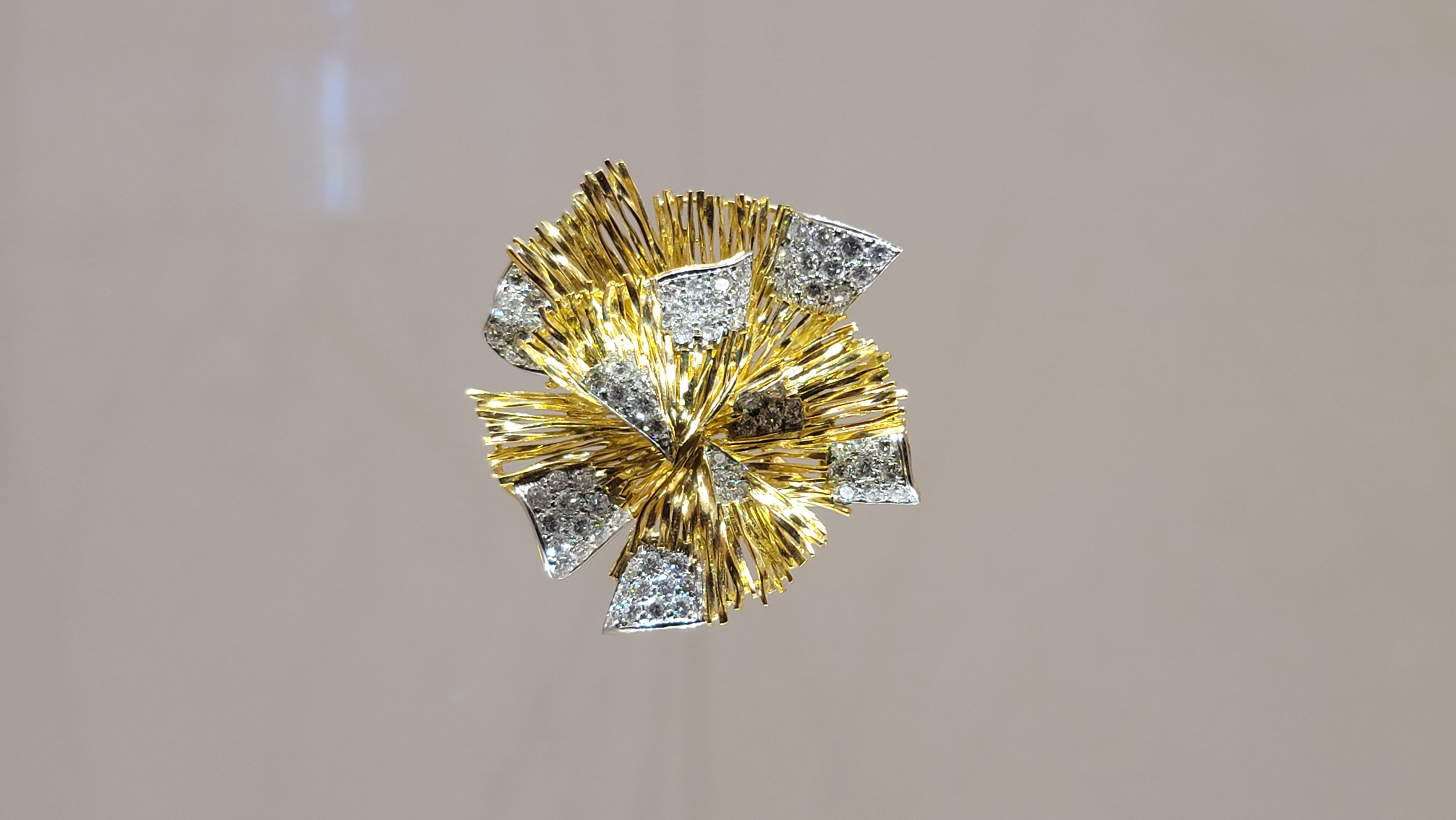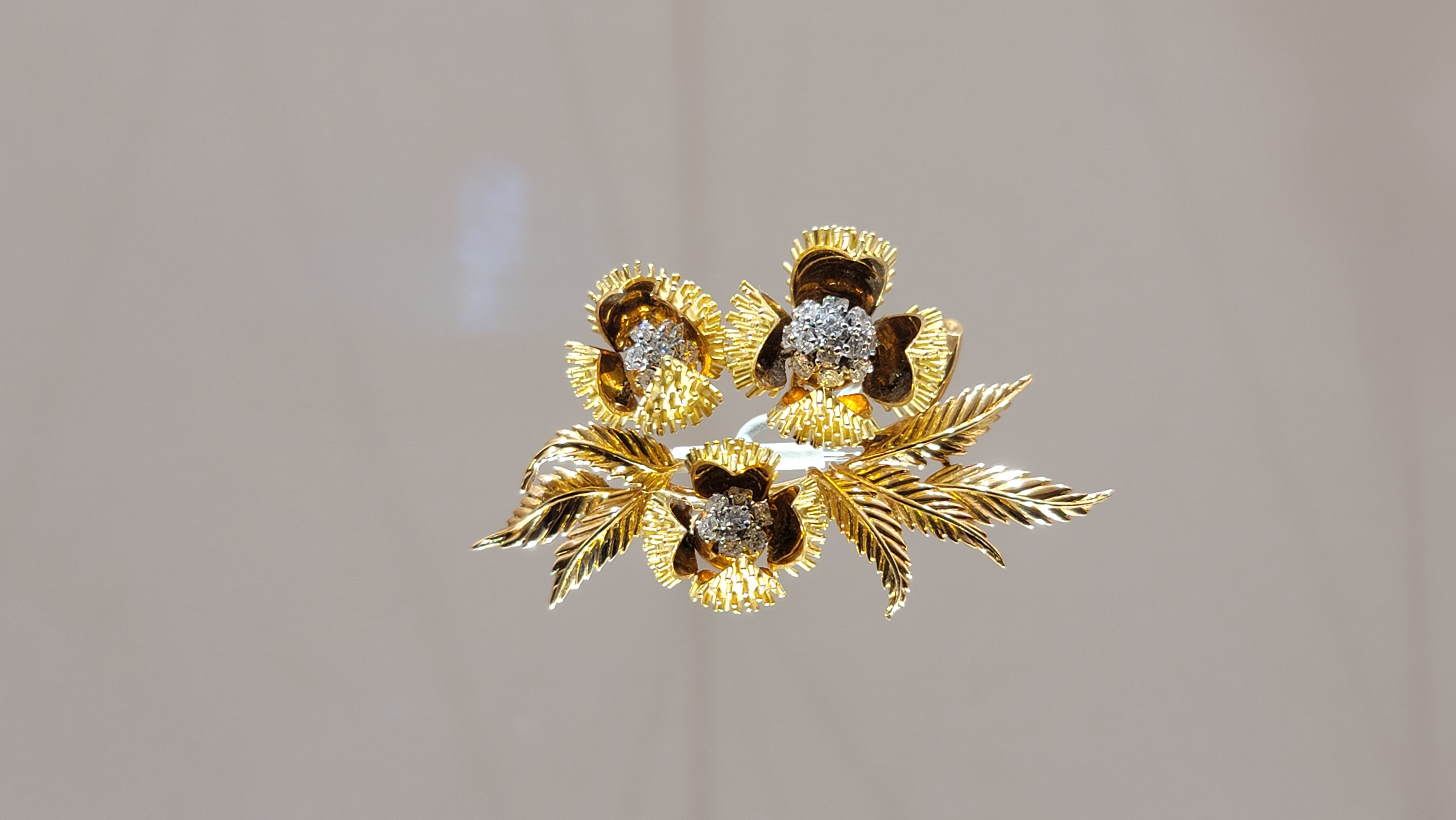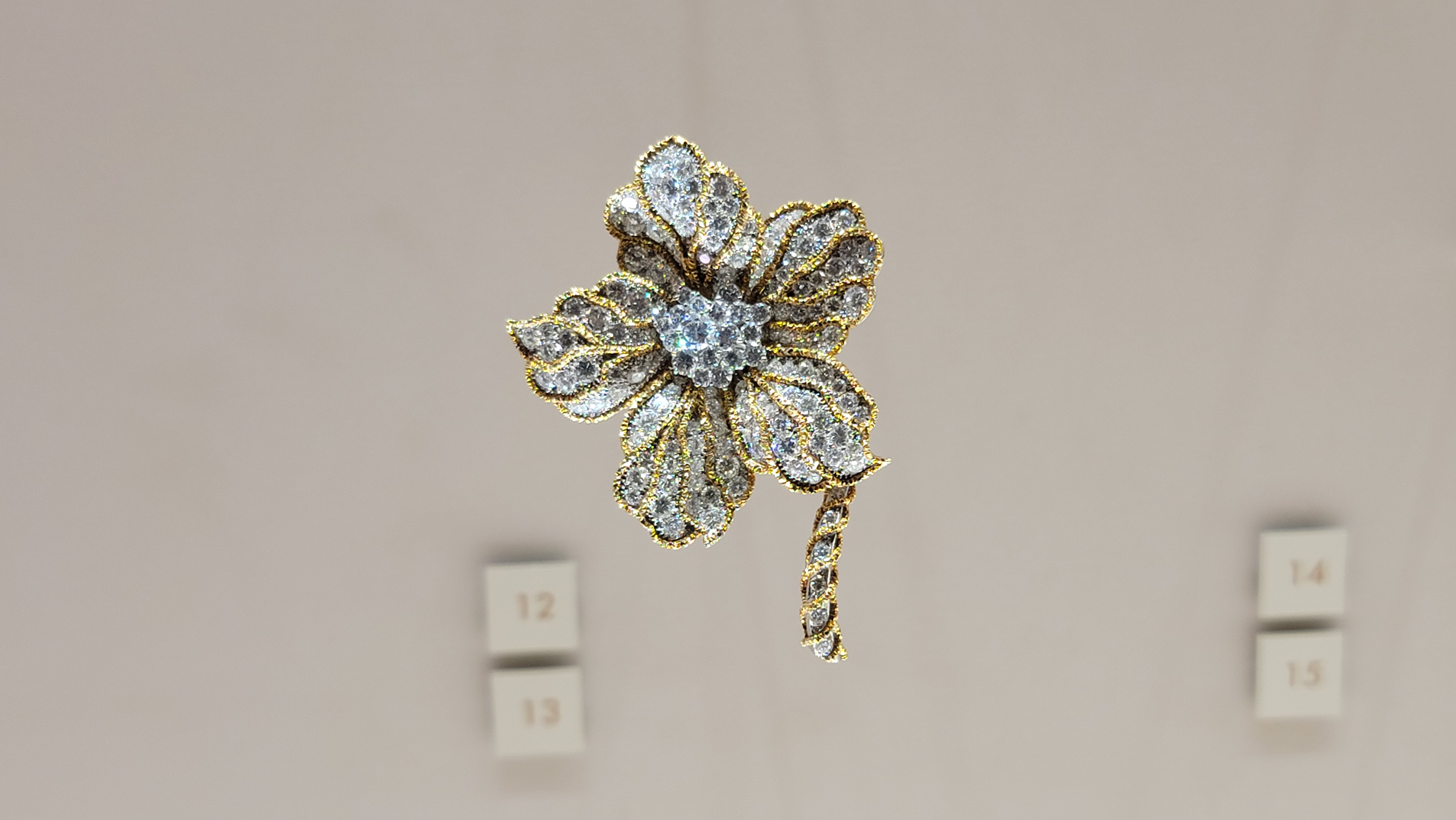 이건 꽃 가운데 세팅한 다이아몬드 난집 뒤에 스프링을 붙여서 흔들리게 만든 브로치입니다.