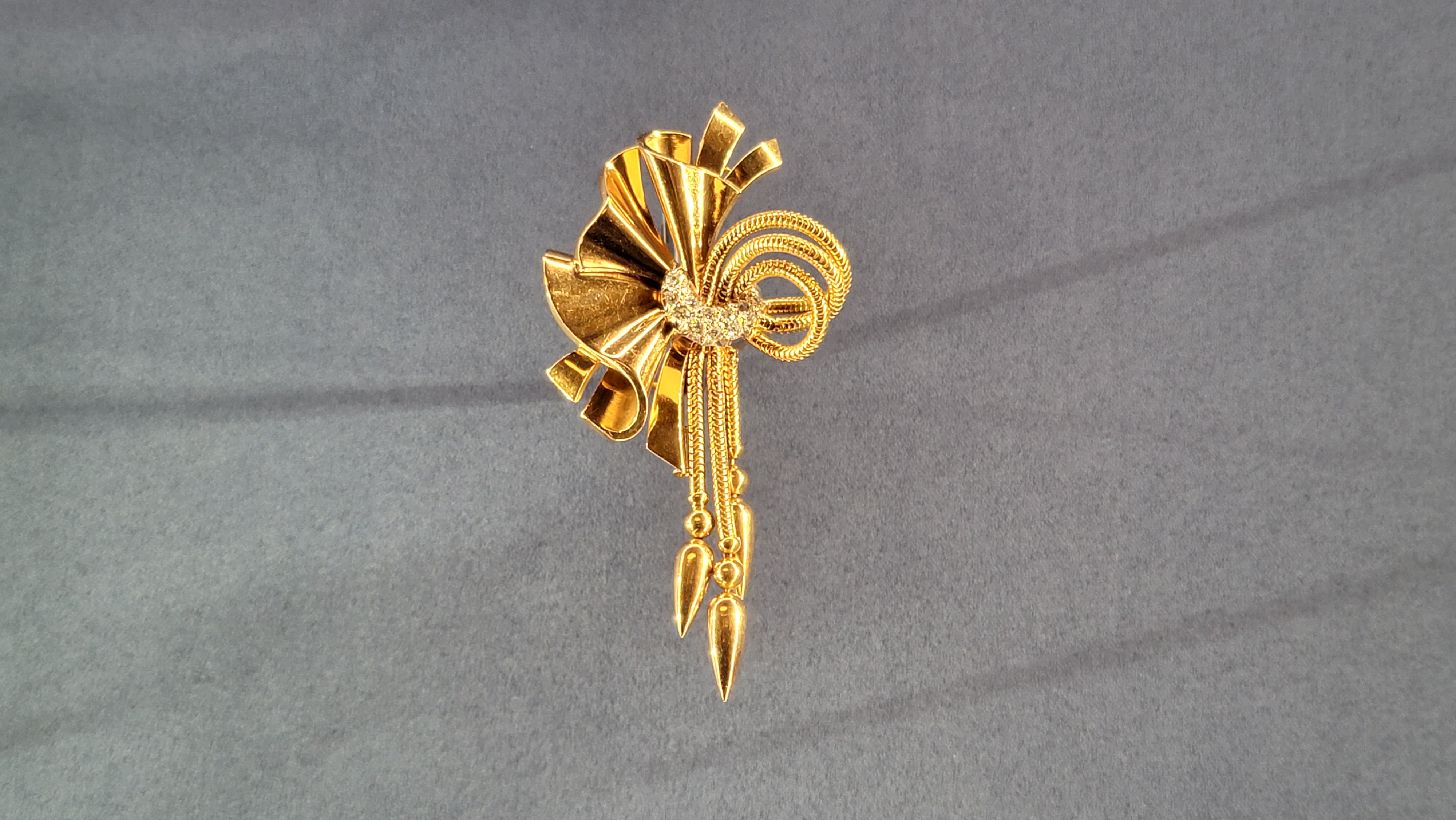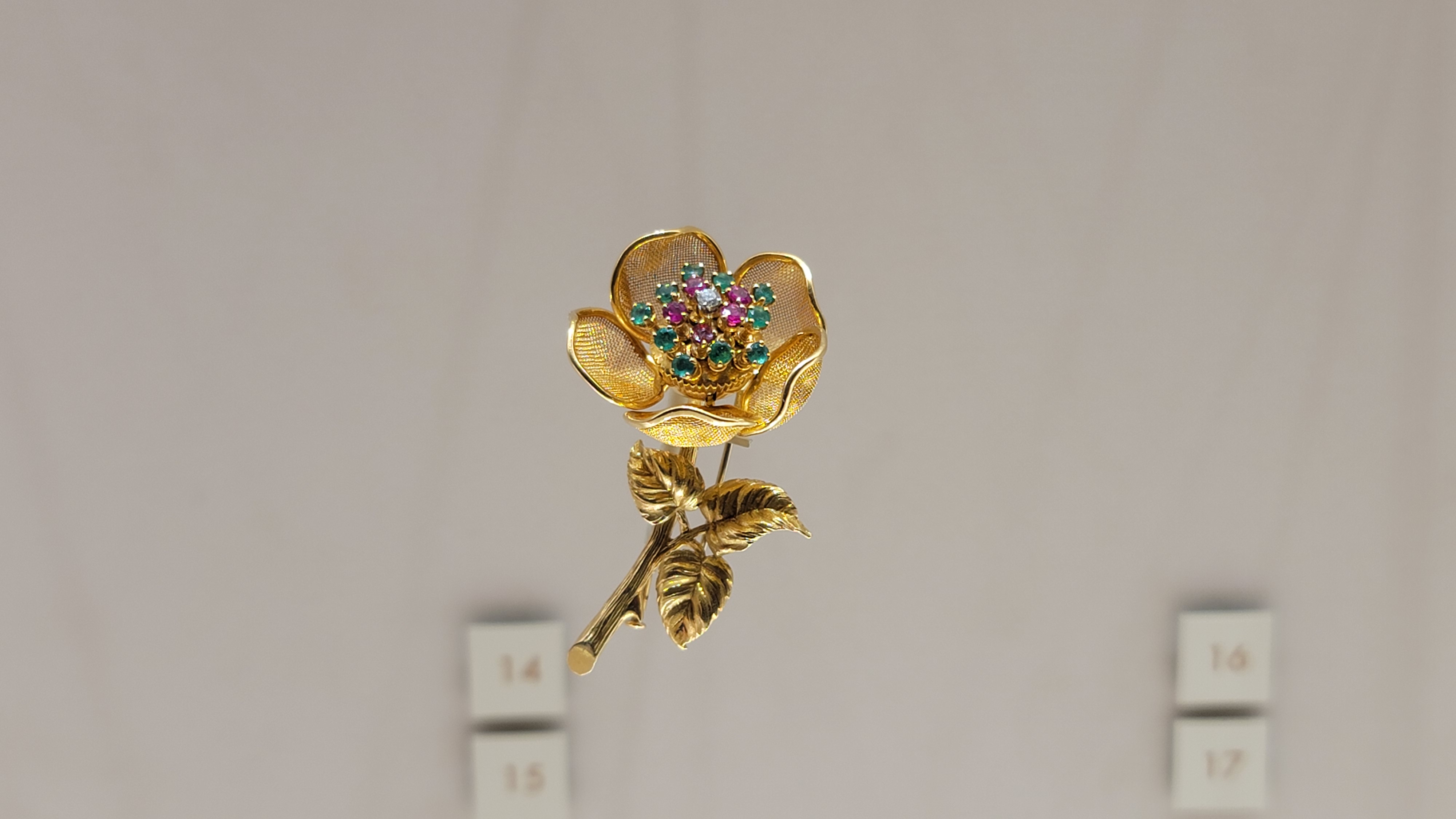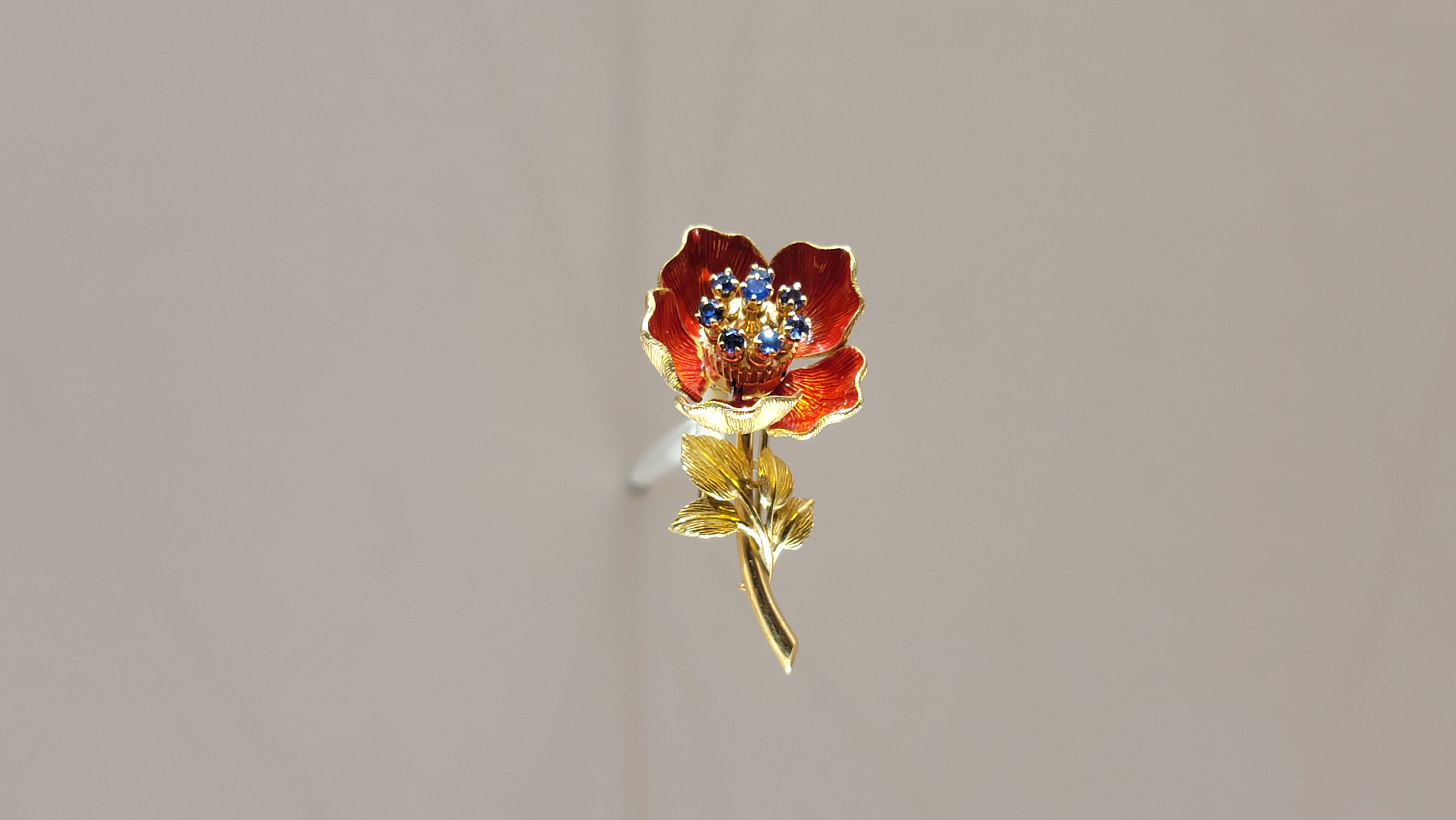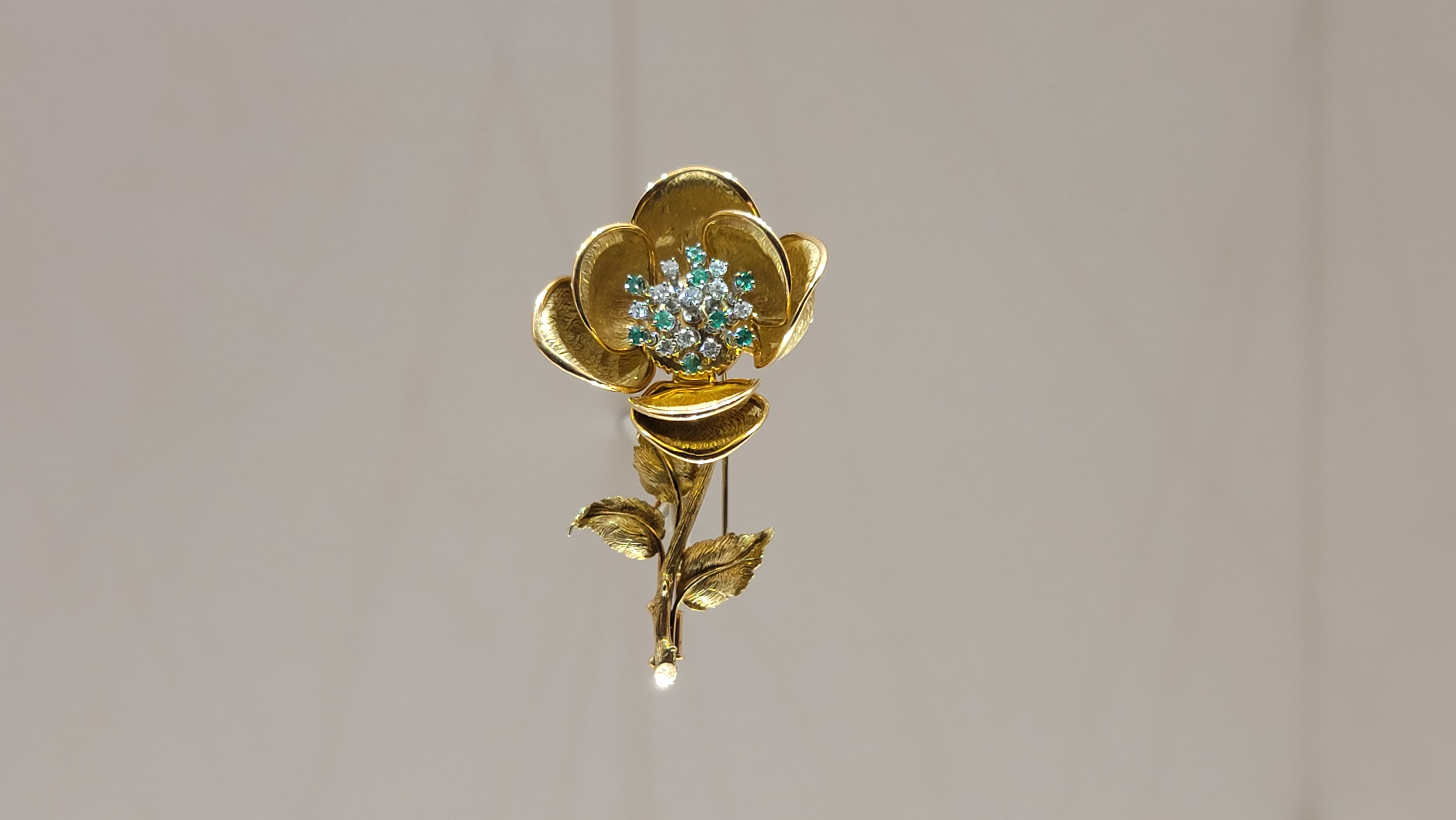 이건 꽃 가운데 세팅한 다이아몬드 난집 뒤에 스프링을 붙여서 흔들리게 만든 브로치입니다.