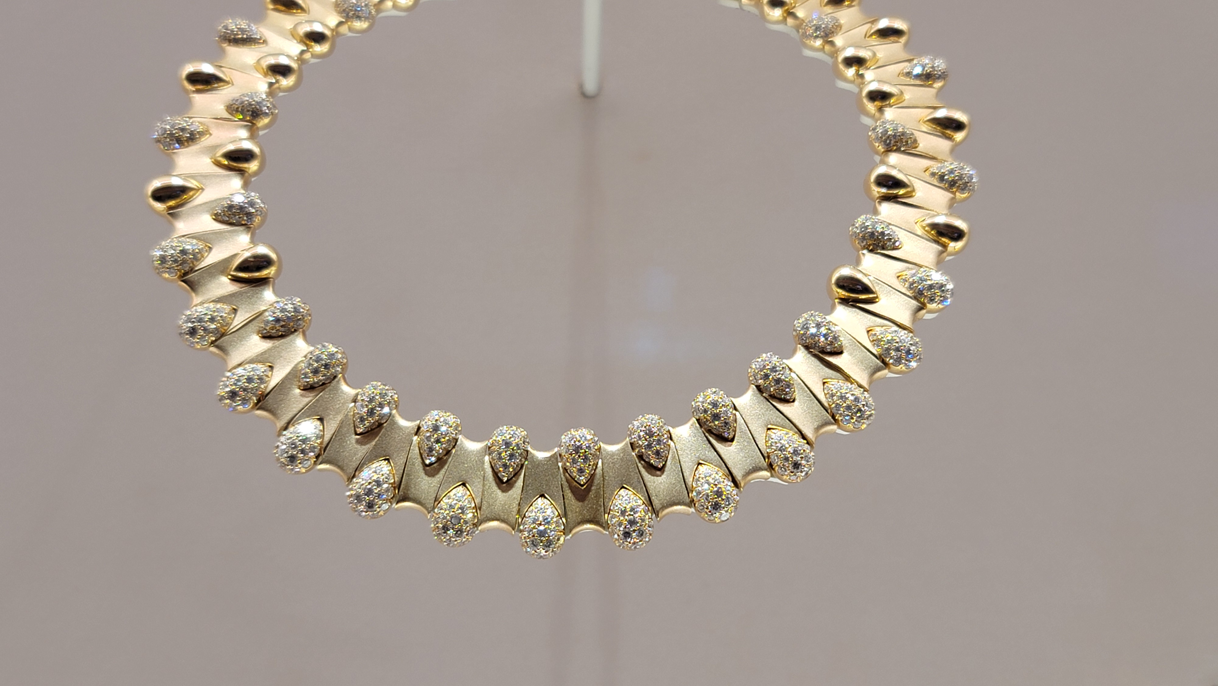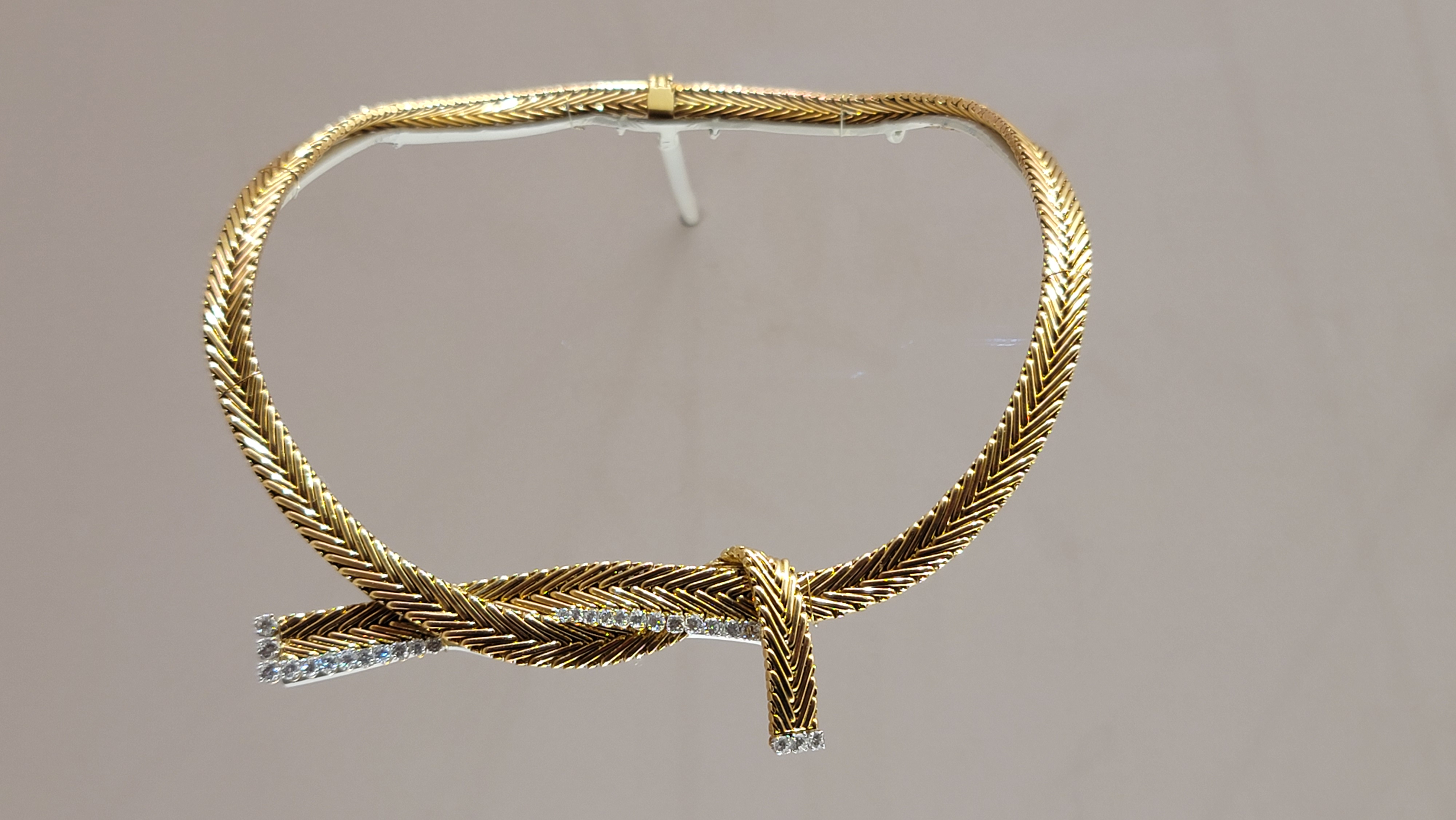 이 목걸이는 그대로 금을 짜는 데 그치지 않고 끝에 다이아몬드를 세팅했네요.