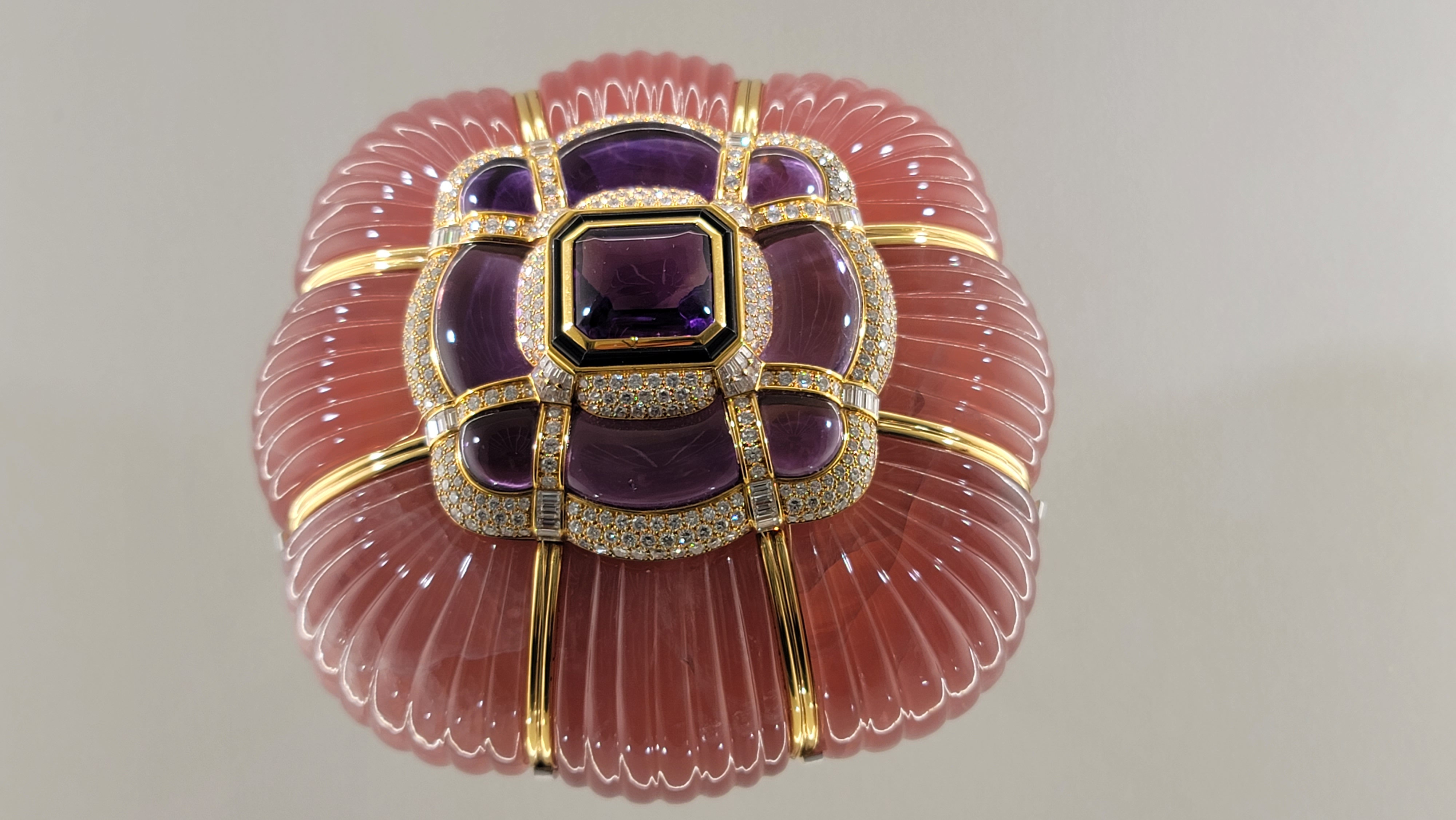 본체는 로즈쿼츠, 즉 장미 수정으로 수정류는 꽤나 크게 산출되는 보석입니다.