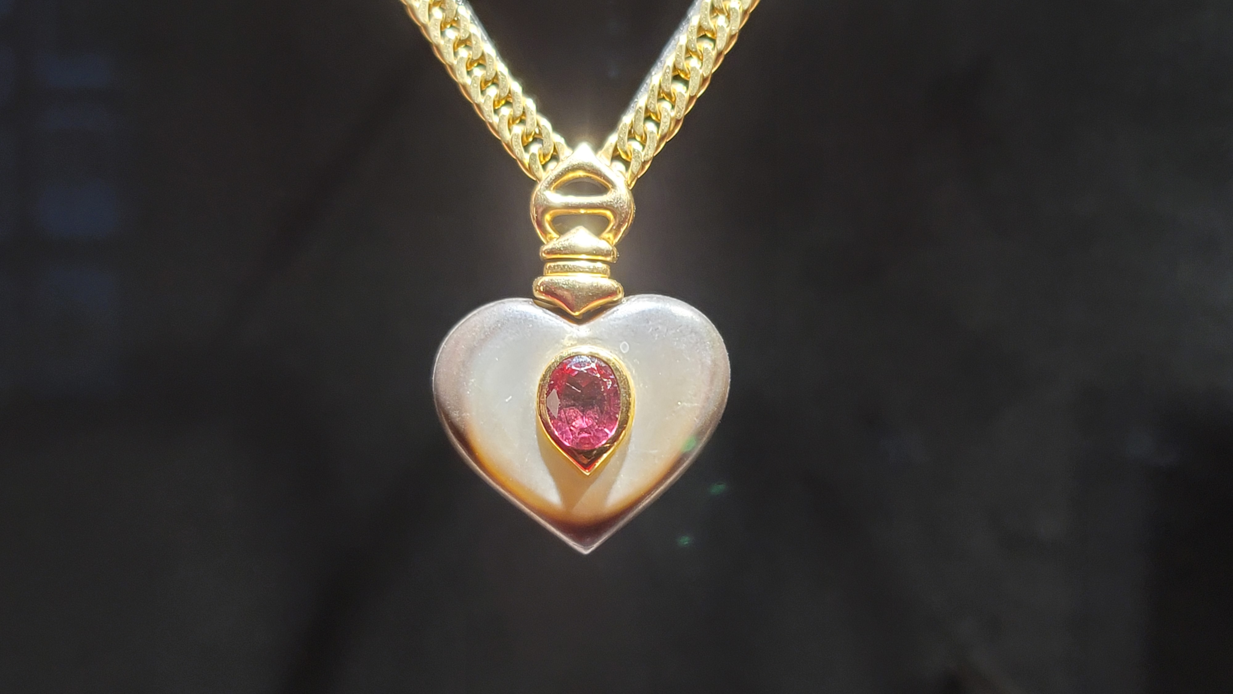 이 목걸이의 하트 부분은 자개를 썼습니다.
