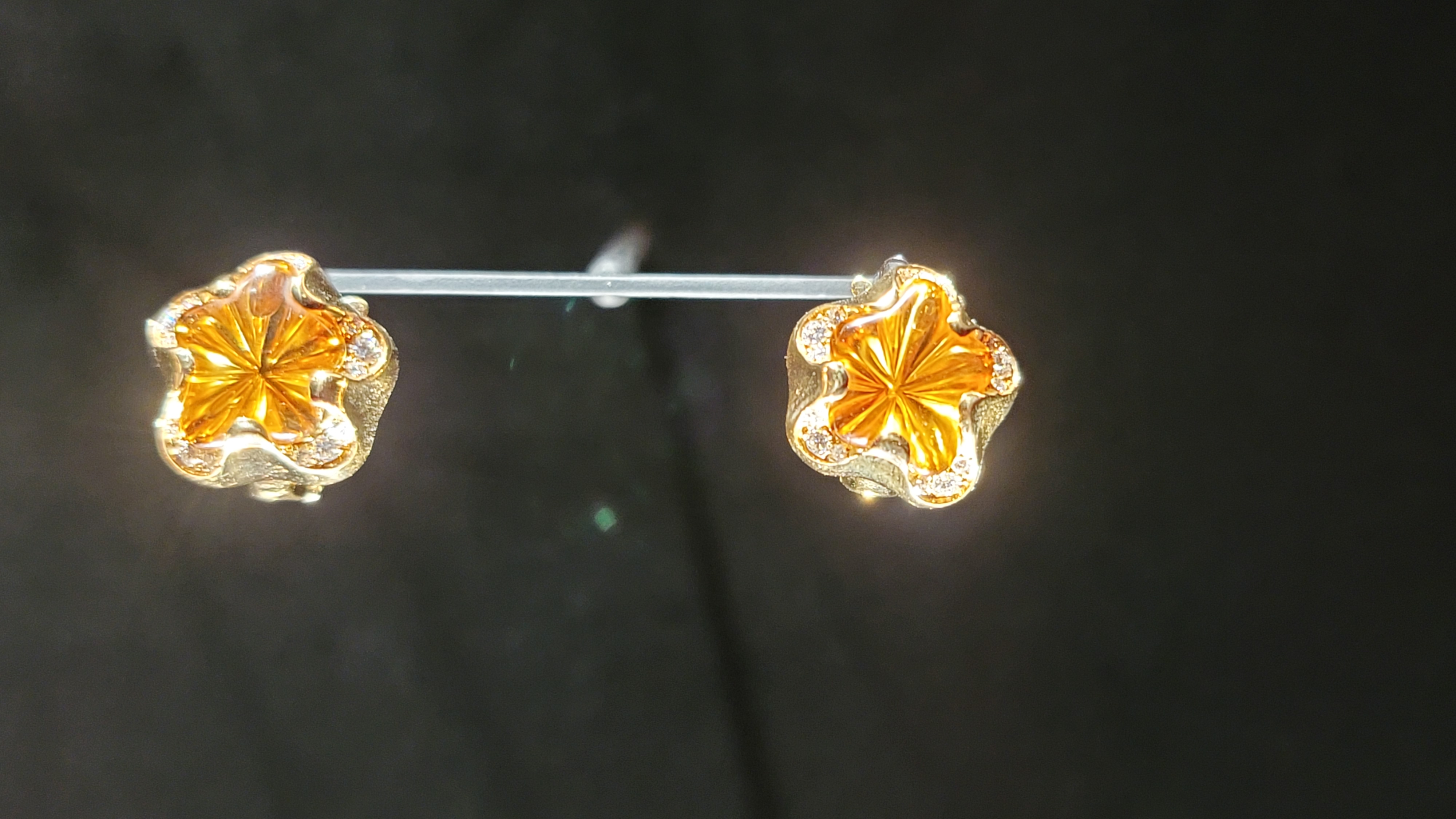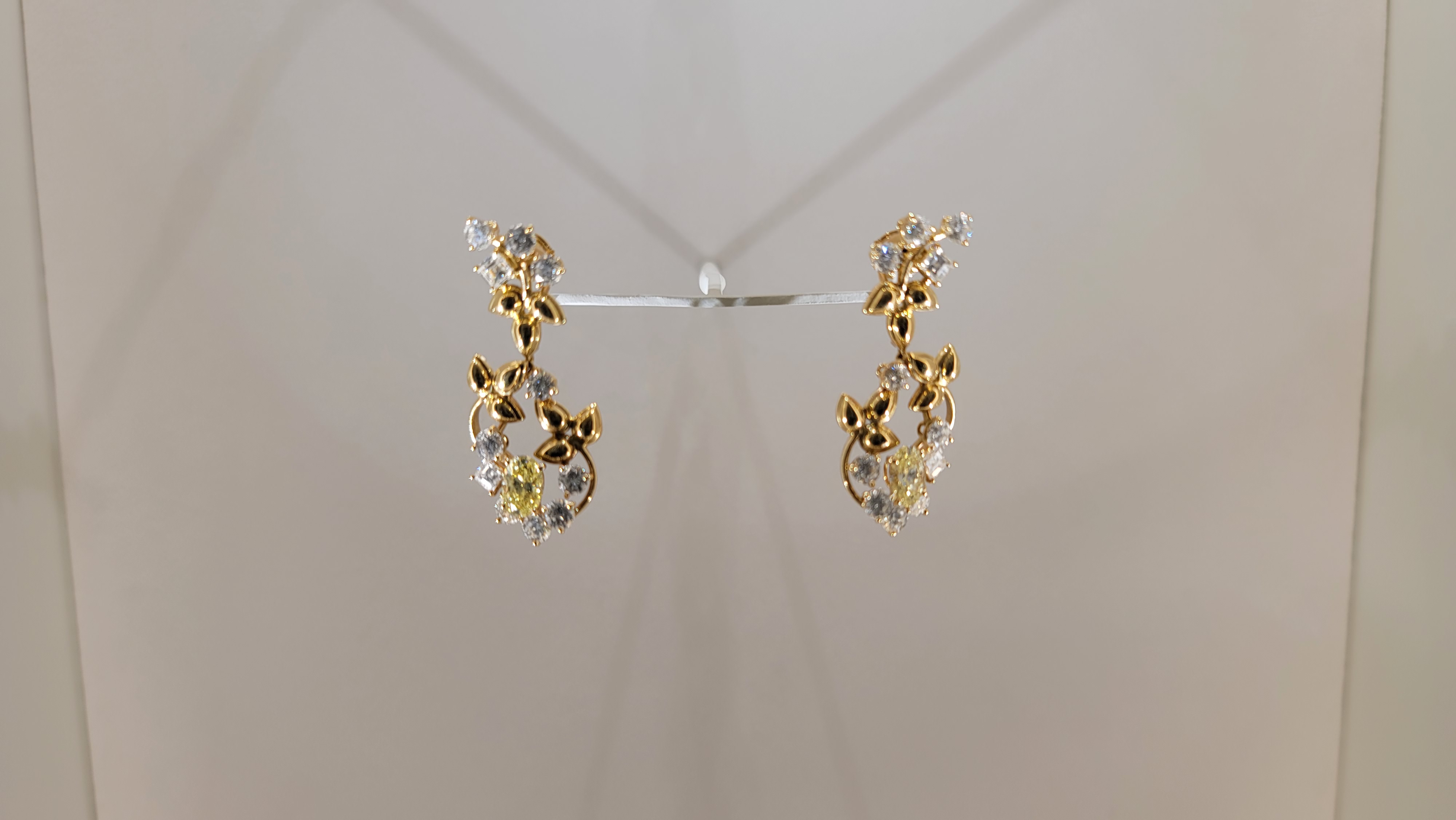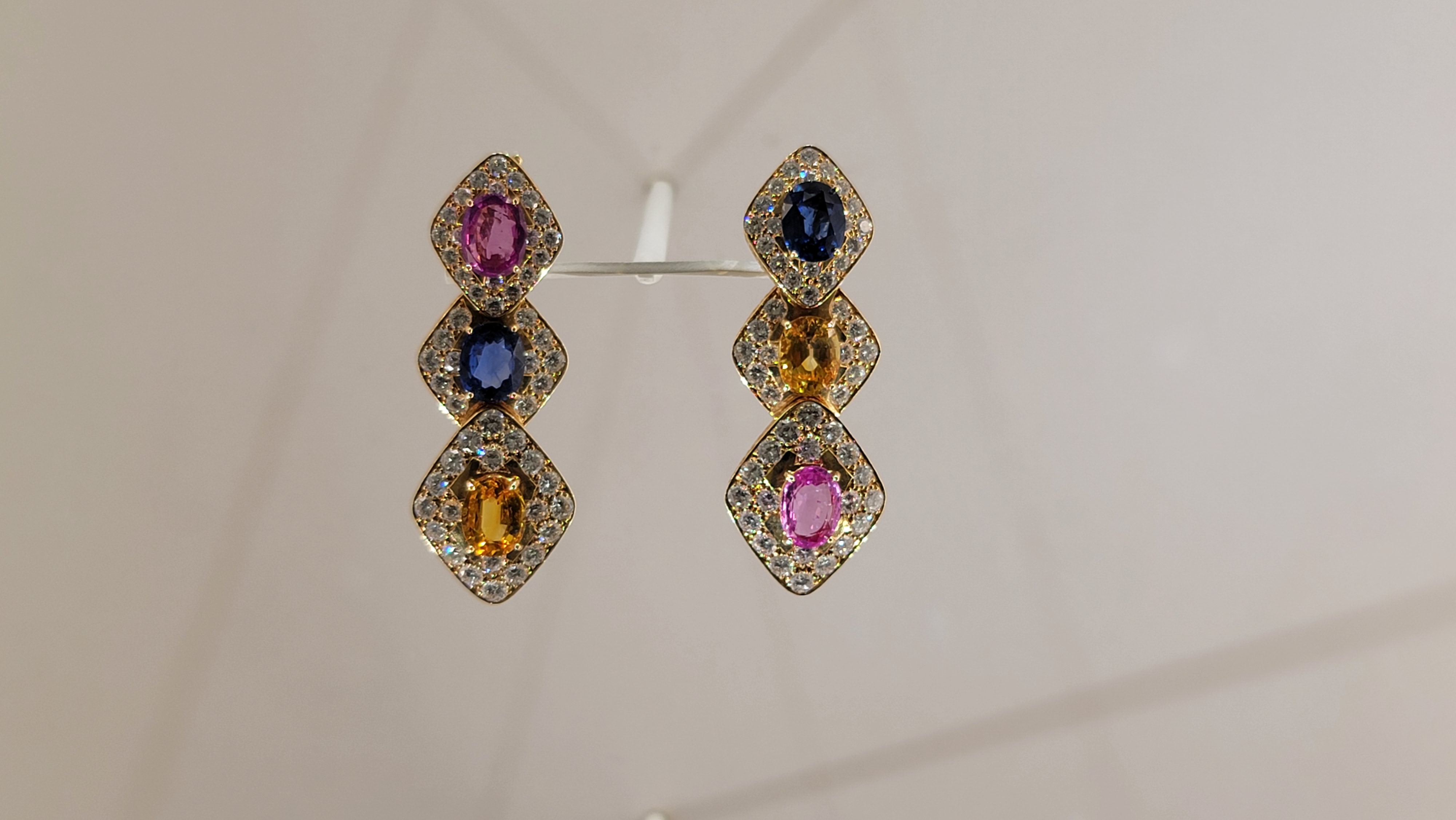 귀걸이를 구성하는 마름모꼴 각각의 크기가 미묘하게 다르고, 보석의 색상 역시 배치를 달리했습니다.