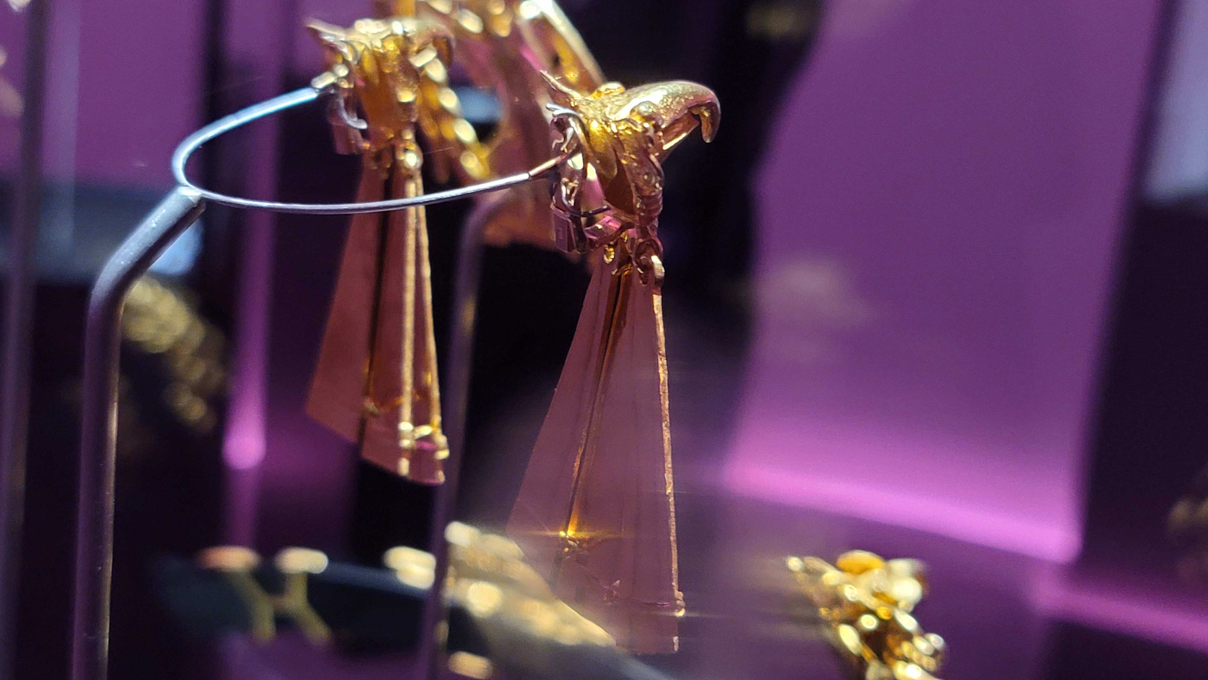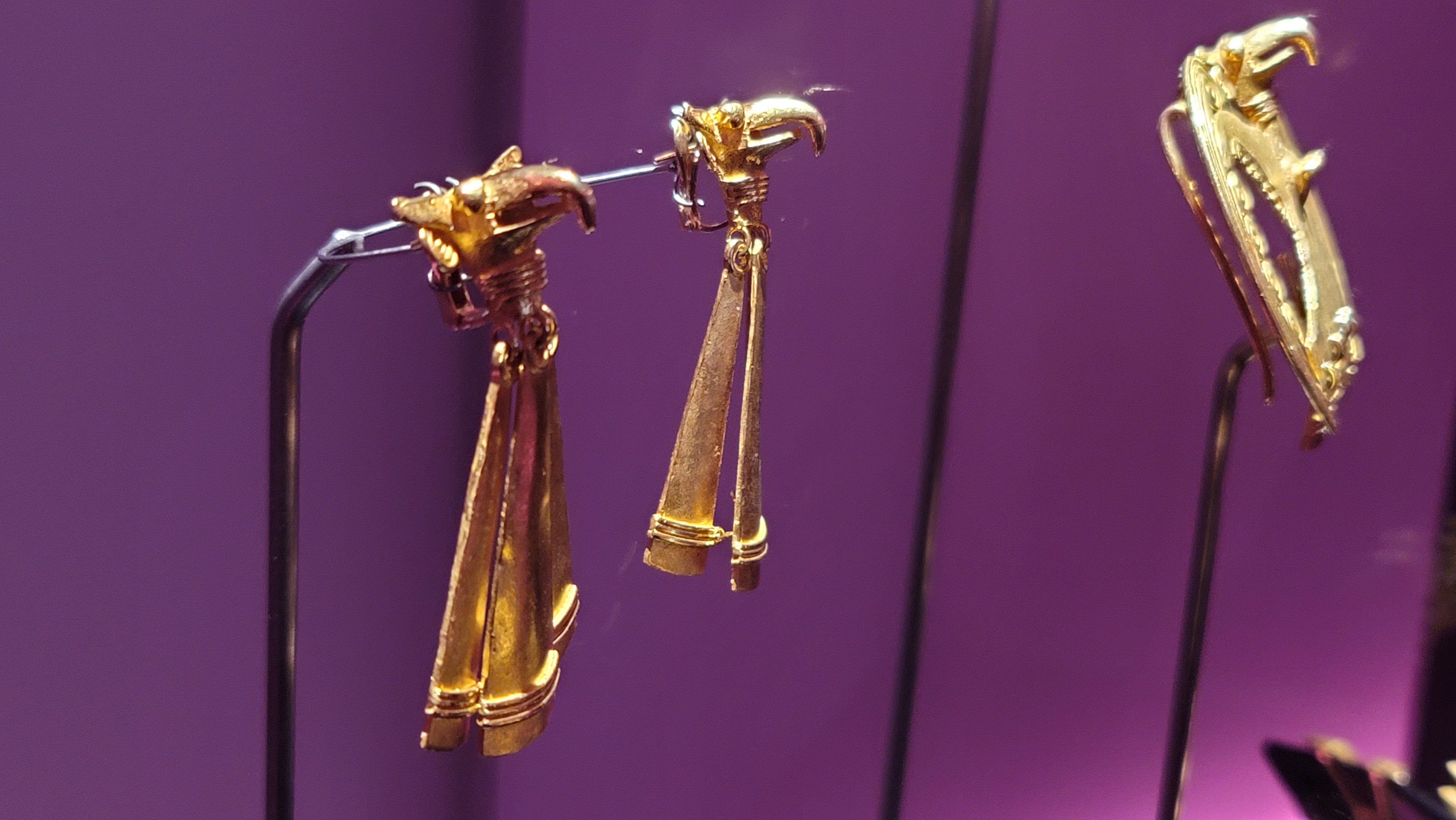 귀걸이인데 금판 세 개를 따로 제작한 후에