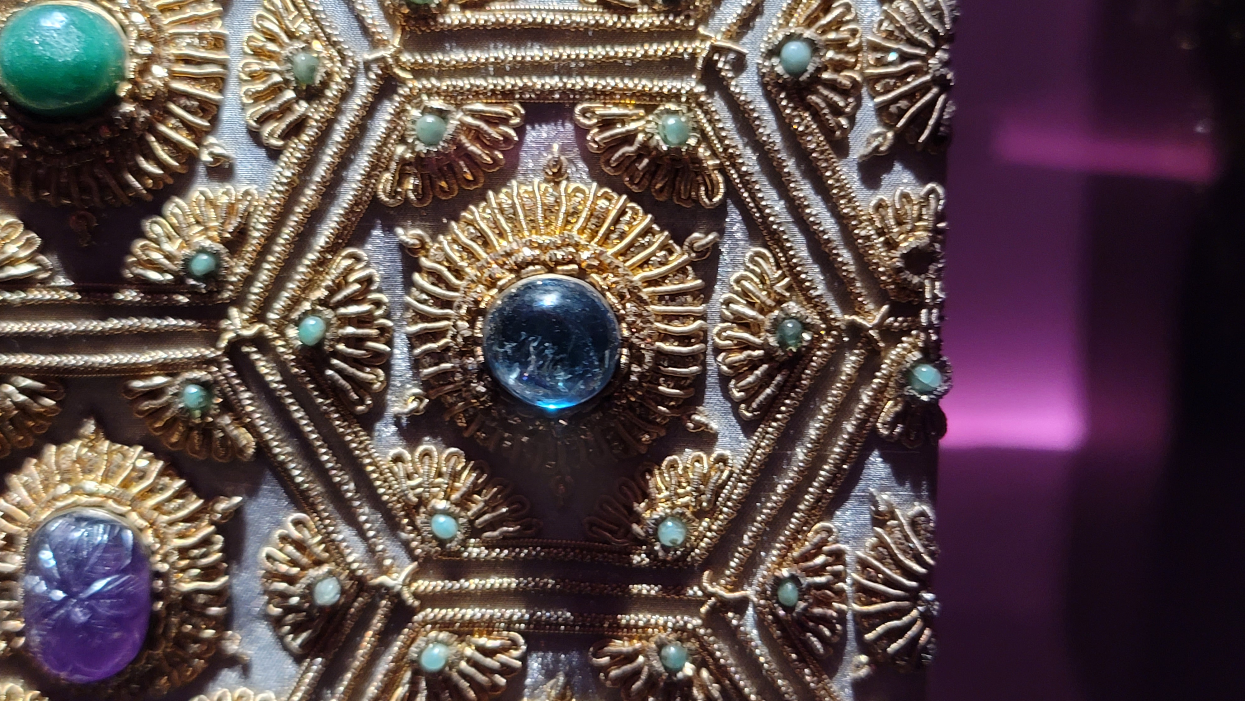 보석과 금실로 만든 핸드백입니다.