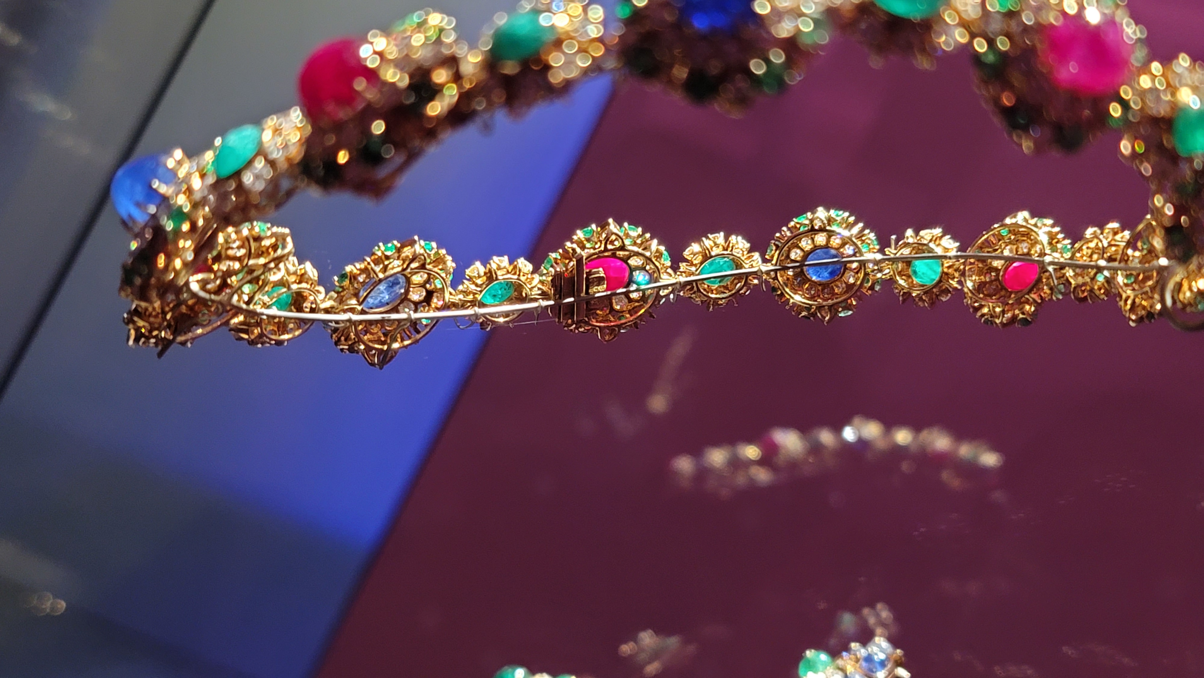 루비와 에메랄드, 사파이어, 다이아몬드의 4대 보석이 모두 들어간 목걸이입니다.