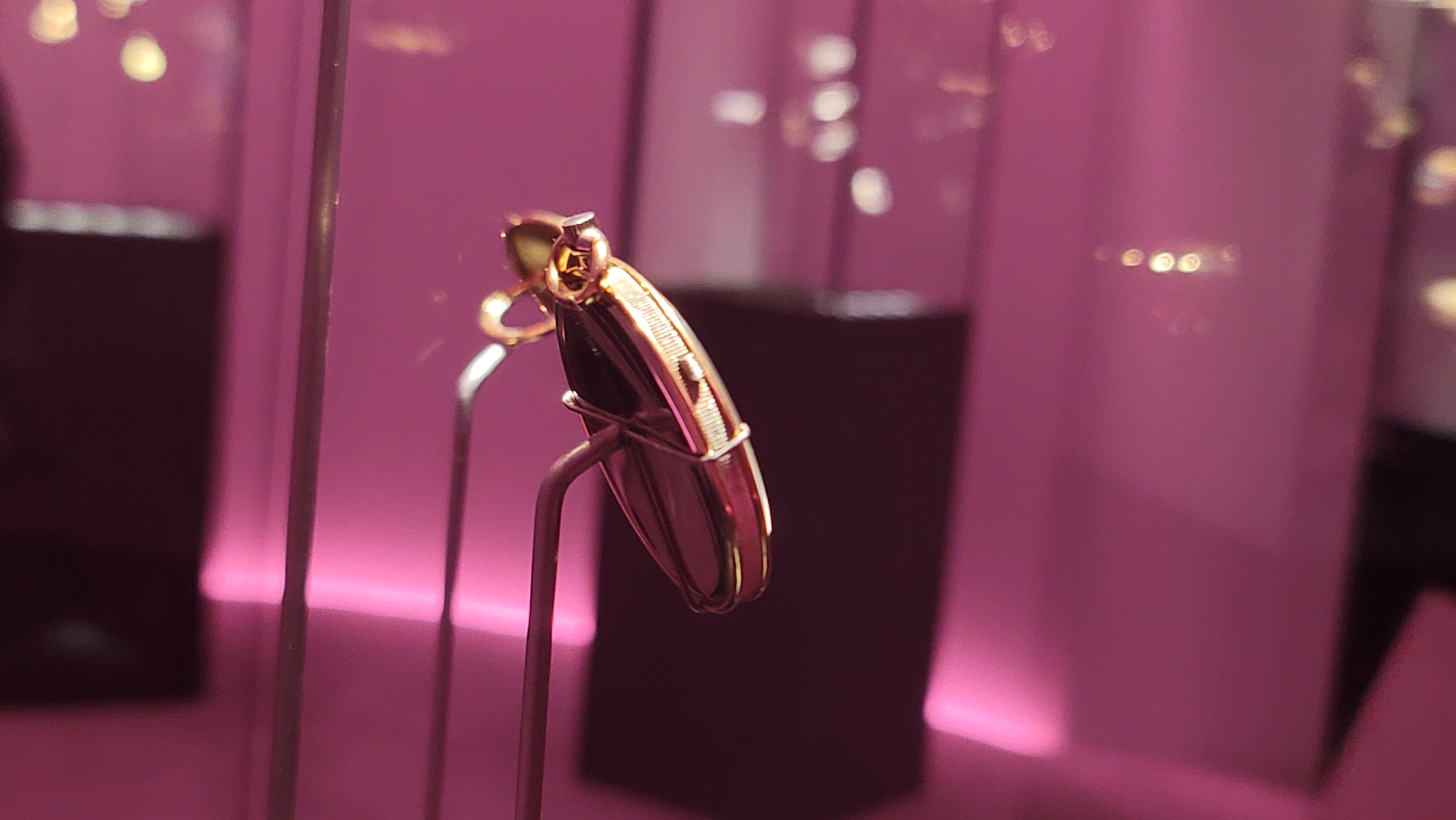 뒷면이 반투명하게 보이는 이유는 보석을 고정하는 난집의 뒤가 뚫려 있기 때문으로,