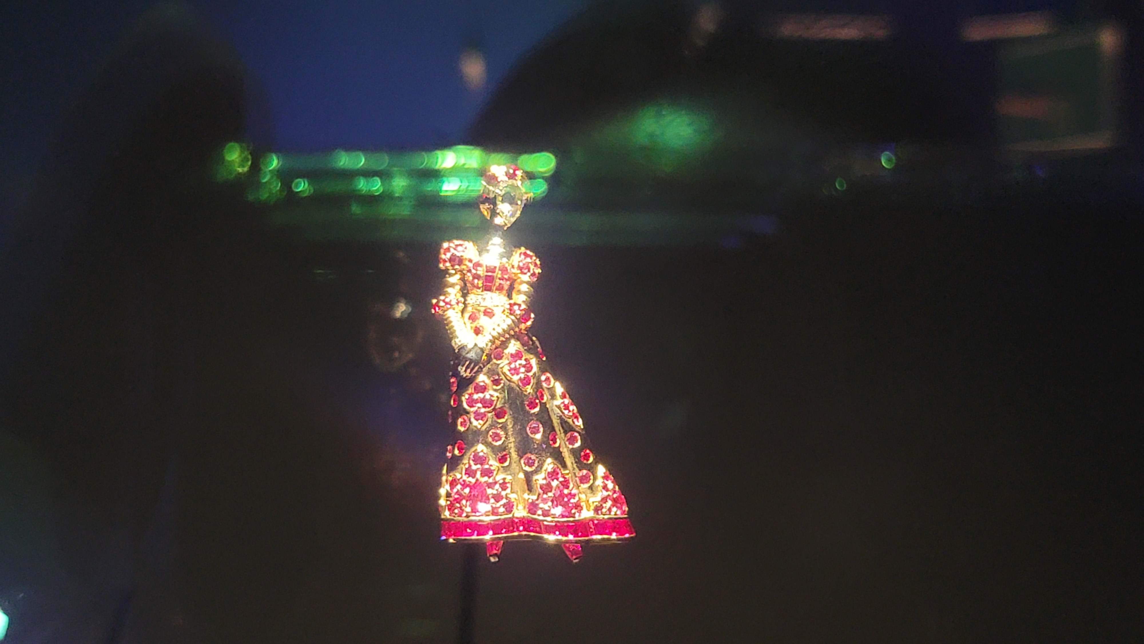 진주로 얼굴을, 에메랄드로 가슴을, 루비로 허리띠와 모자, 목을 만들었군요.
