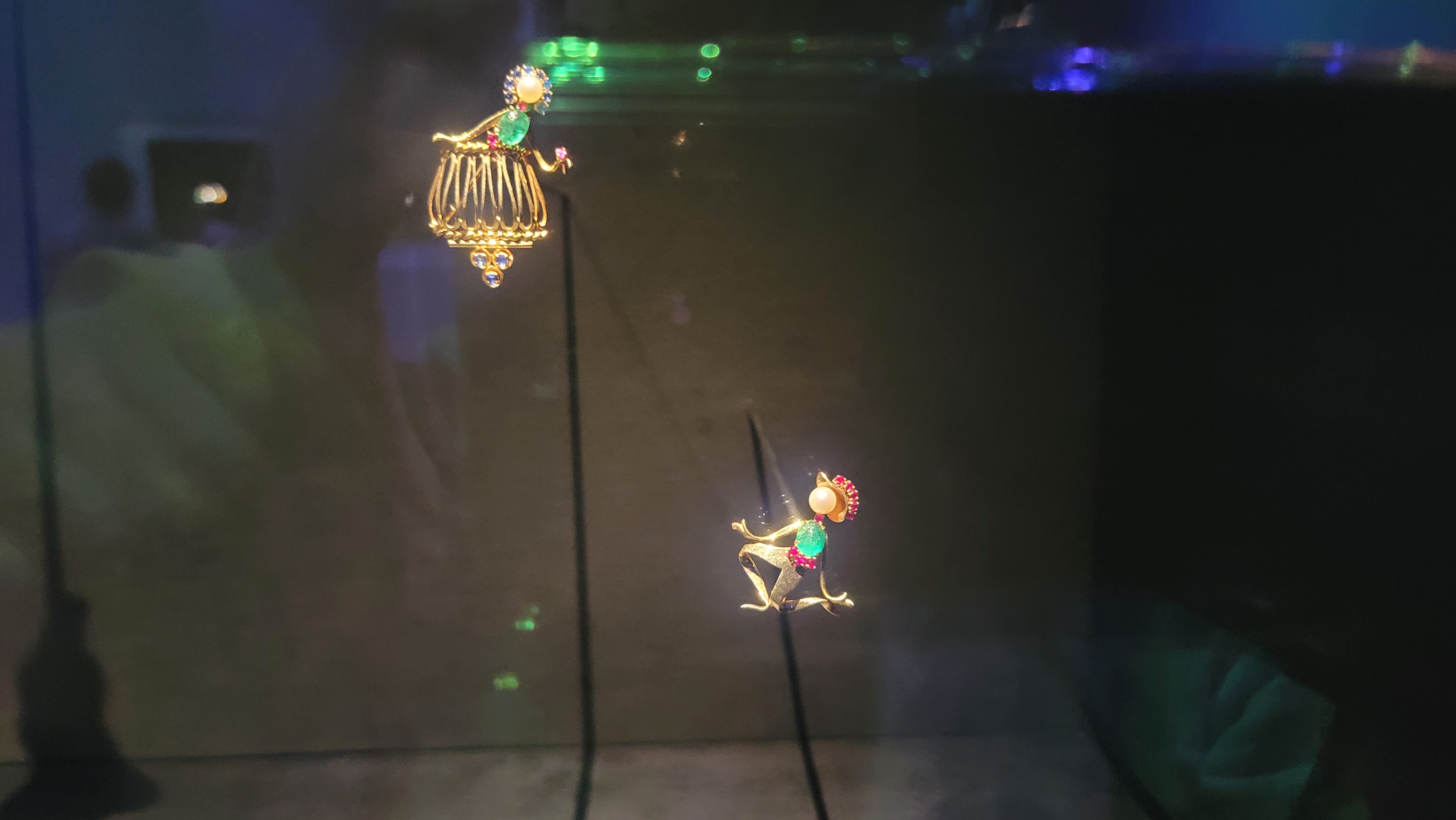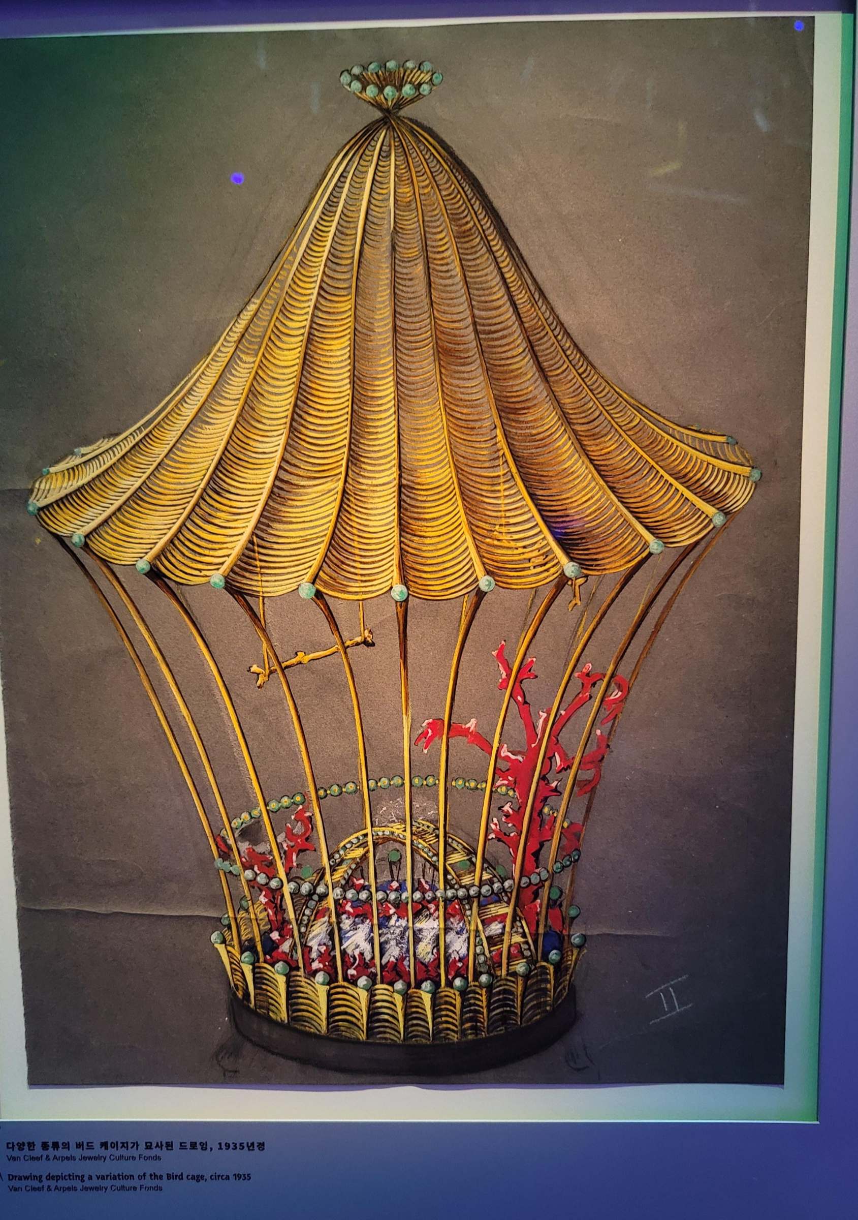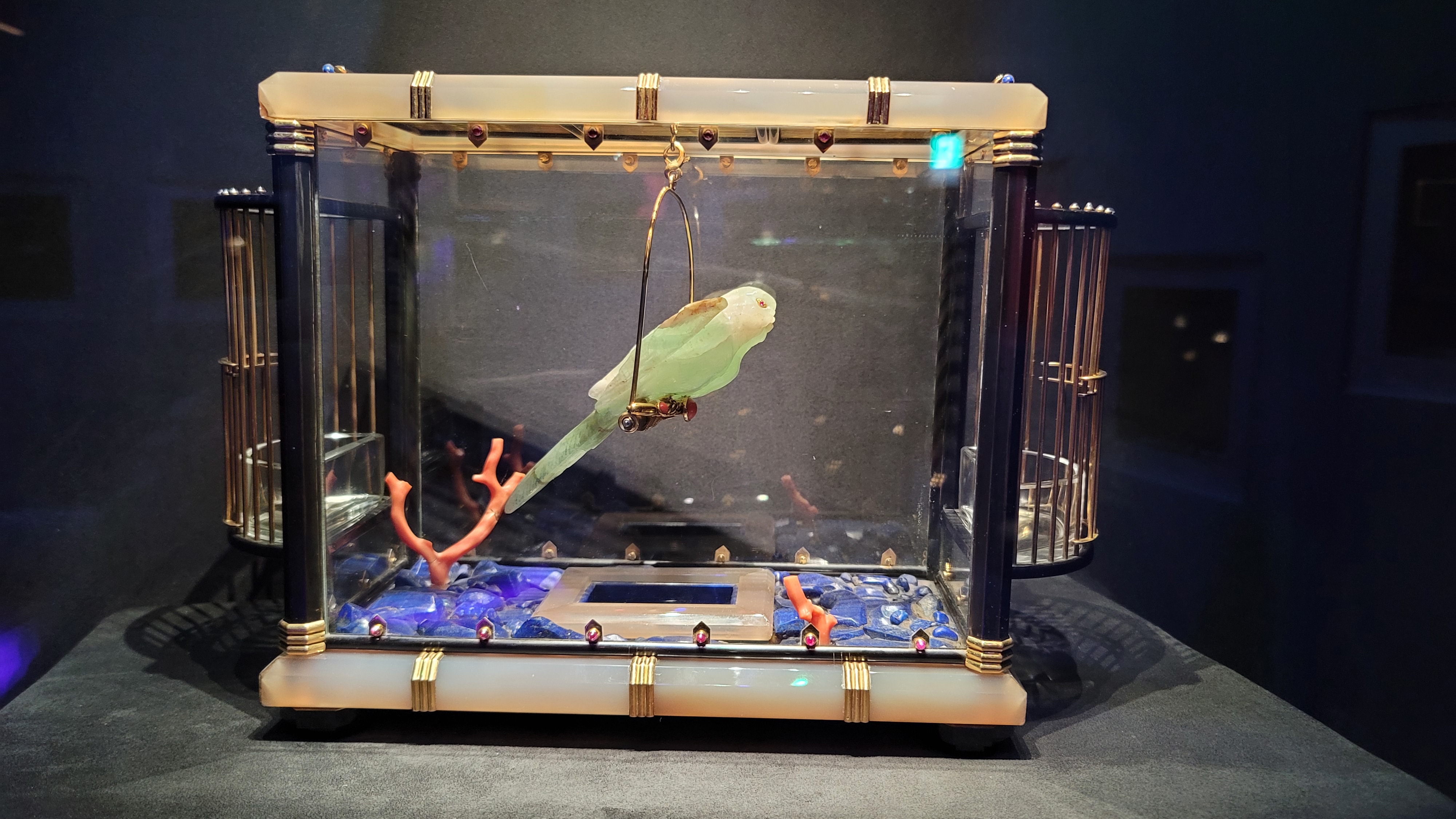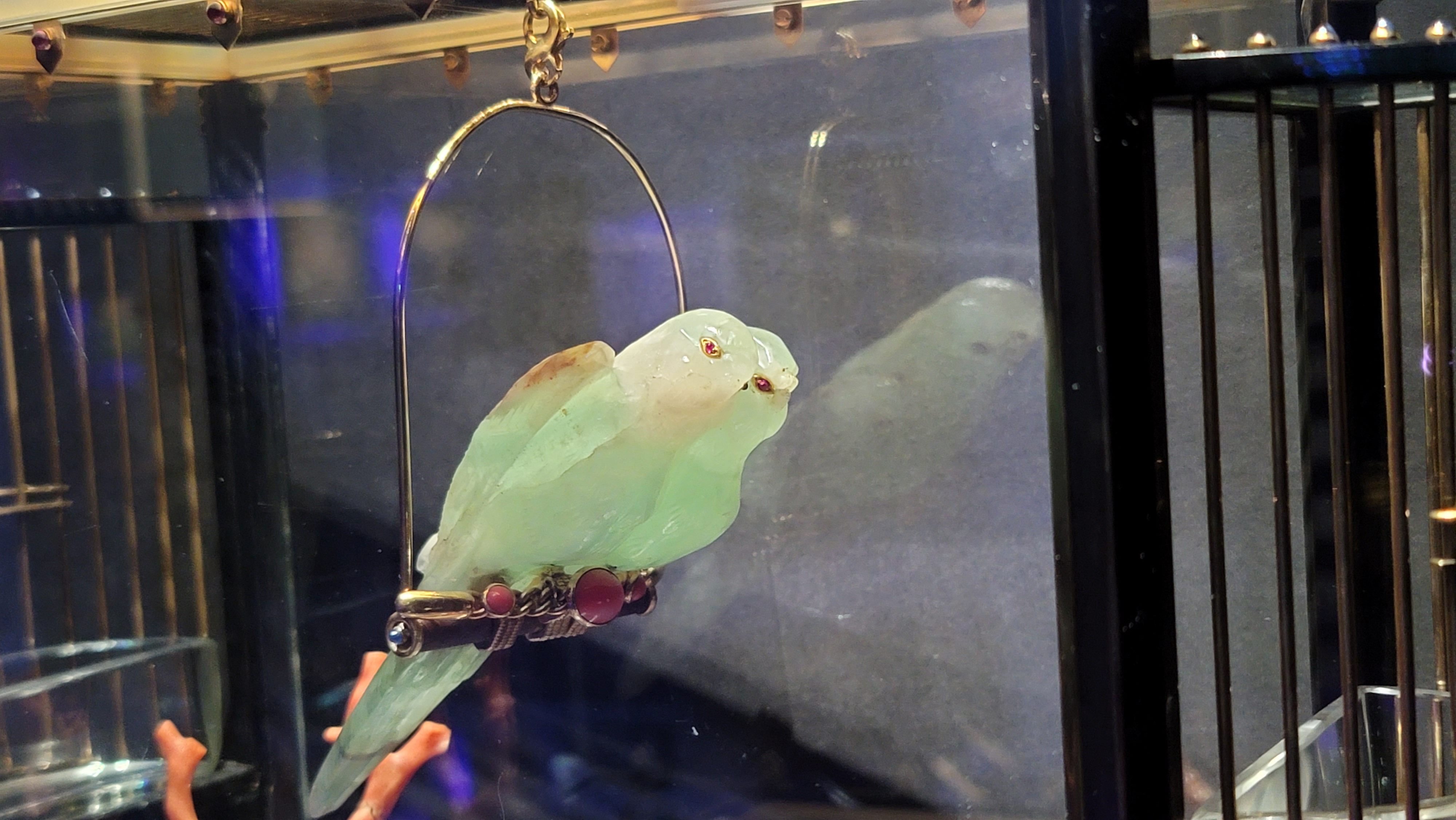금과 옥, 크리스탈 유리 등으로 만든 새장.