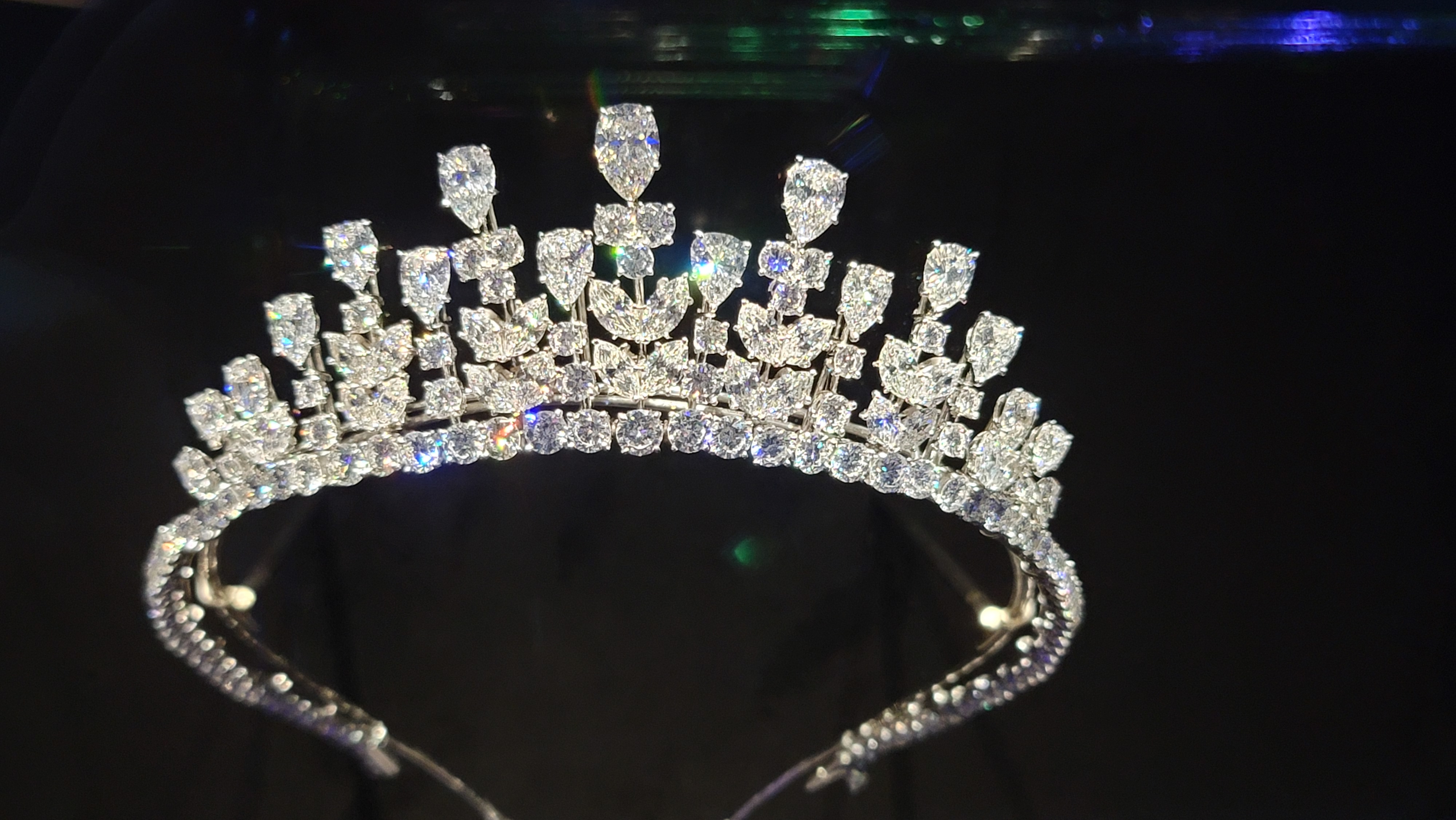 실제 티아라의 끝은 거기에 못 미치는, 다이아몬드 세팅의 끝부분인 것 같습니다.