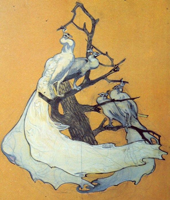 그리고 아르누보 일러스트레이션의 핵심 그 자체인 알폰스 무하가 그러했듯이, 당대 제일의 여배우 사라 베르나르와 계약을 맺고 무대 의상과 장식을 비롯한 여러 디자인을 기획했습니다.