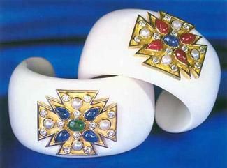 주얼리 디자인으로 분야를 바꾼 뒤, 그 유명한 몰타 십자가 팔찌를 만듭니다.