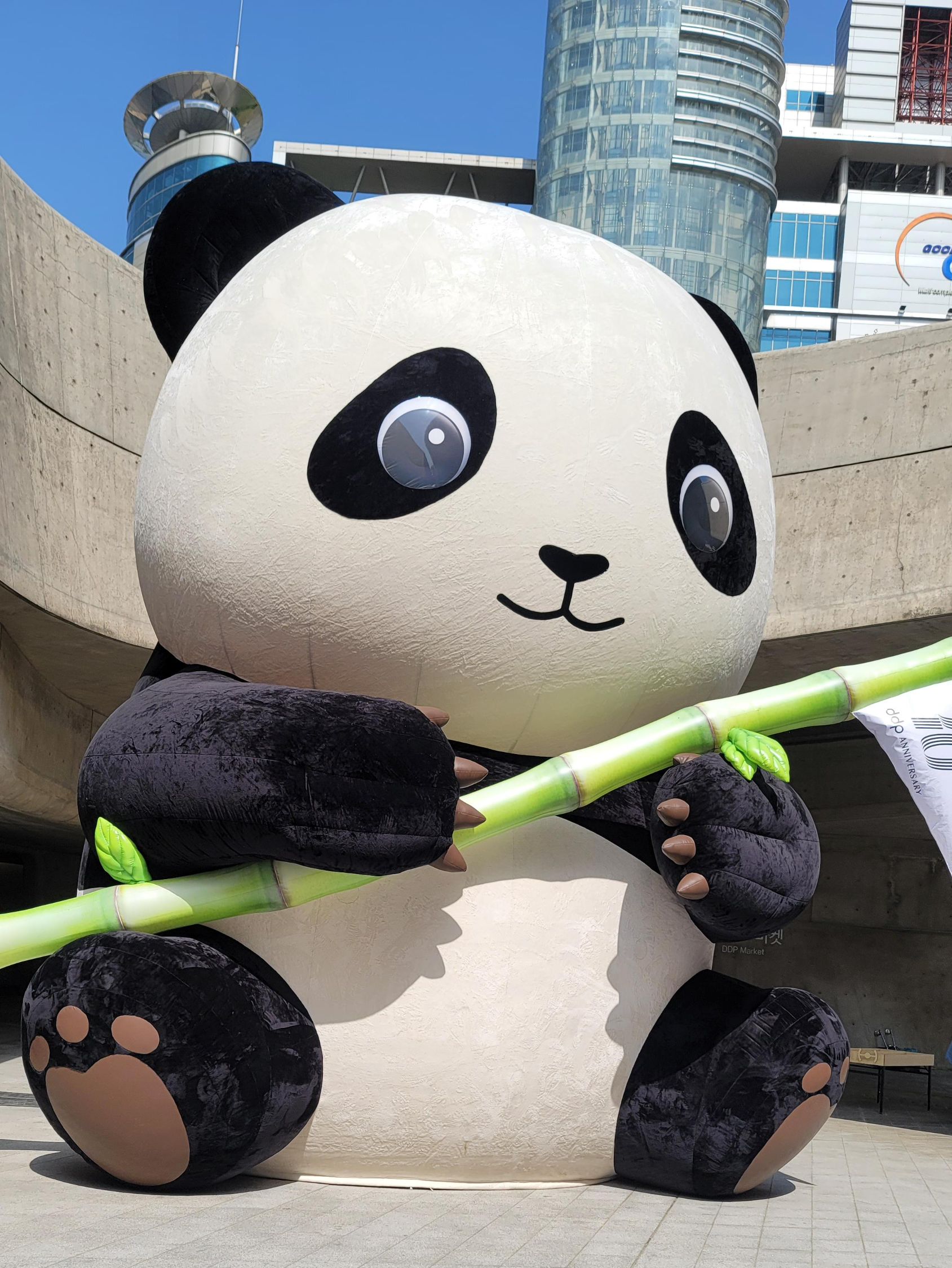 출구로 나가면 웬 거대한 팬더 인형 등짝을 보게 됩니다.