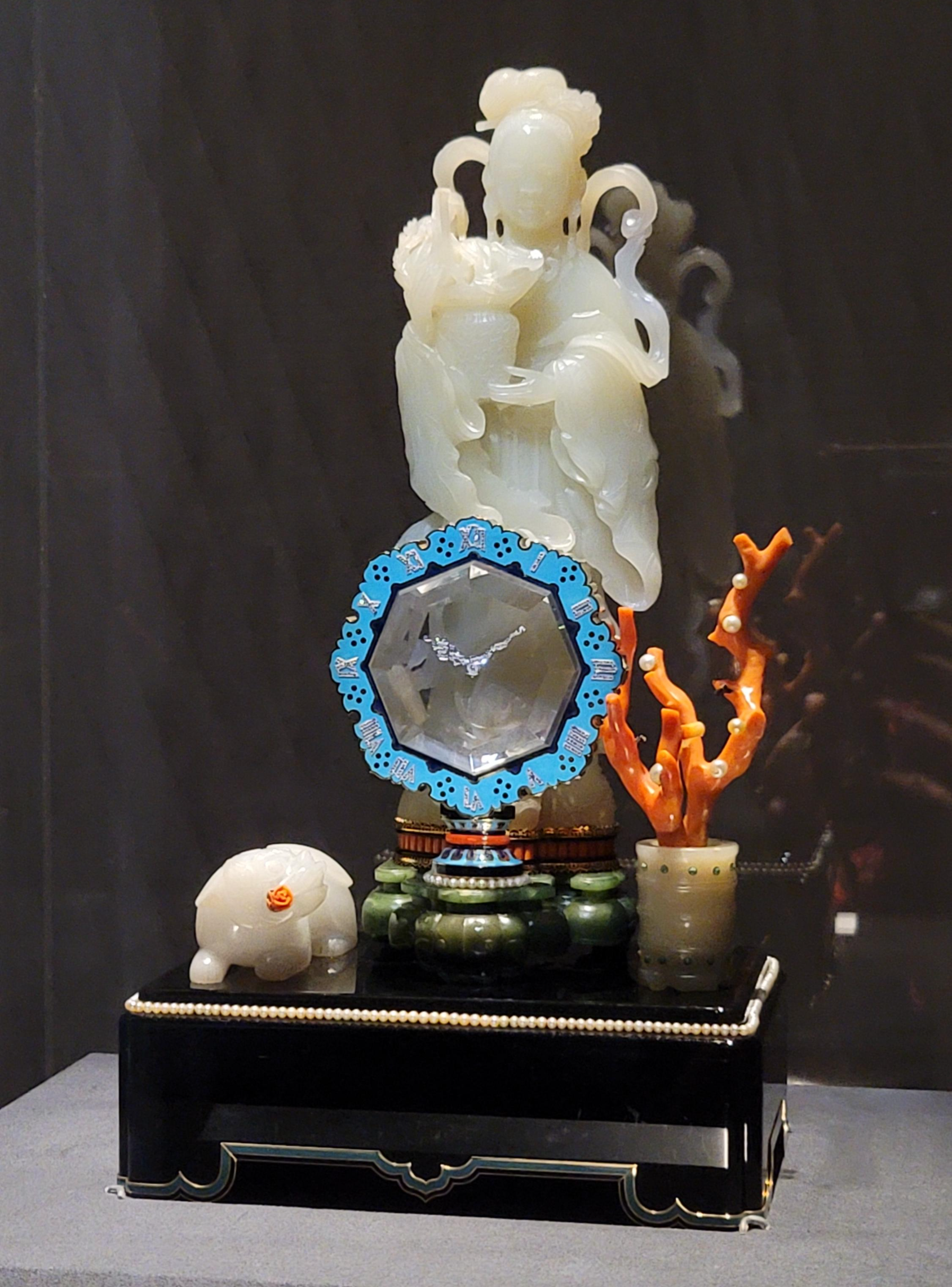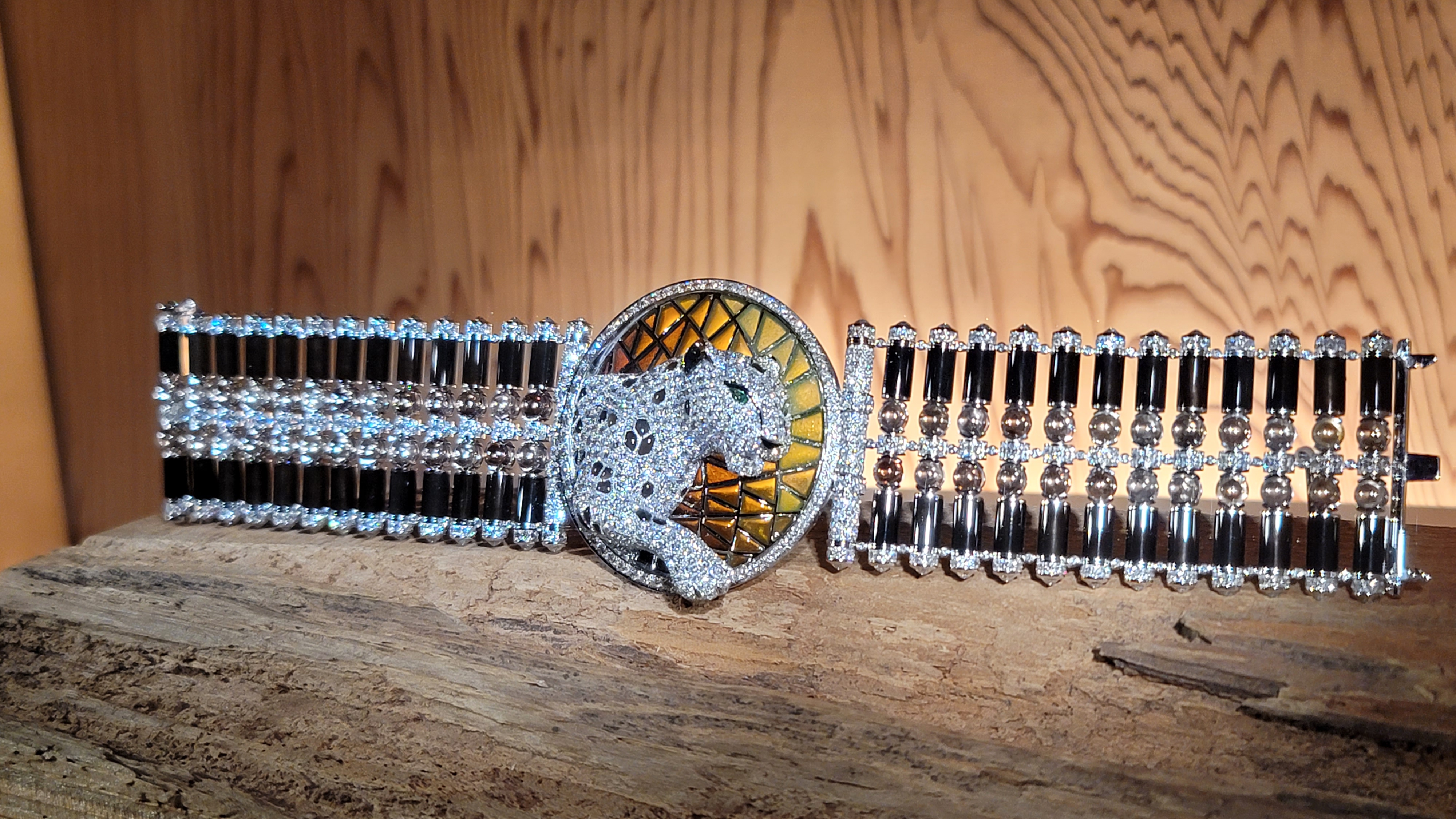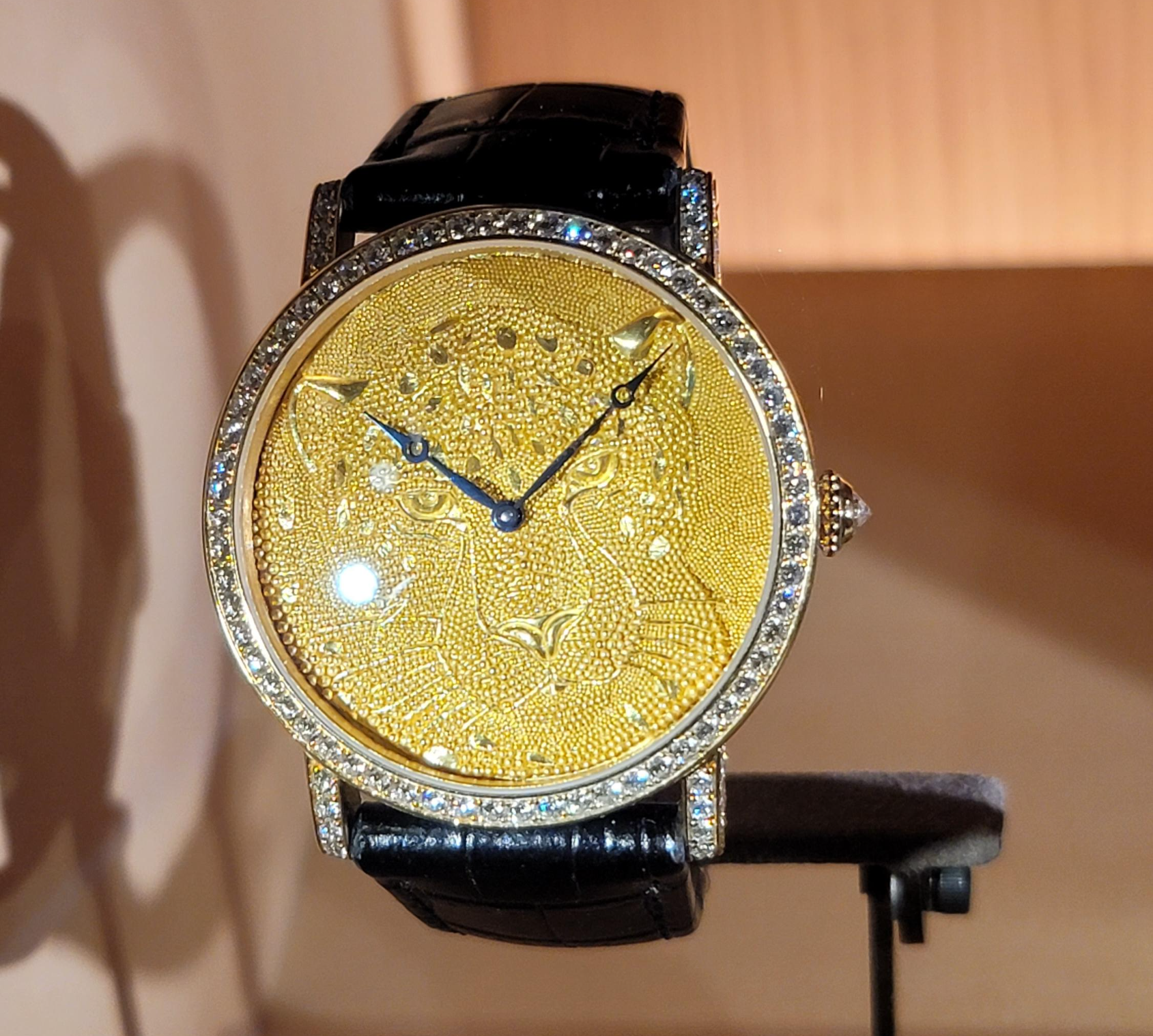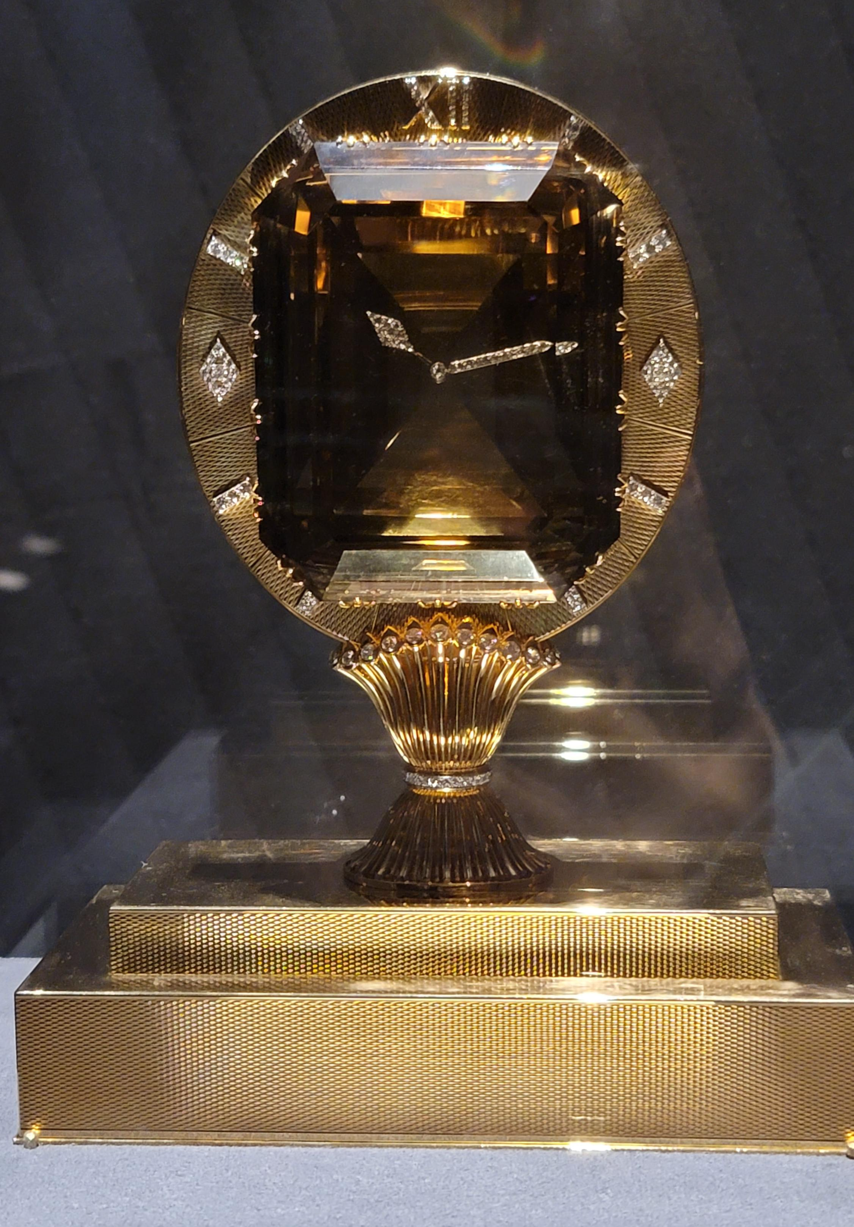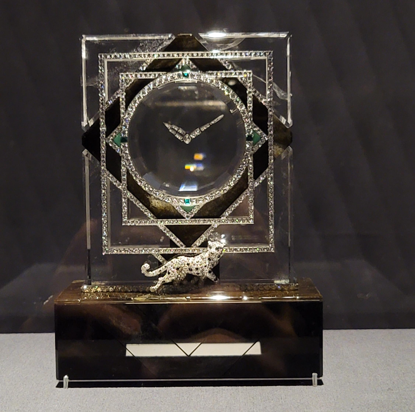 보석 세팅과 앞의 표범이 인상적인 미스터리 클락.