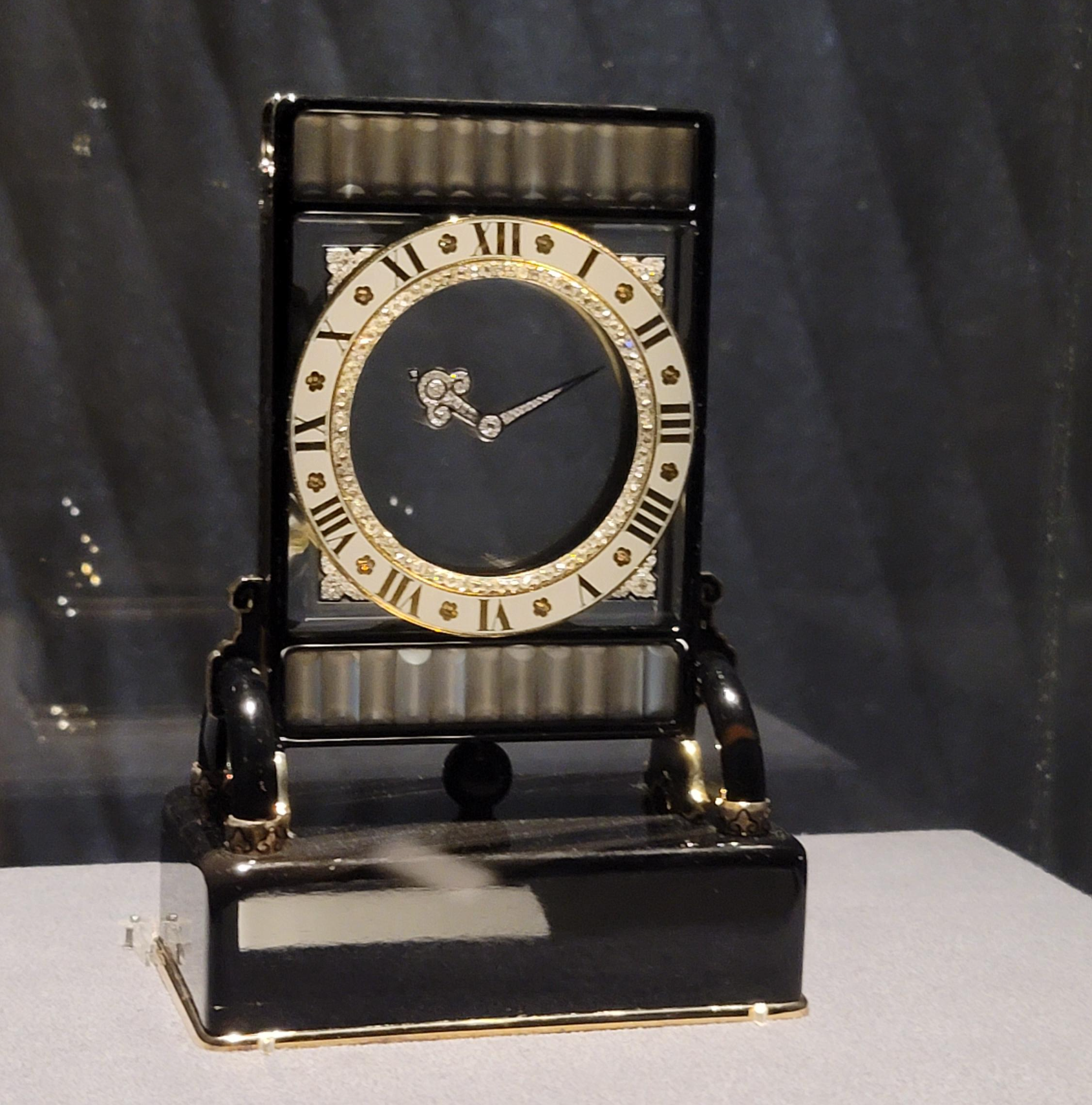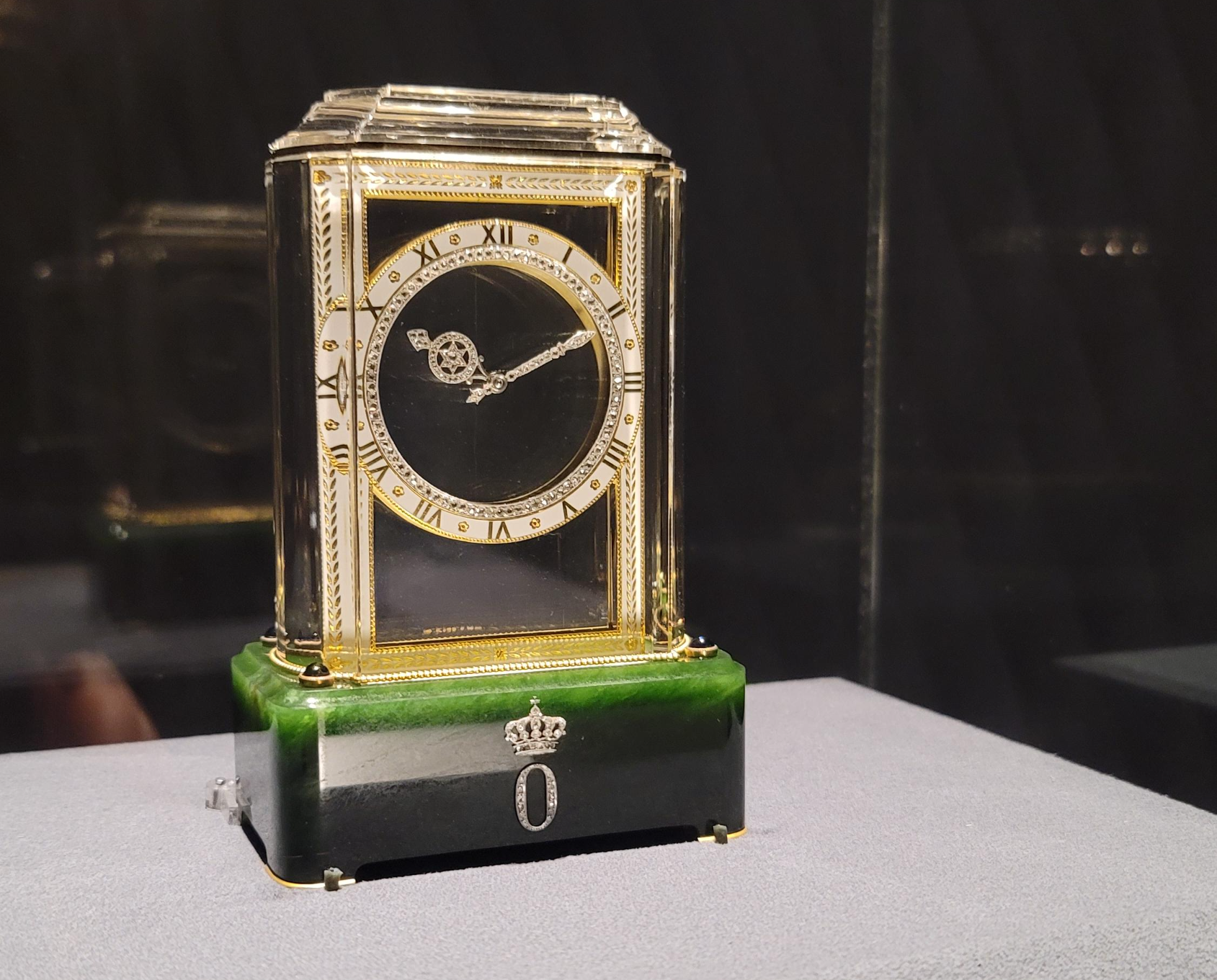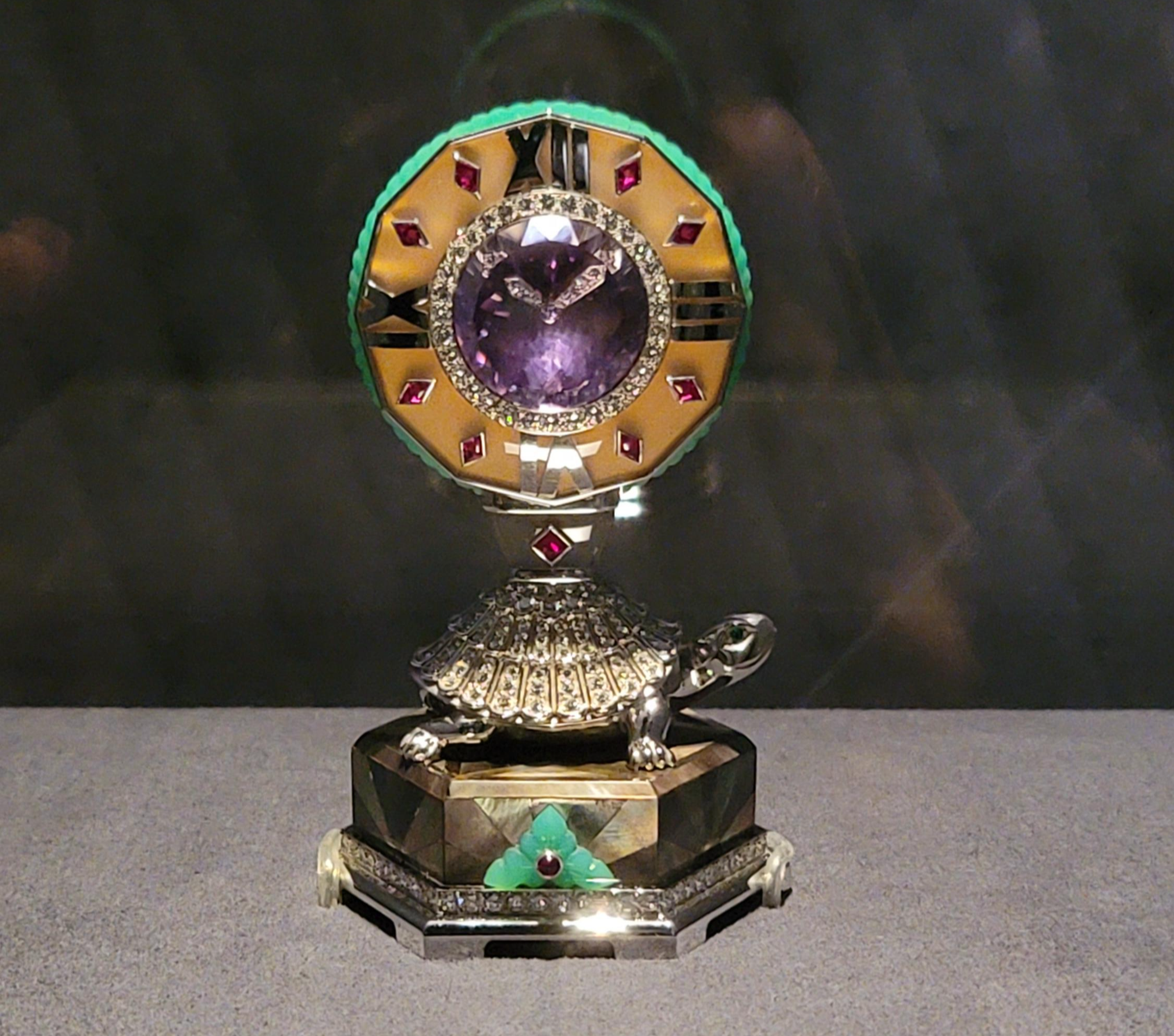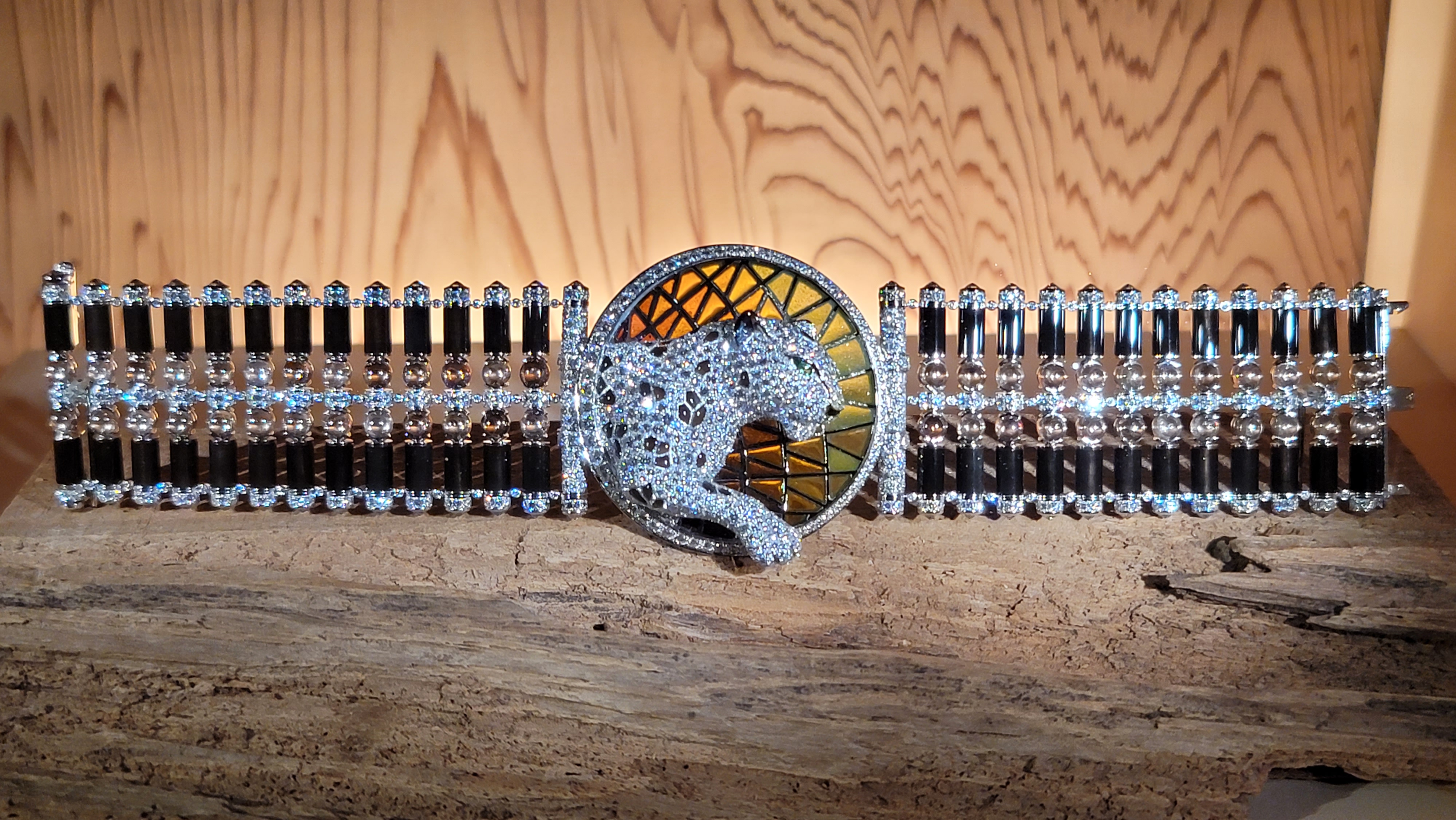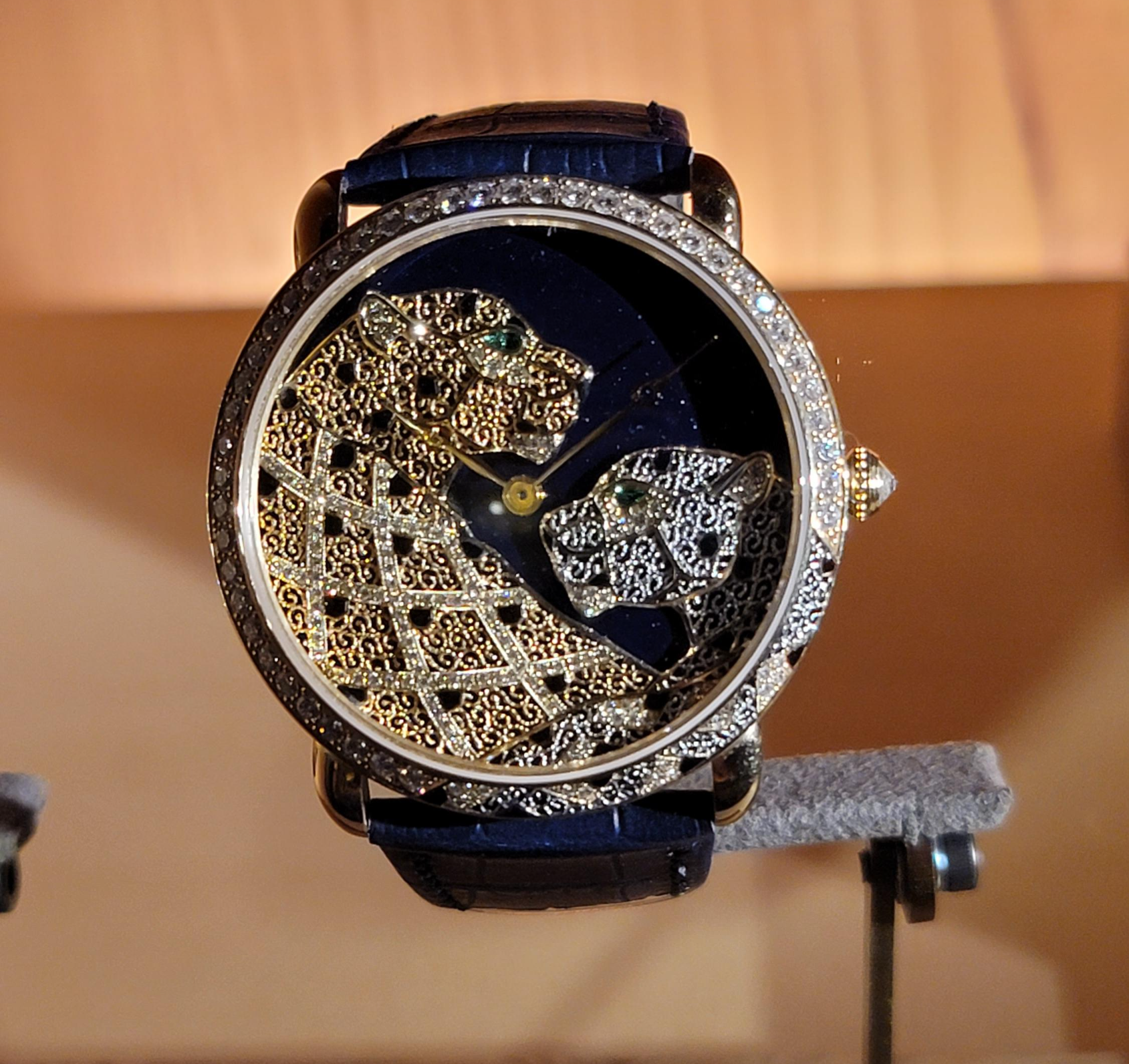 보석 세팅과 앞의 표범이 인상적인 미스터리 클락.