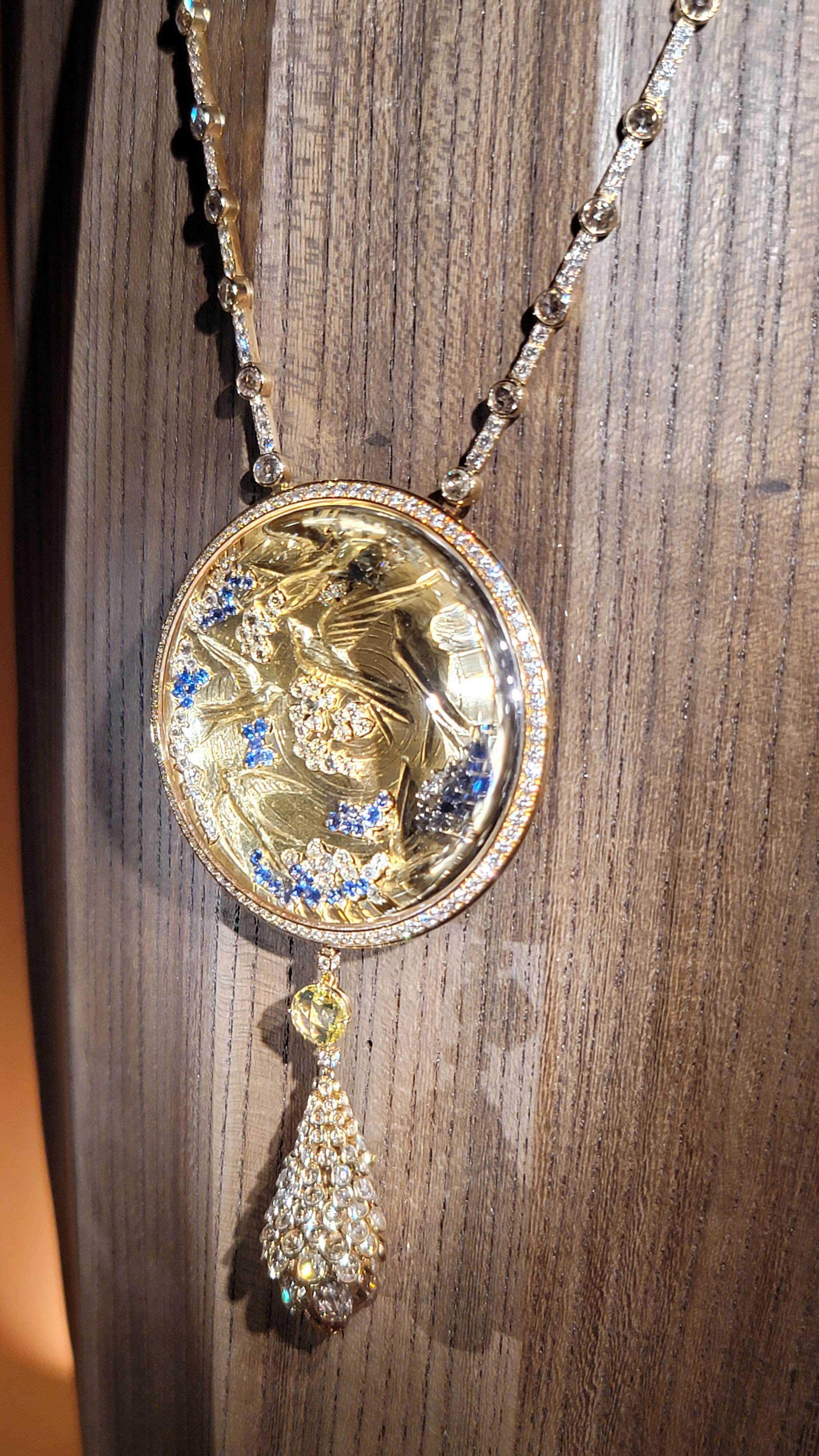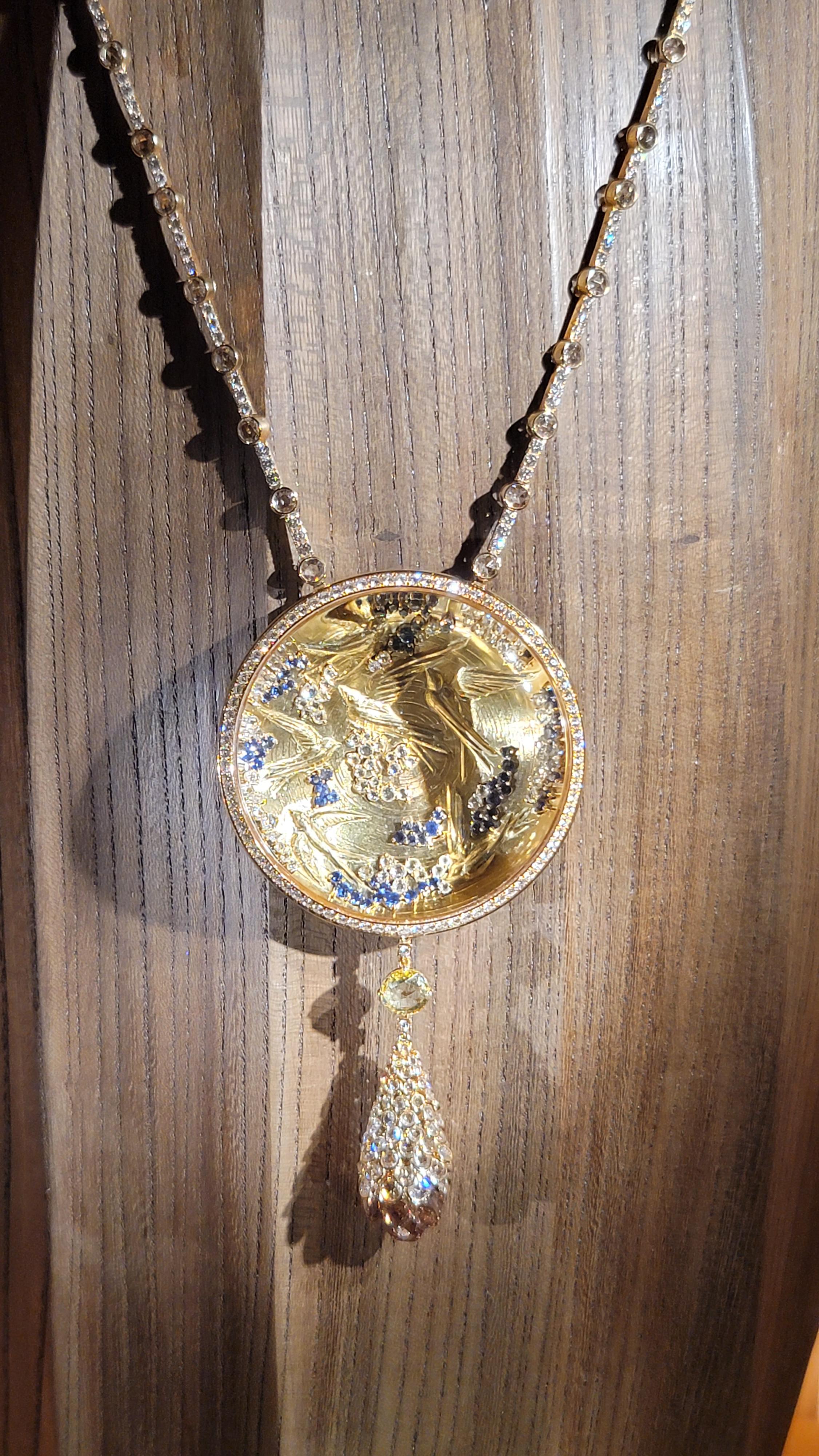 새를 조각하고 보석을 세팅해 놓은 위에