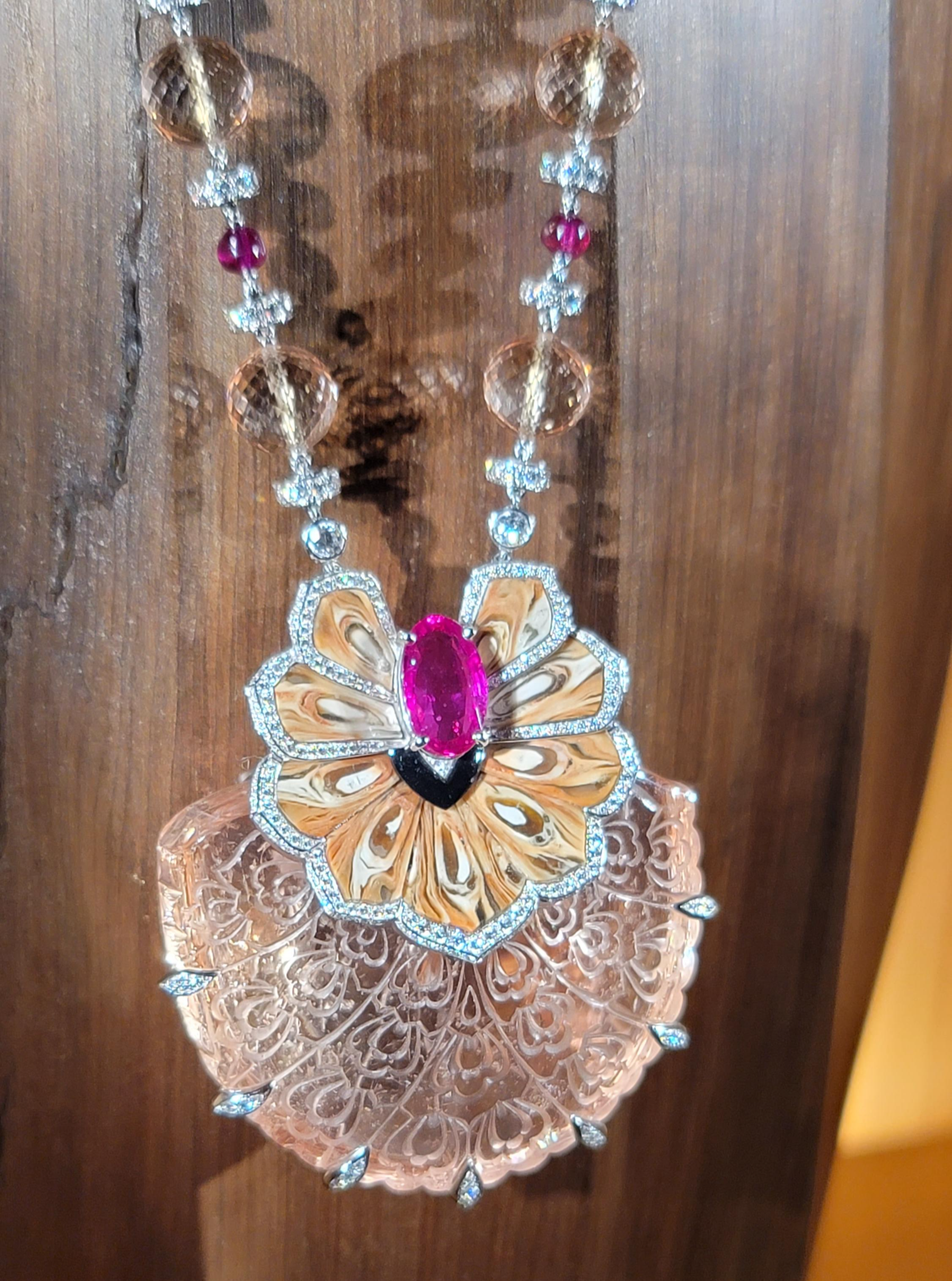 그 밑에 복숭아빛 투명한 보석은 뭘까요?