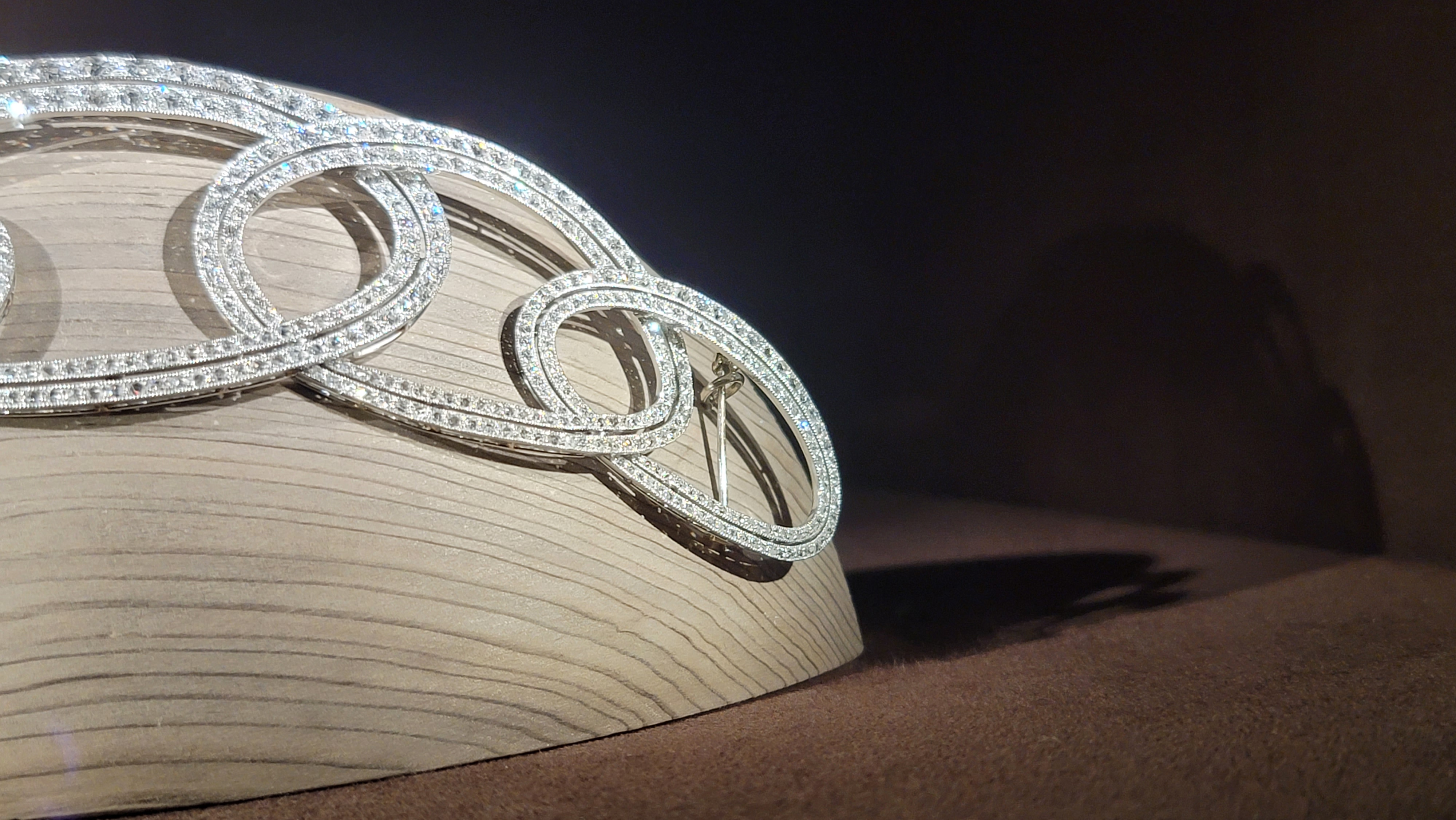굽이치는 머리카락을 다이아몬드로 굳힌 것 같은 작품.