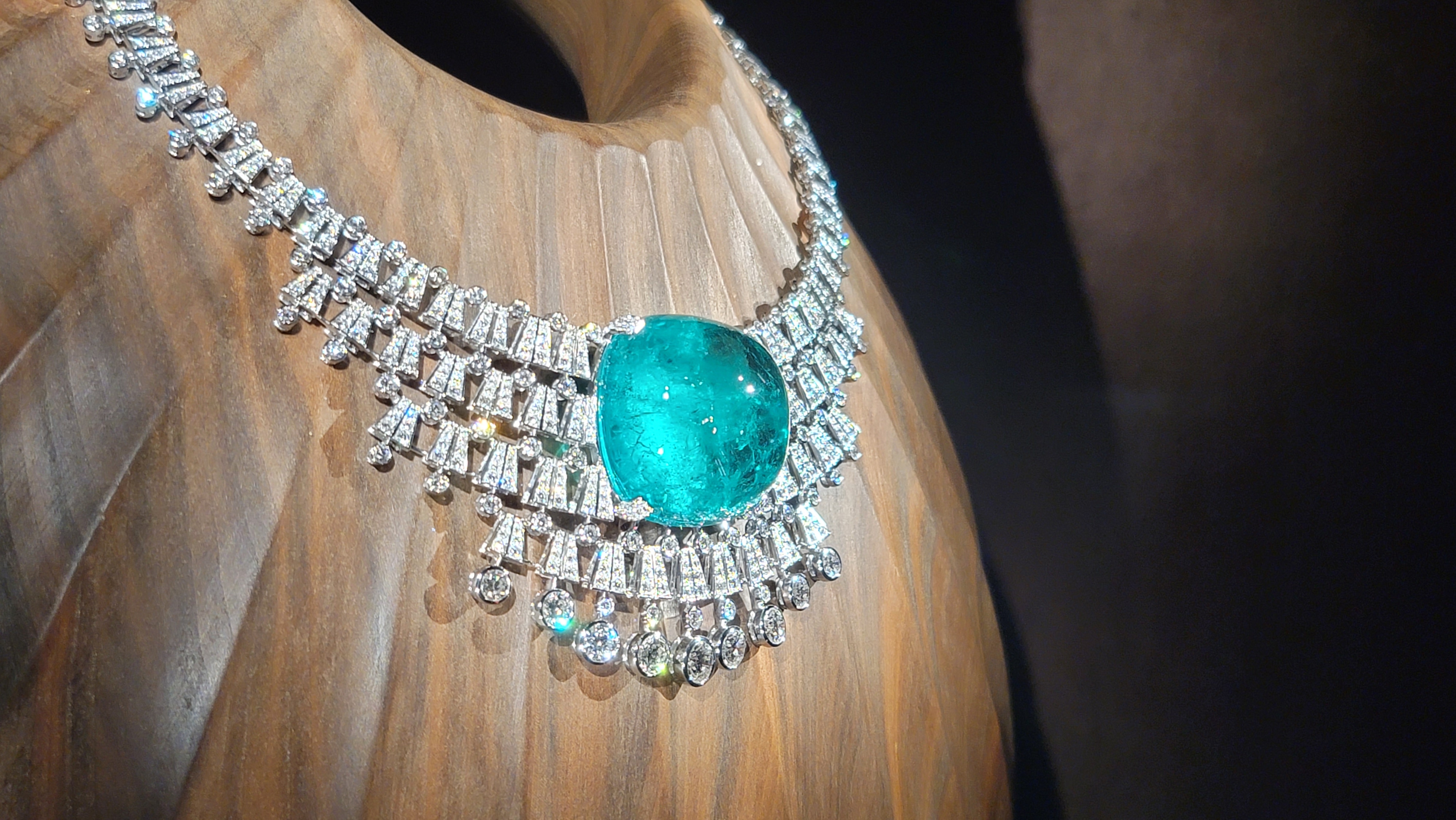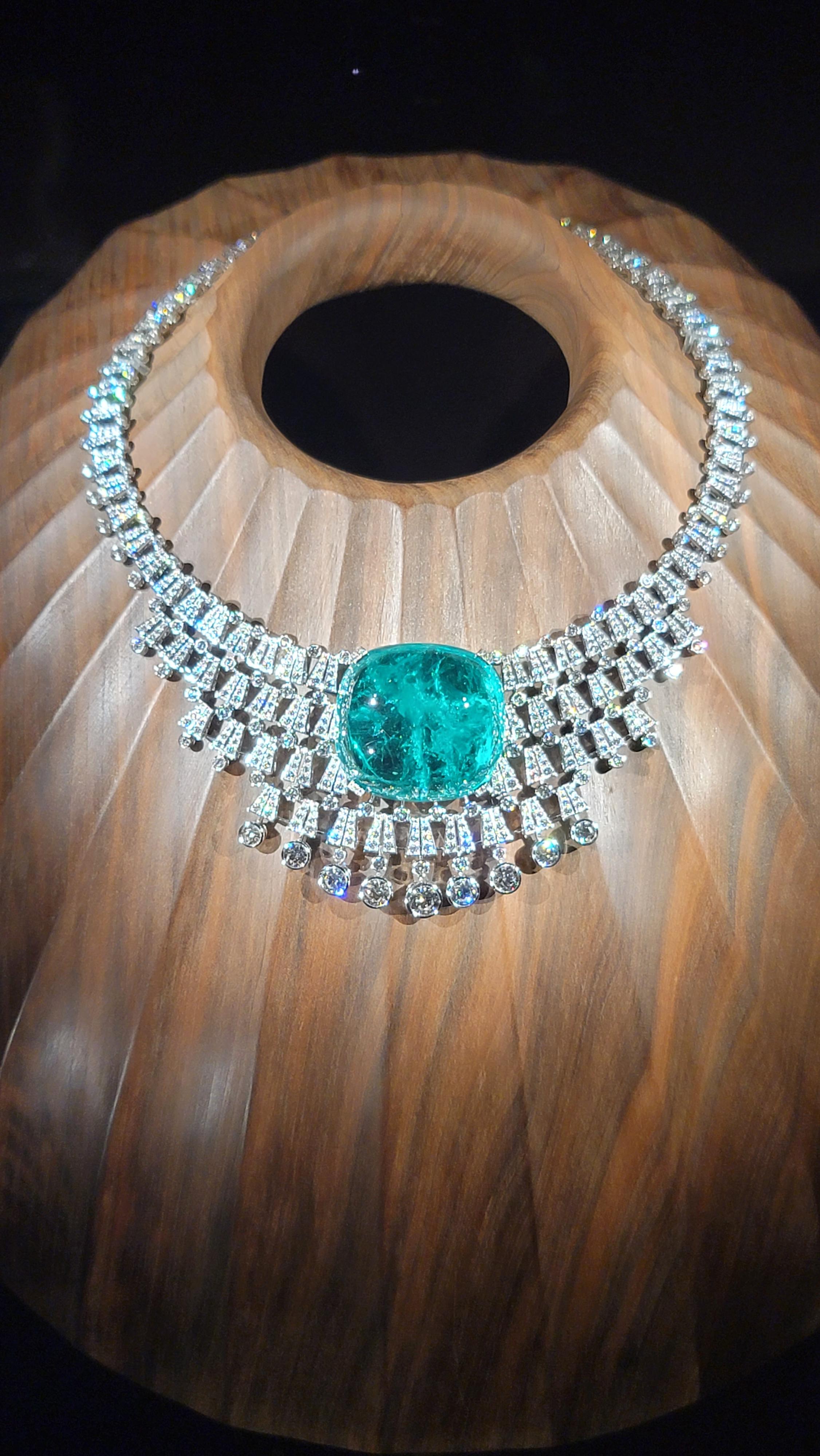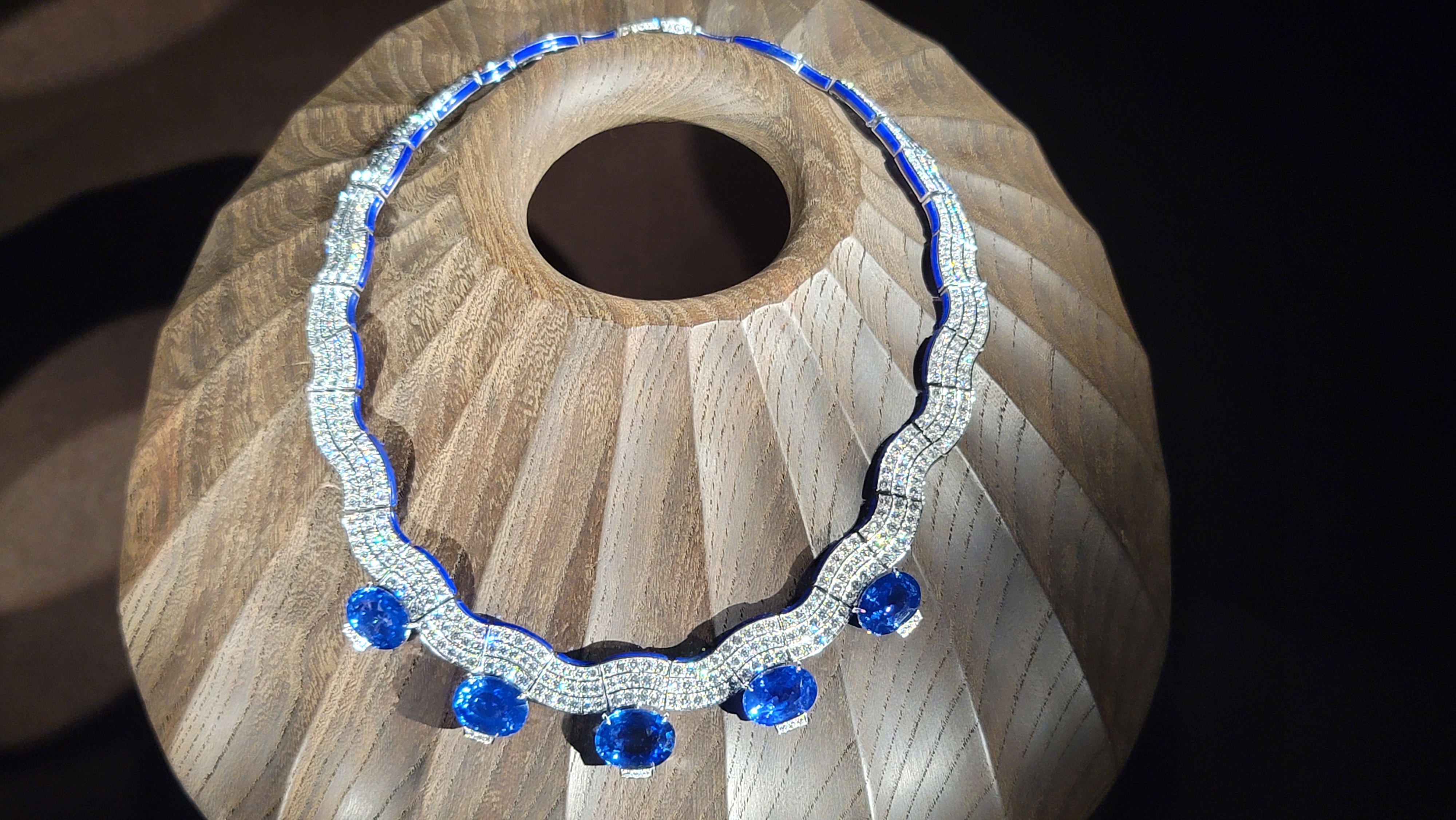 물결 치는 사파이어와 다이아몬드 목걸이.