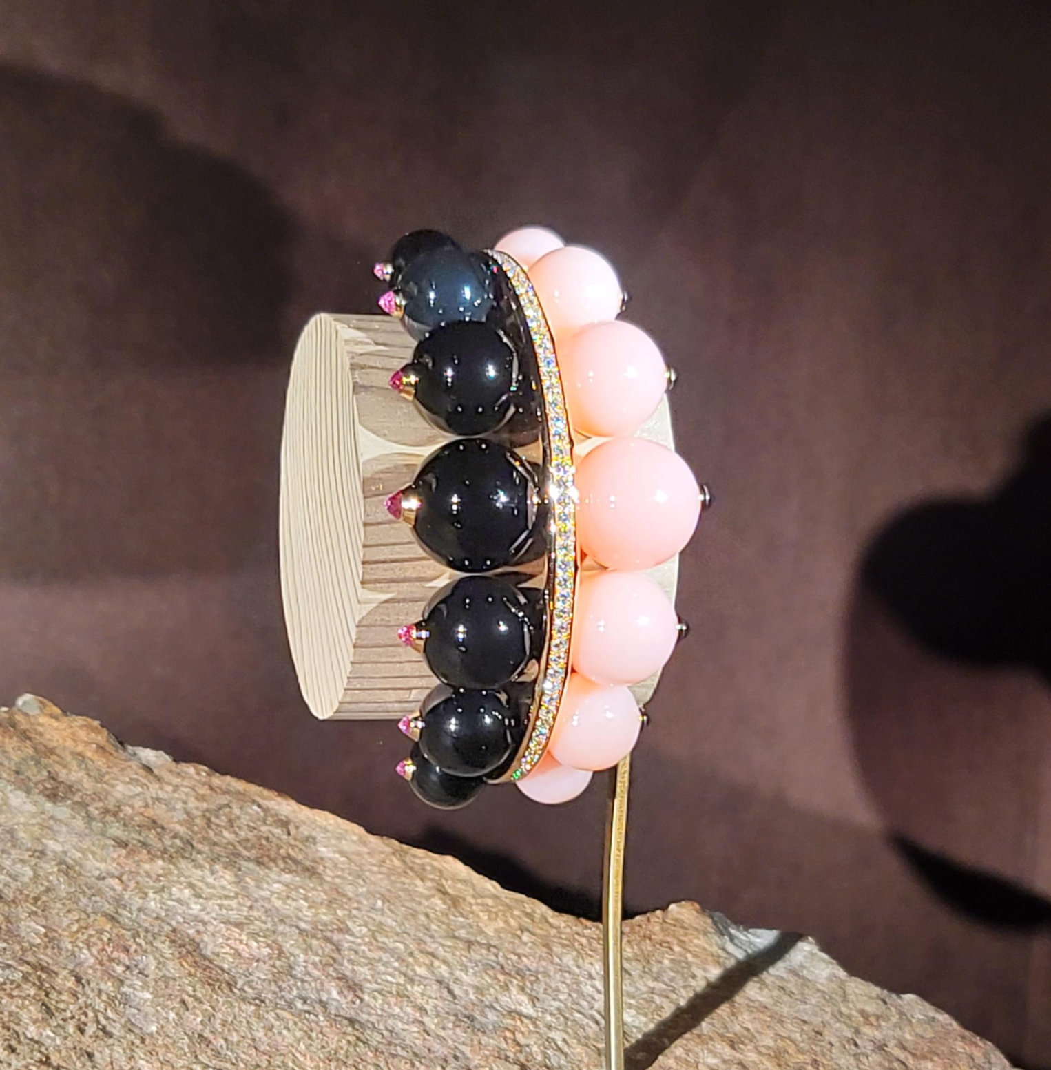 검은색은 오닉스로 보이는데...분홍색은 뭔지 모르겠네요. 불투명한 밀키 핑크...엔젤 스킨 산호일 가능성이...
