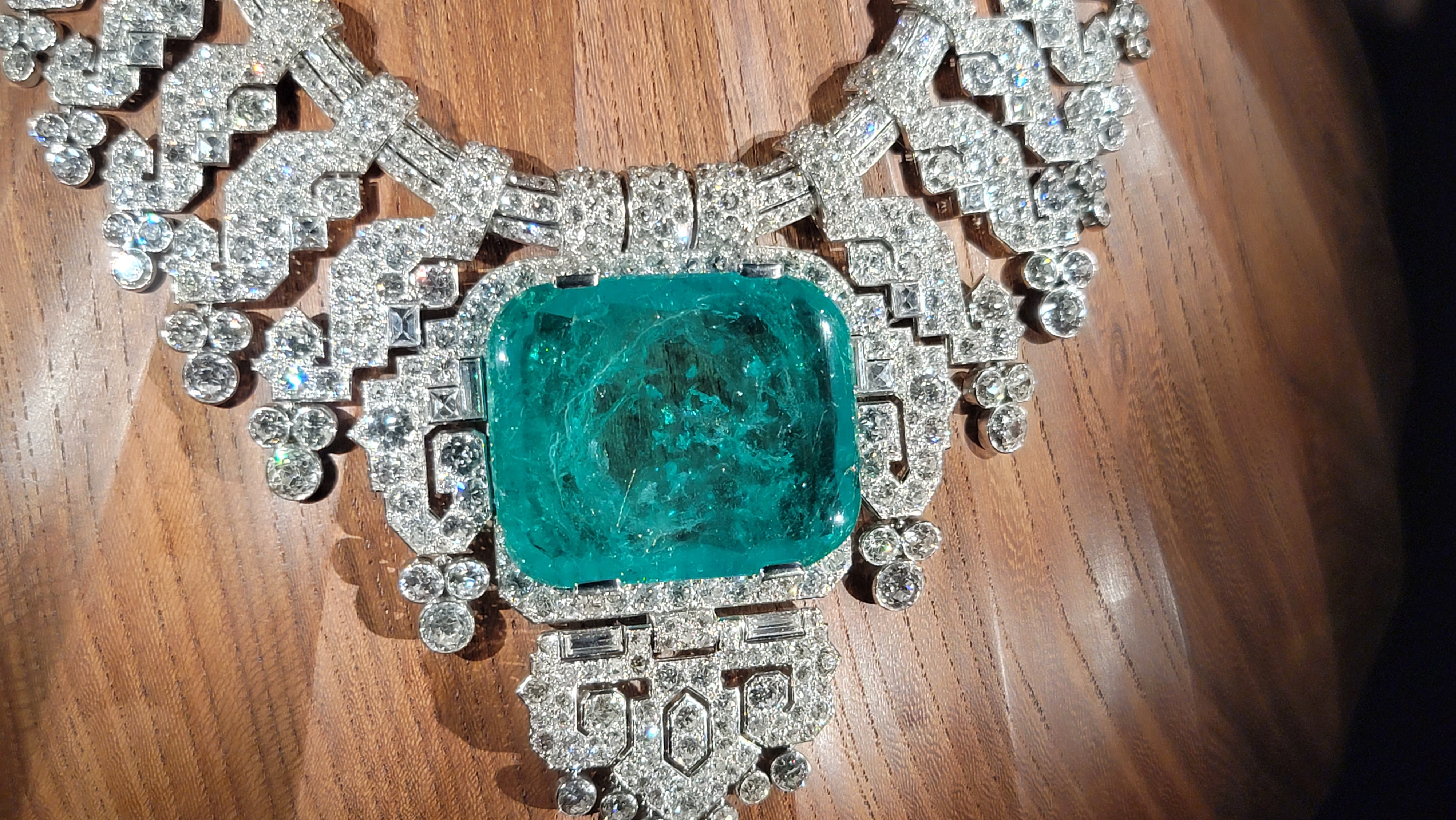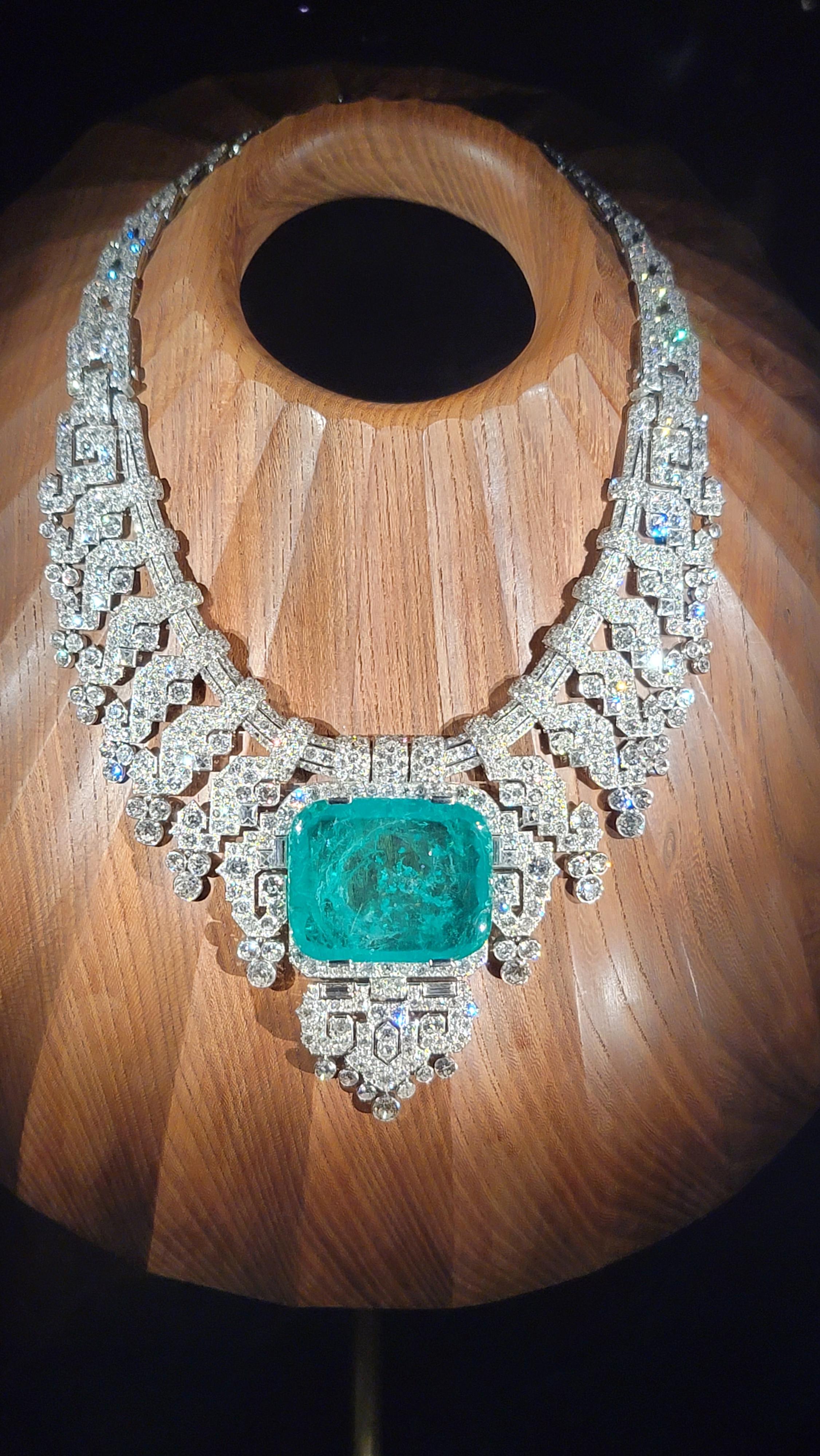 굵직한 체인을 조합한 에메랄드 목걸이.