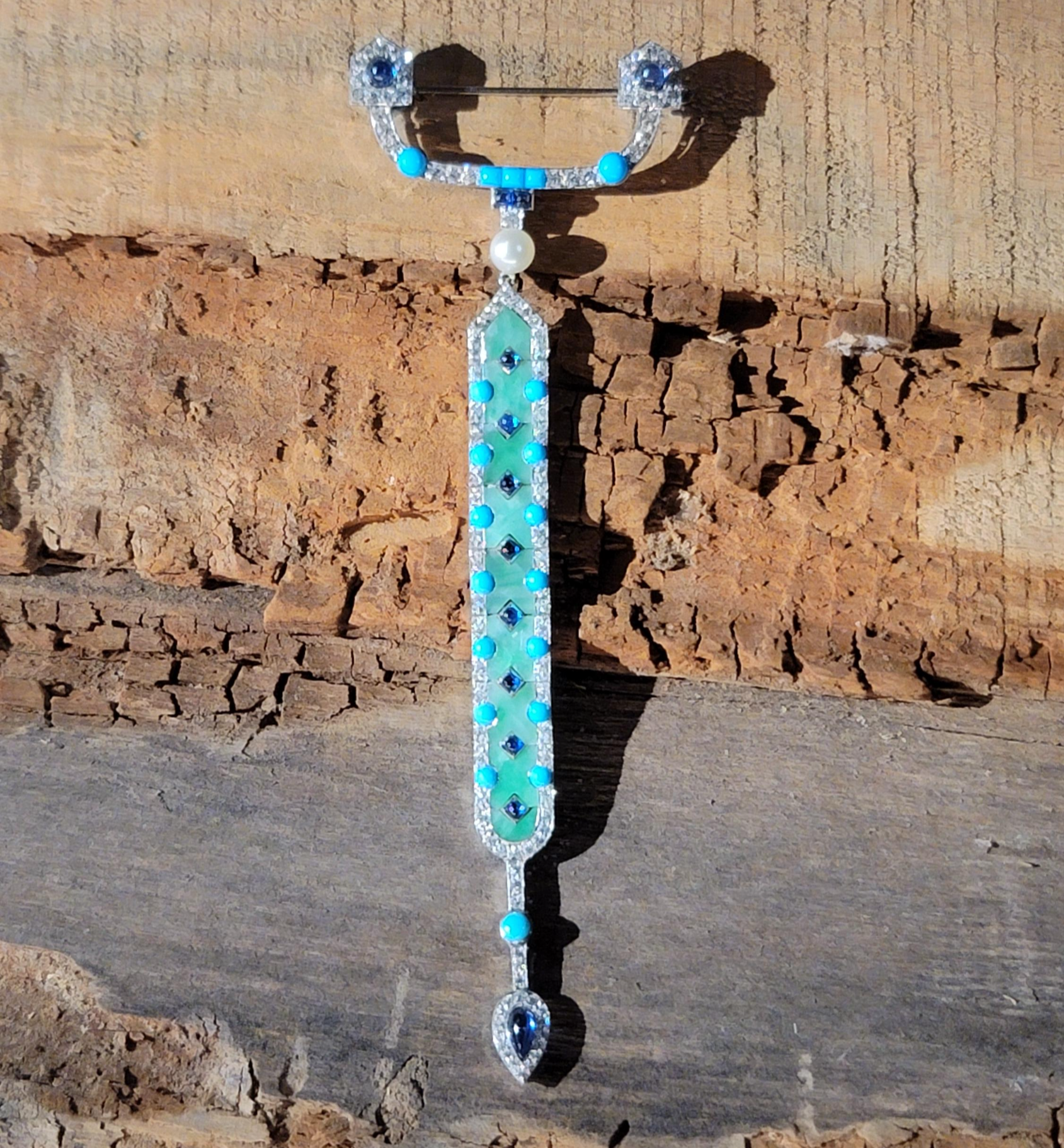 제작 시기는 아마도 아르데코 시대일 거고, 허리를 조이지 않고 자루처럼 통짜로 길게 내려가는 원피스를 입었던 때이니 이런 긴 브로치도 어울렸겠죠.