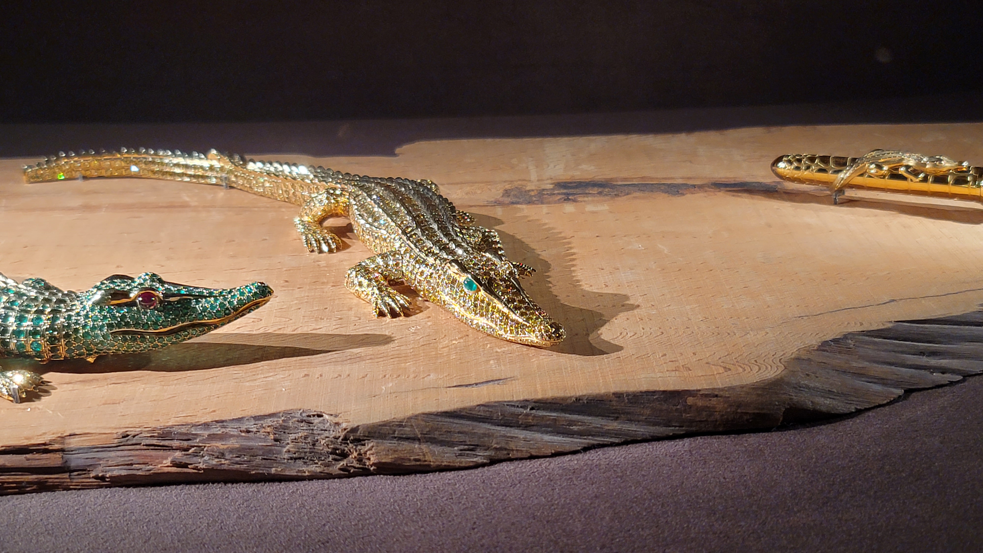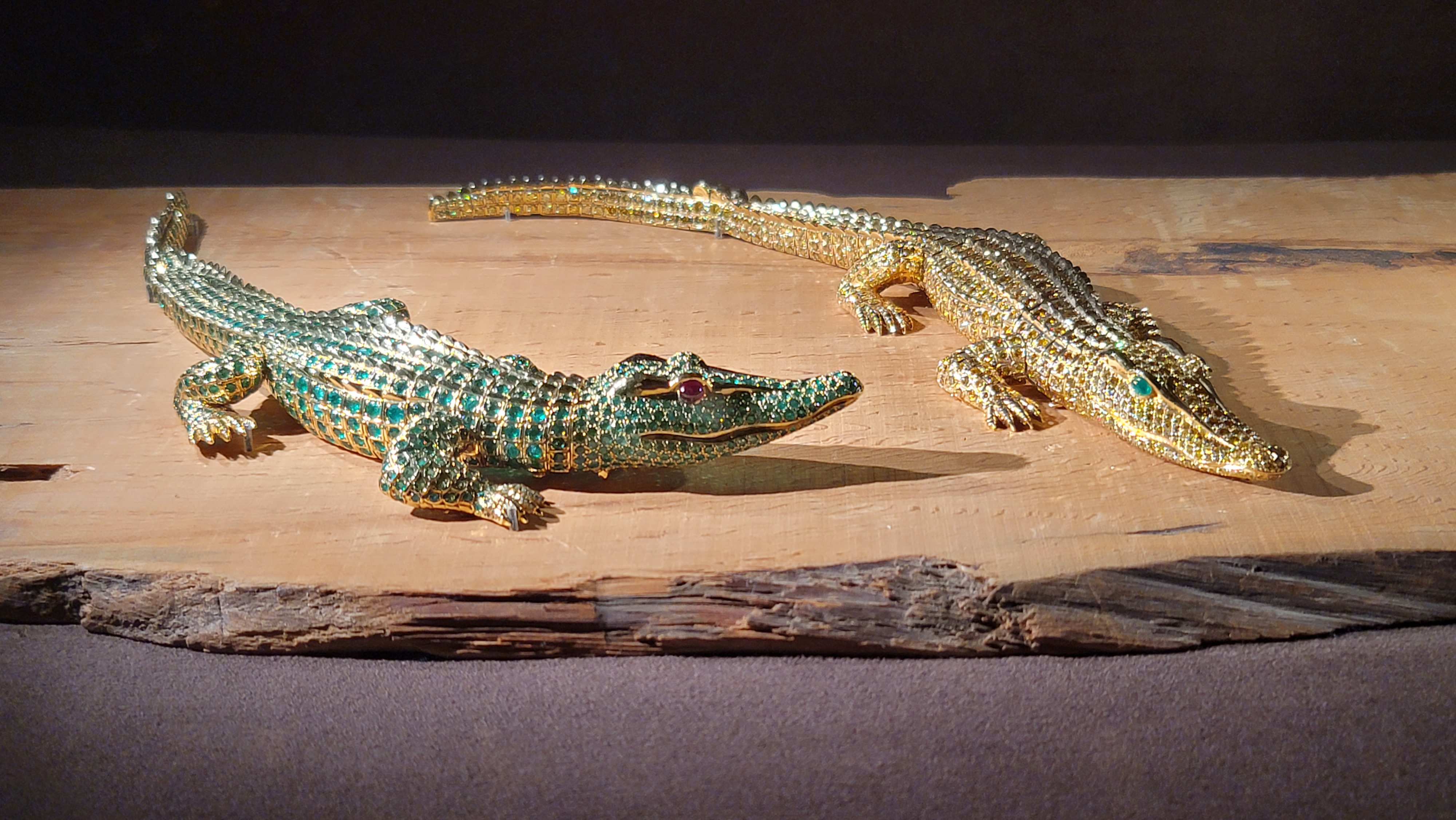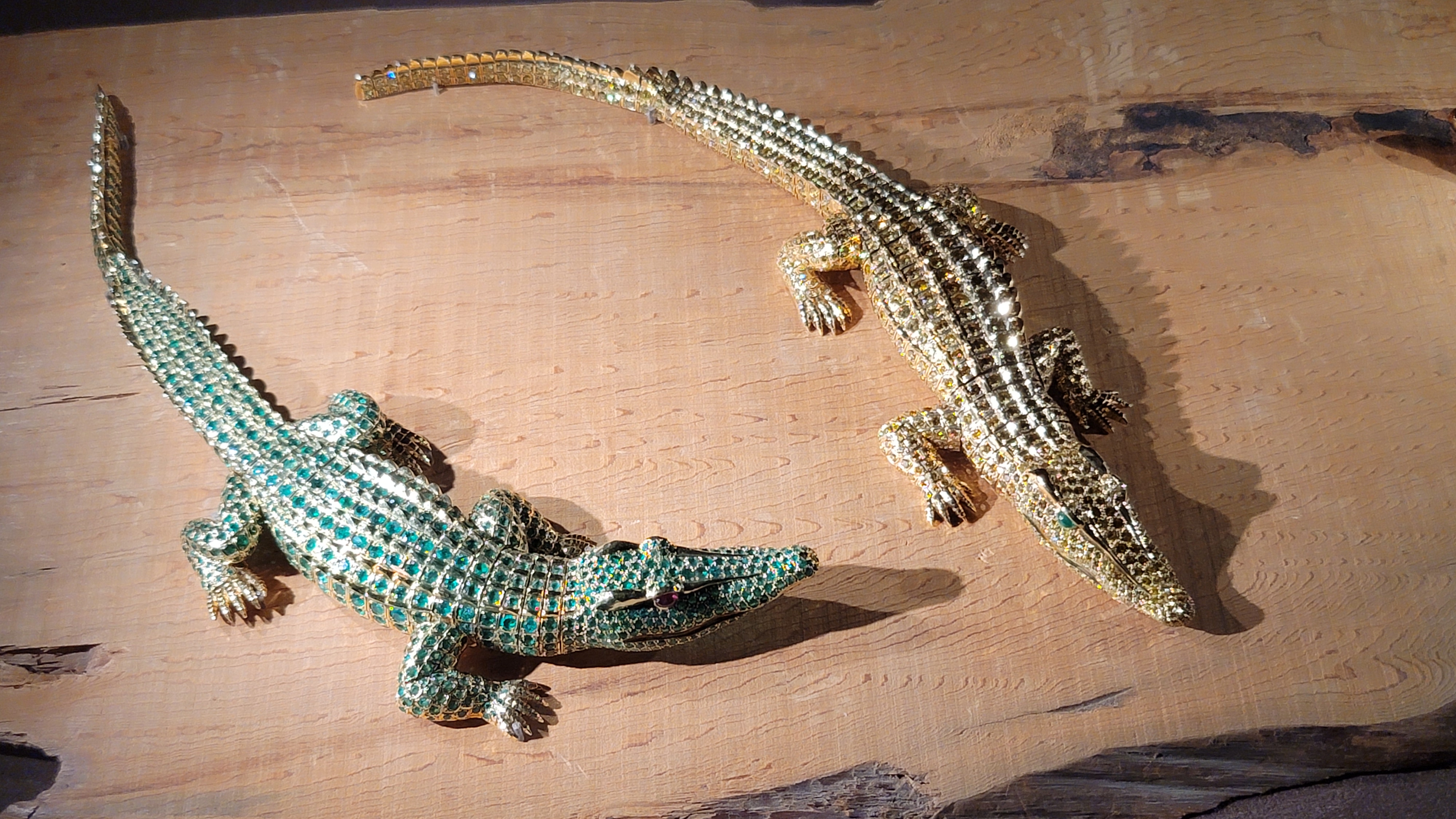녹색 악어는 콜롬비아 에메랄드를 사용했고, 금색 악어는 옐로우 다이아몬드입니다.