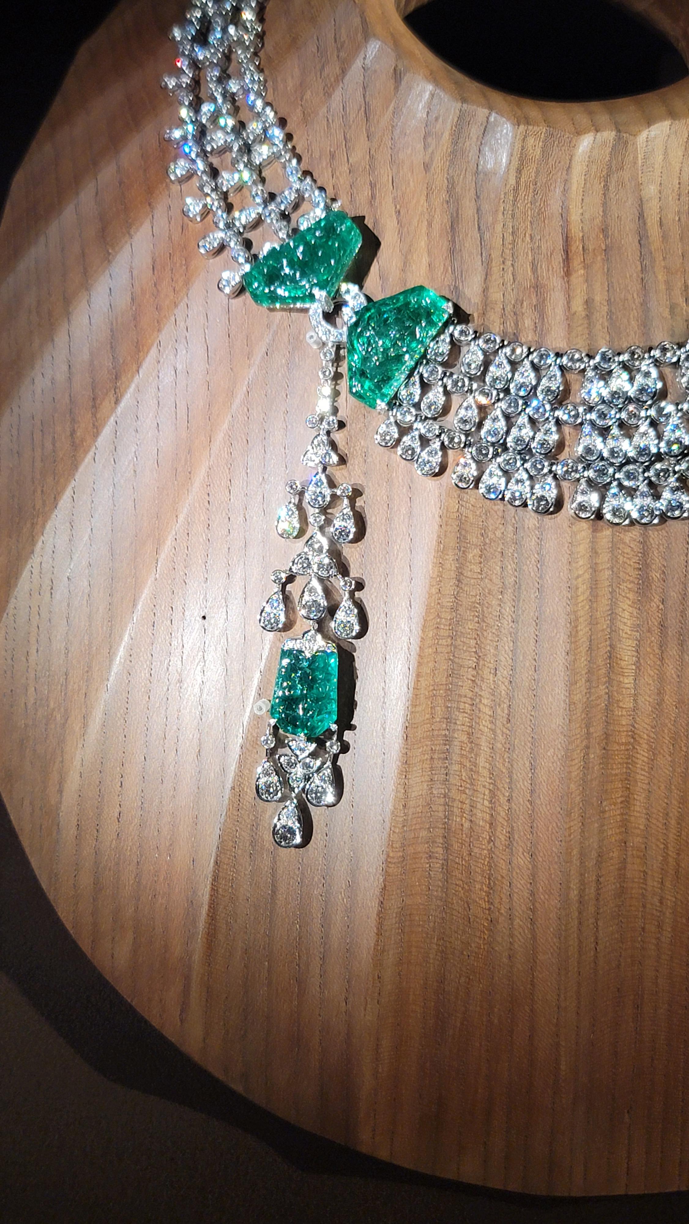 무굴 제국 스타일로 카빙된 에메랄드가 아름답습니다.