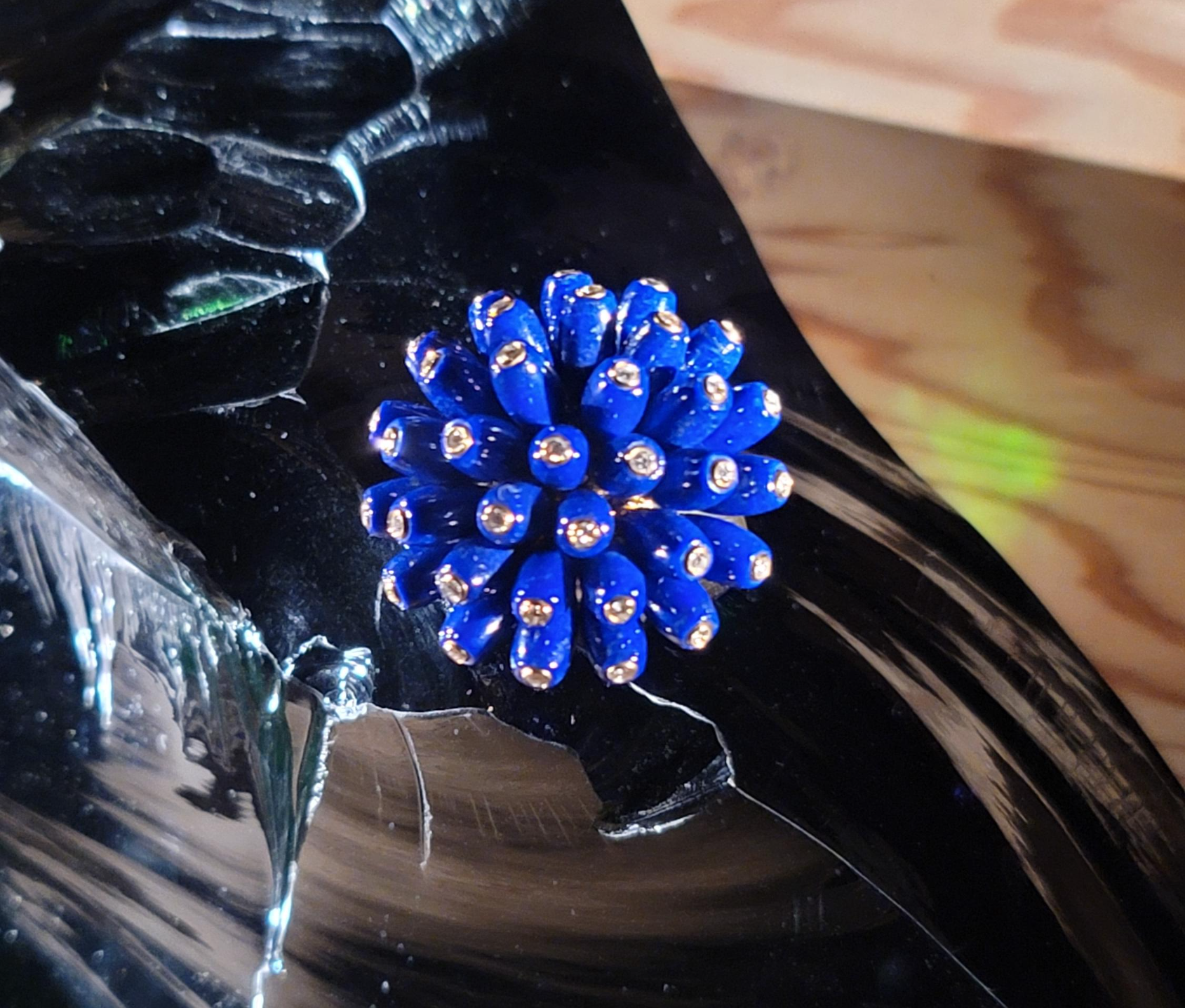 어떤 꽃을 모티브로 했는지 모르겠지만 터키석과 주홍빛 꽃의 조화가 좋네요.