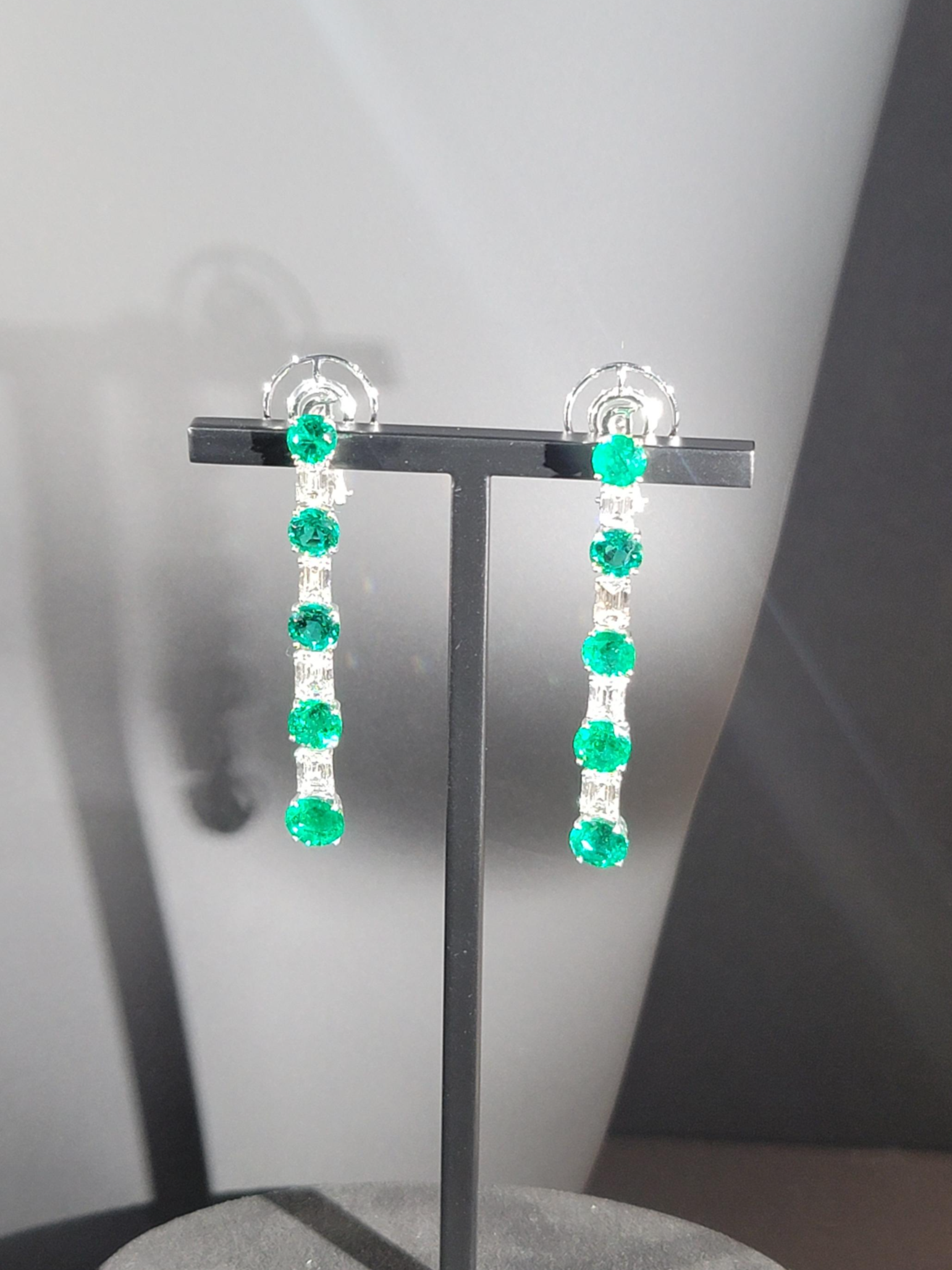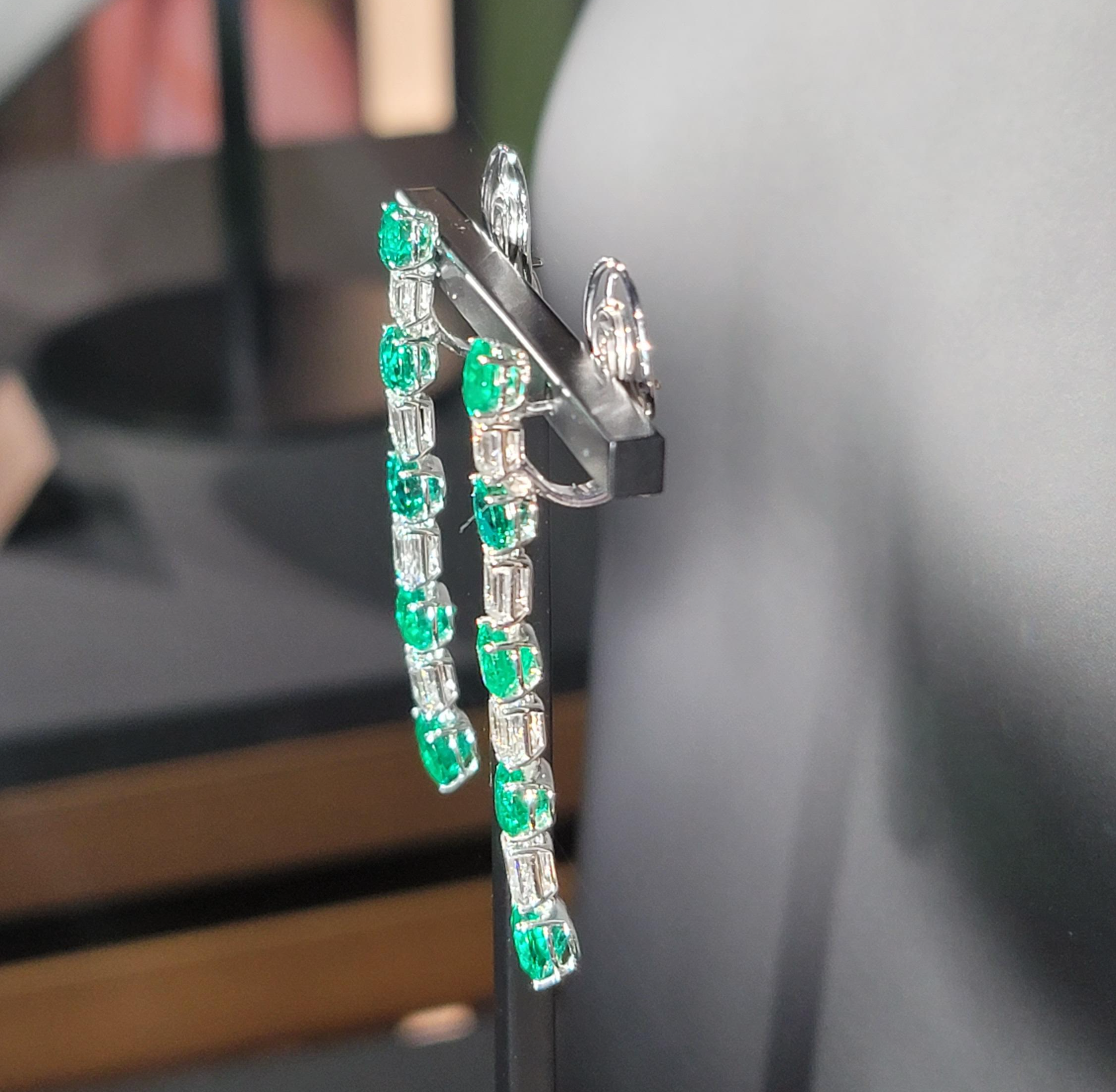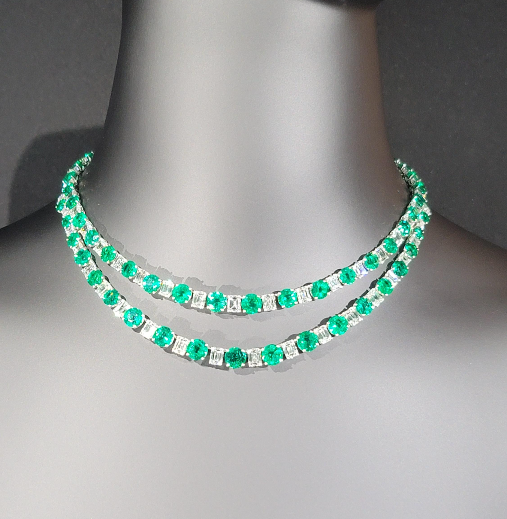 에메랄드와 다이아몬드가 반복되는 목걸이.