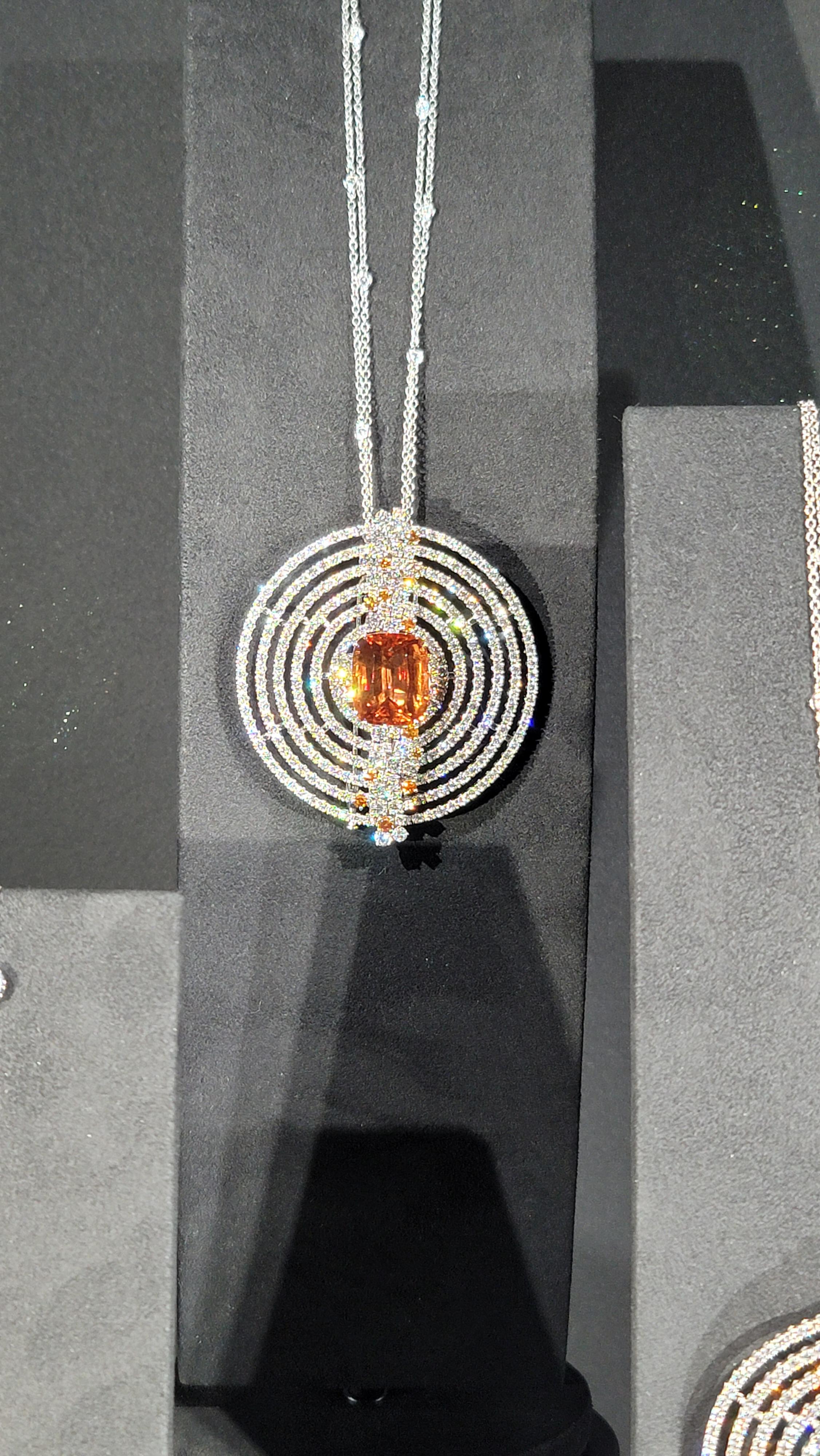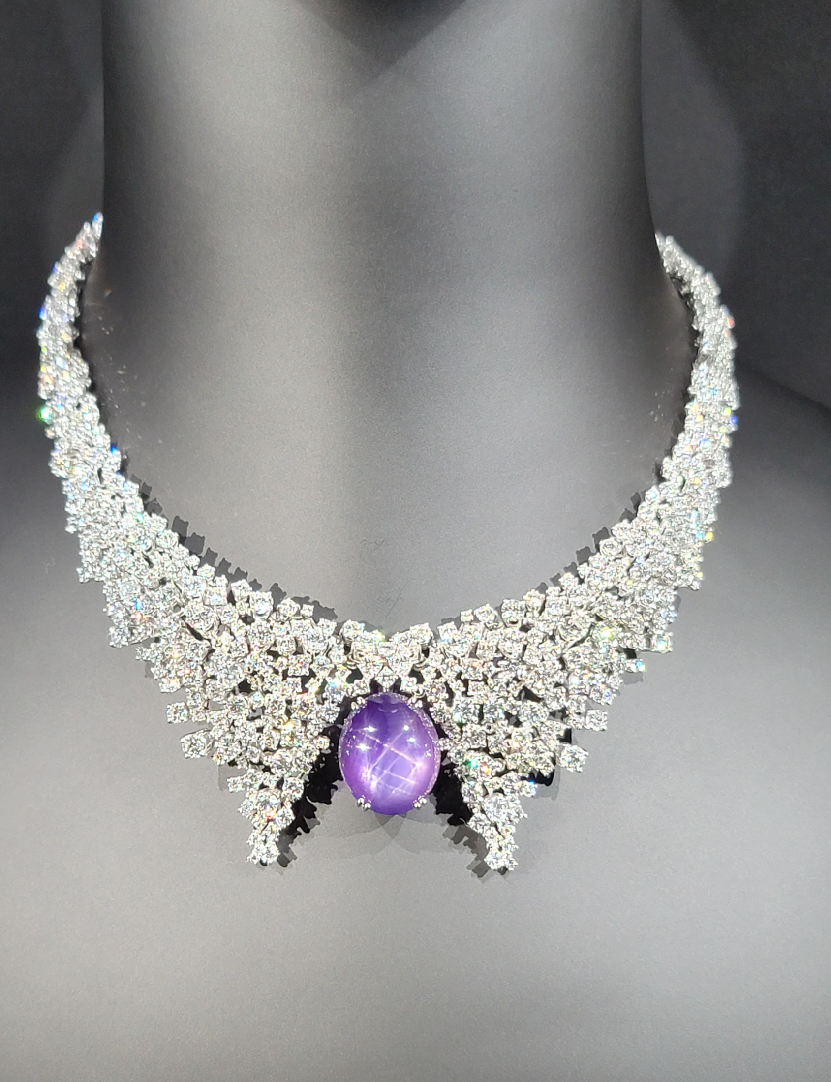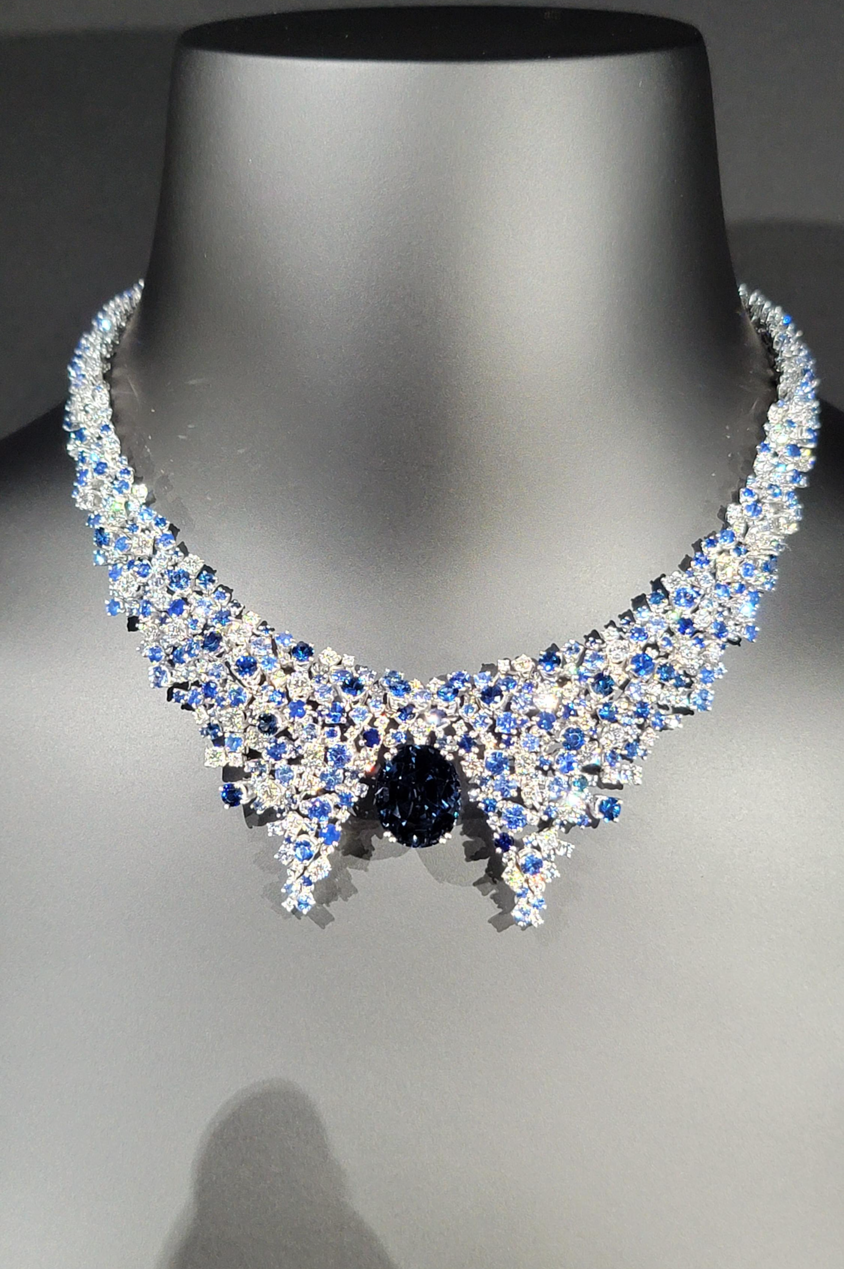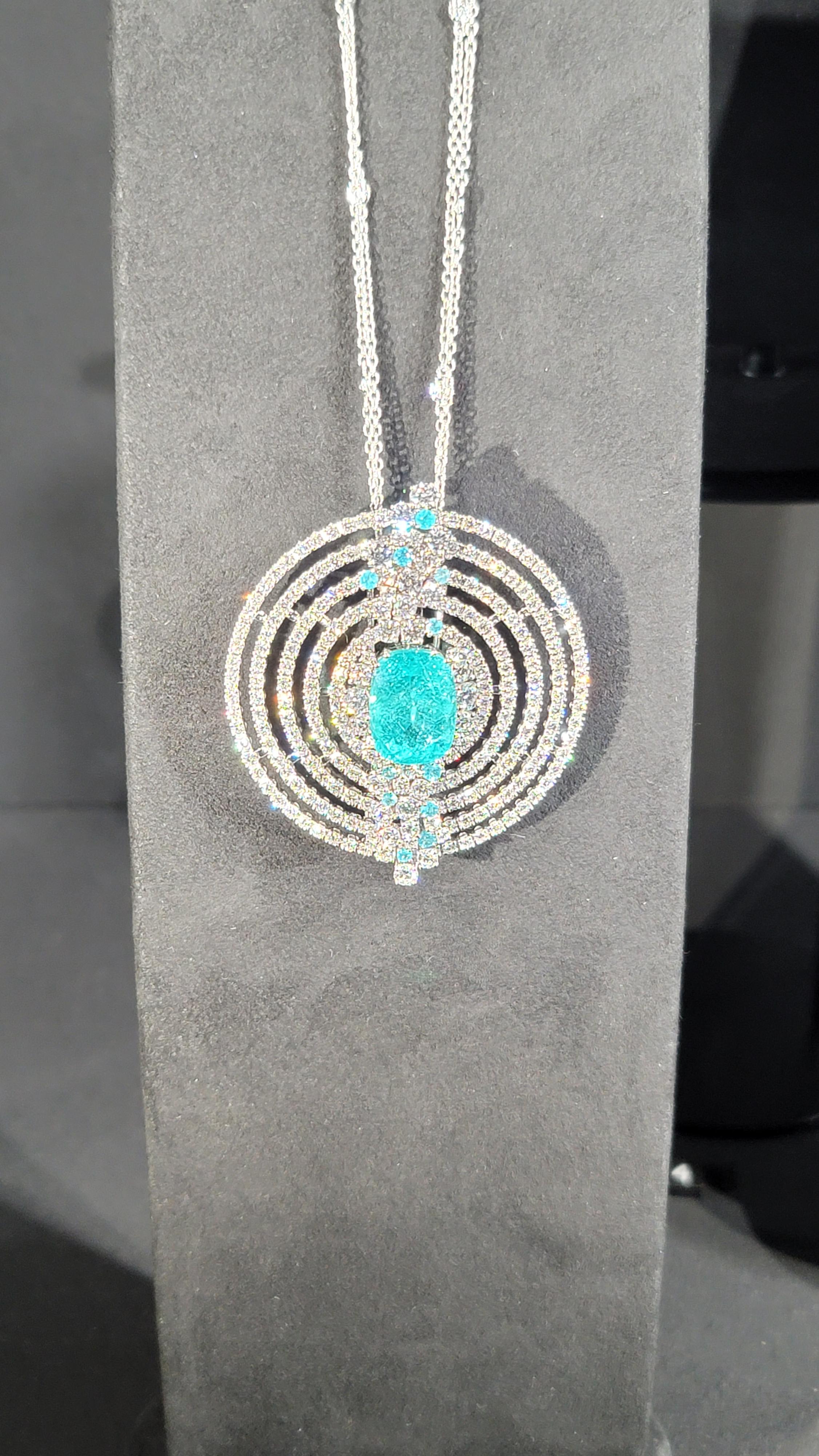 에메랄드와 다이아몬드가 반복되는 목걸이.