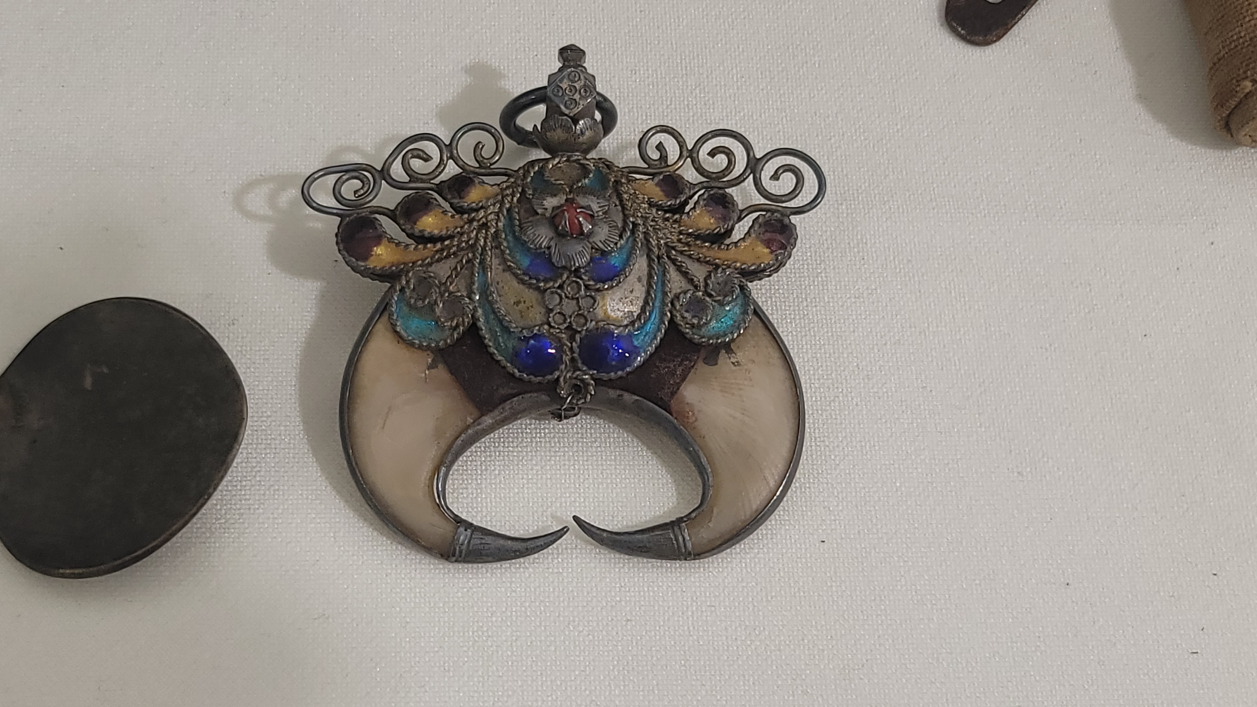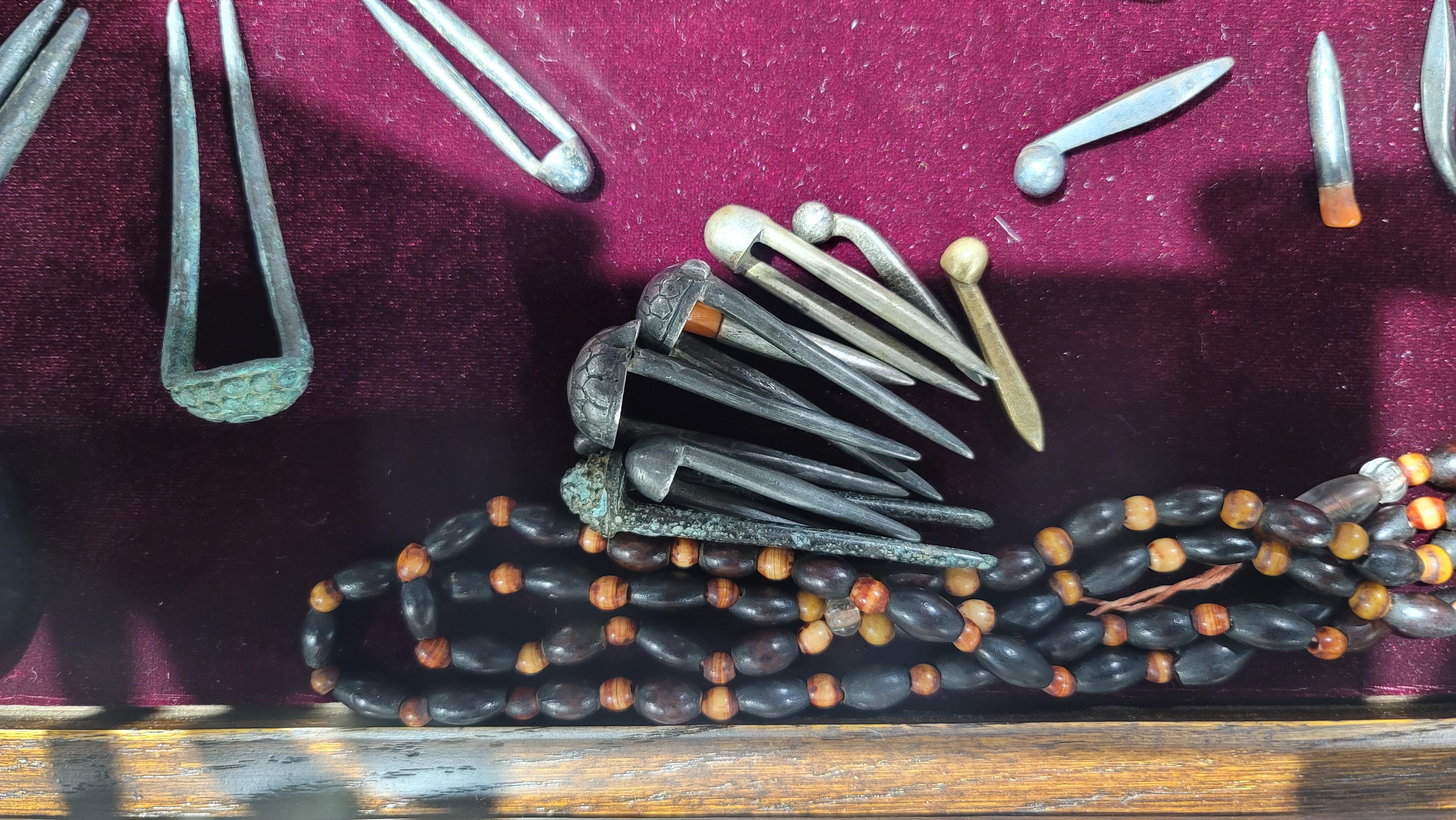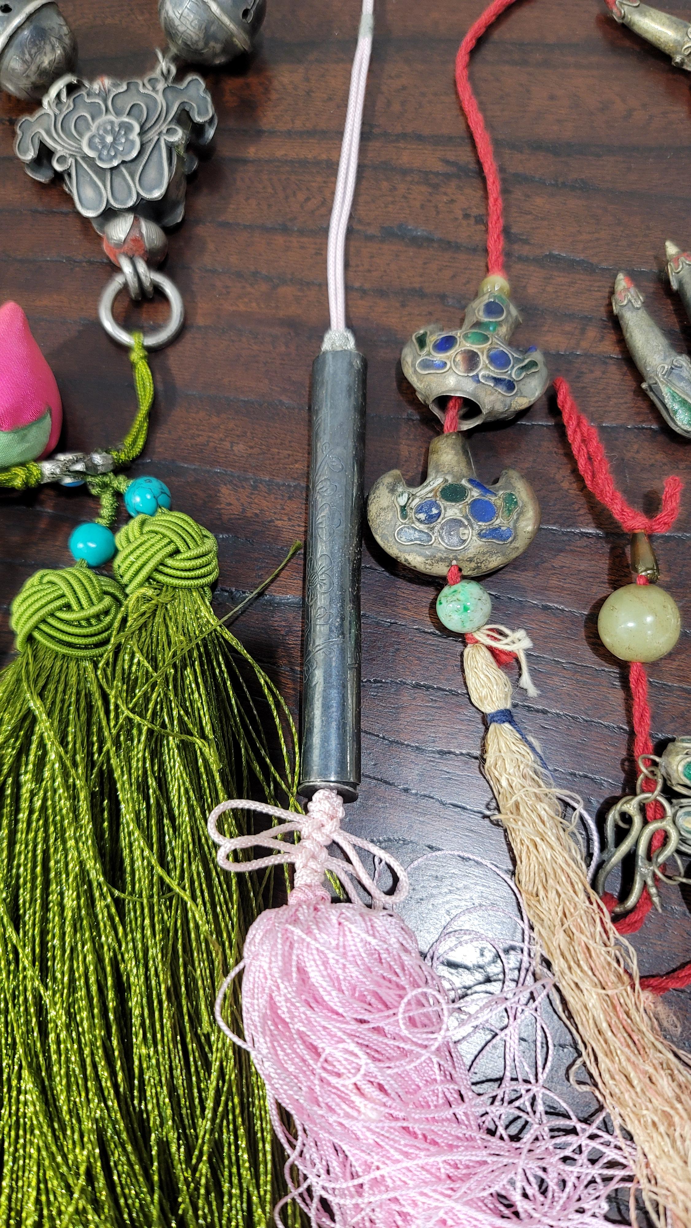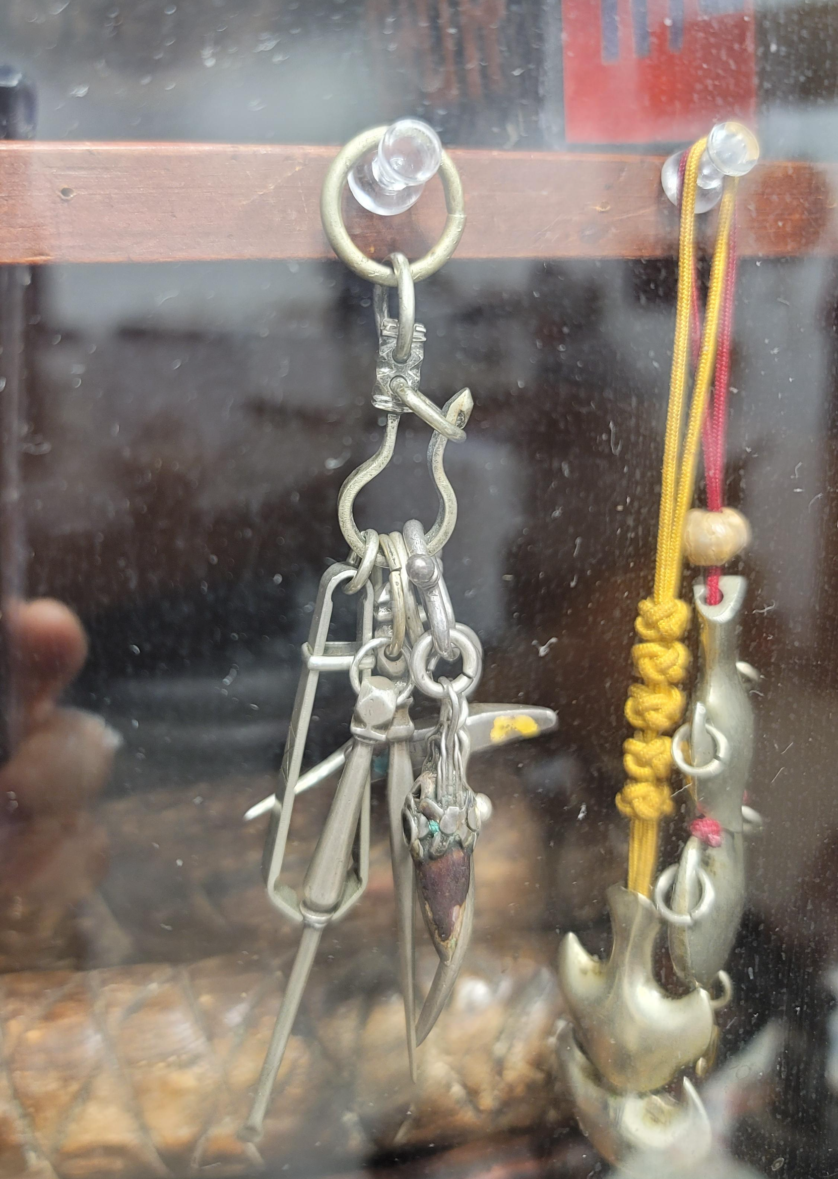 보시면 가시 뽑는 집게와 귀후비개, 작은 망치(?) 등 생활에 필요한 작은 기물들을 꿰어놓은 꾸러미입니다.