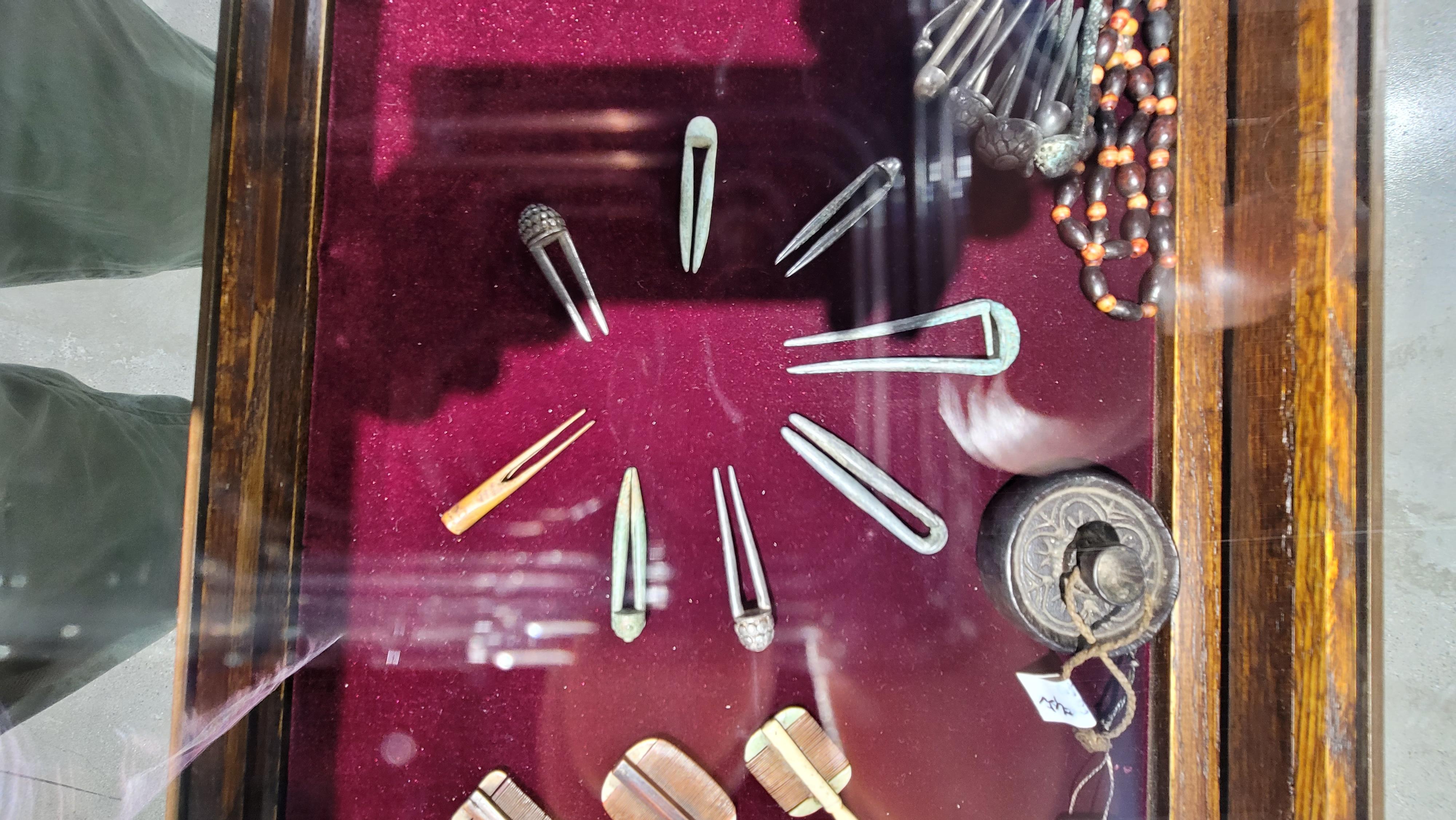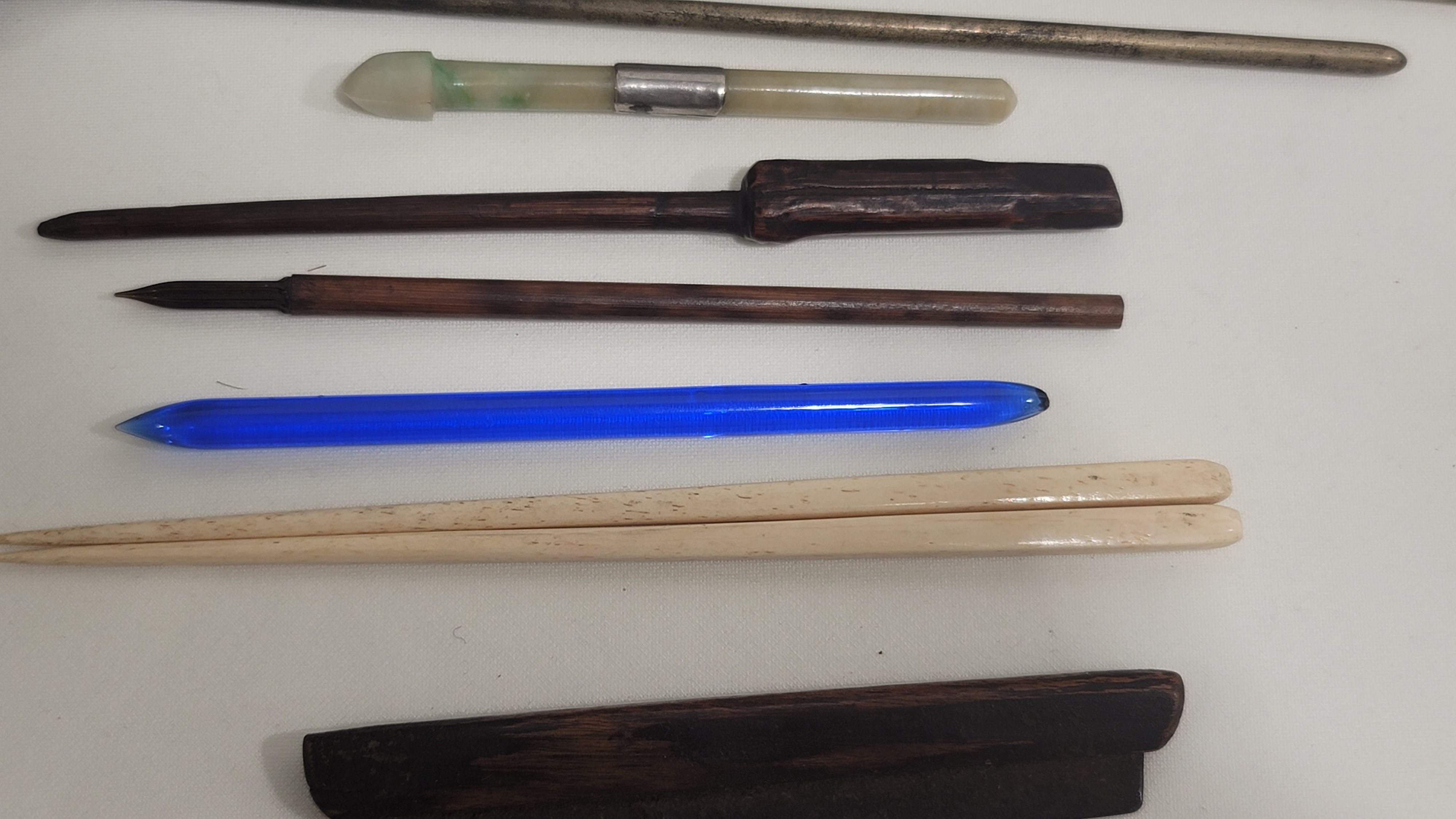 비녀, 붓, 젓가락 등 옛날 물건들...사이에...