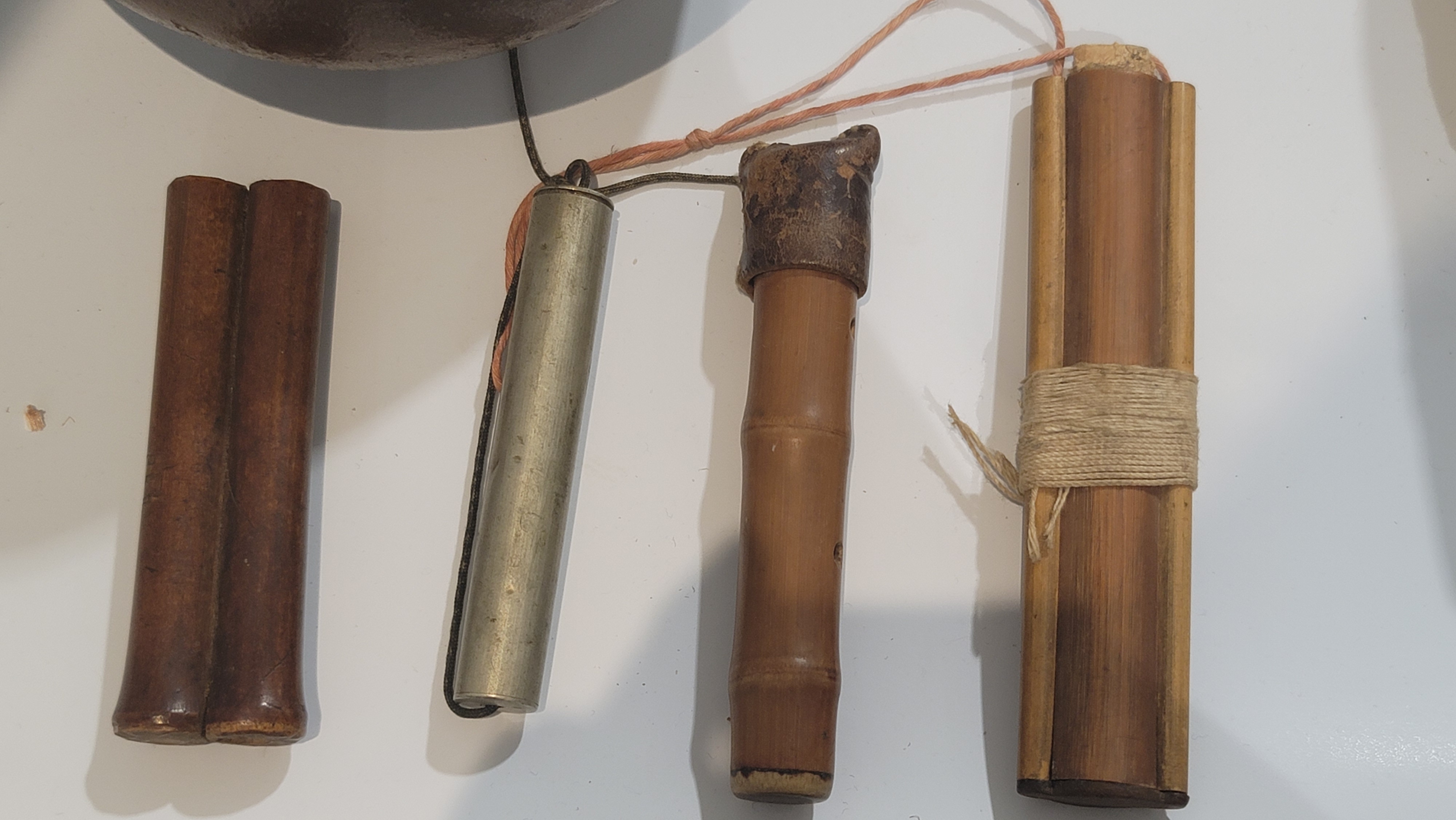 오른쪽은 대나무와 갈대 같은 소재에 위에 종이를 뭉친 것 같은 뚜껑이 박혀 있습니다.