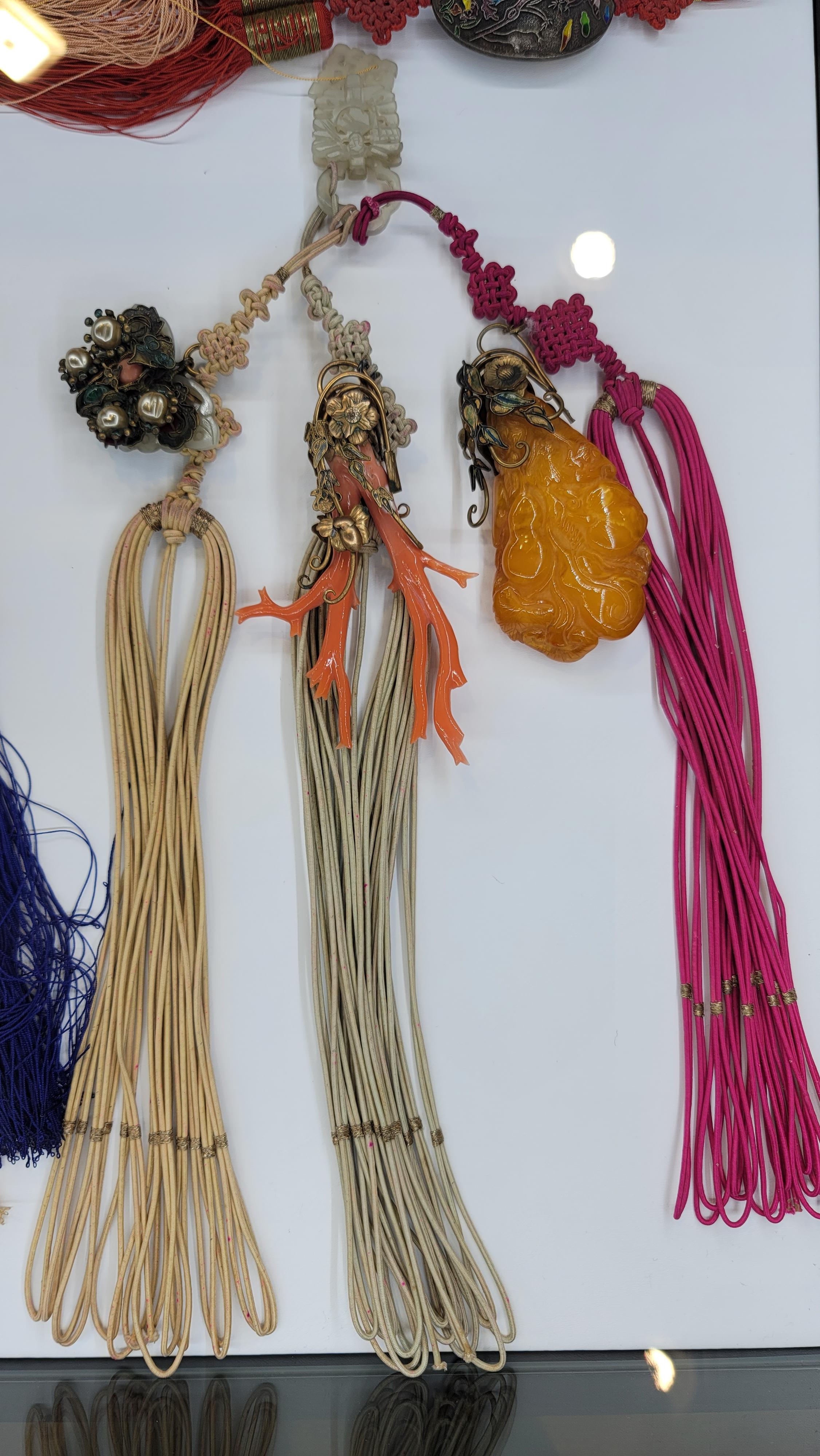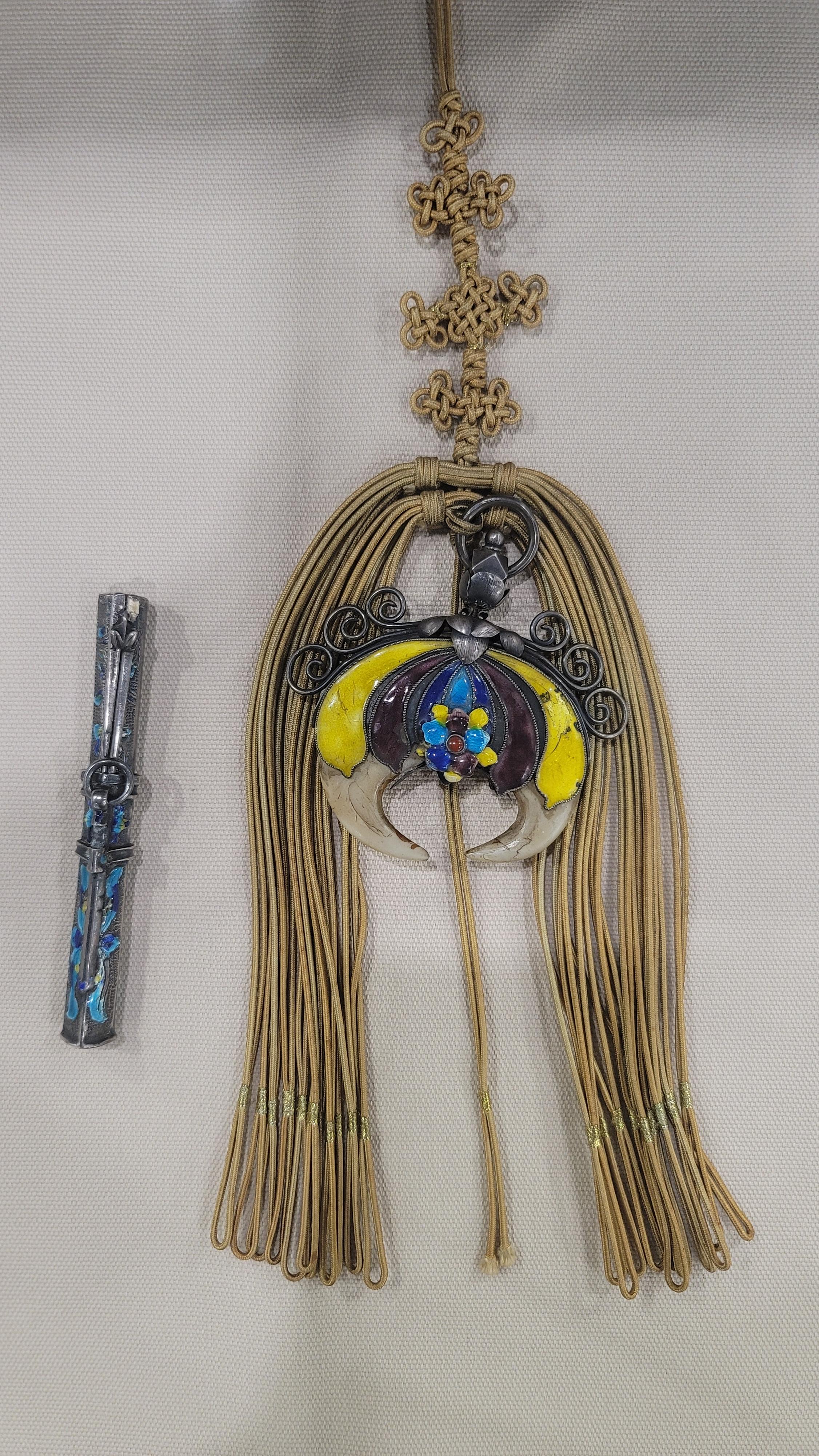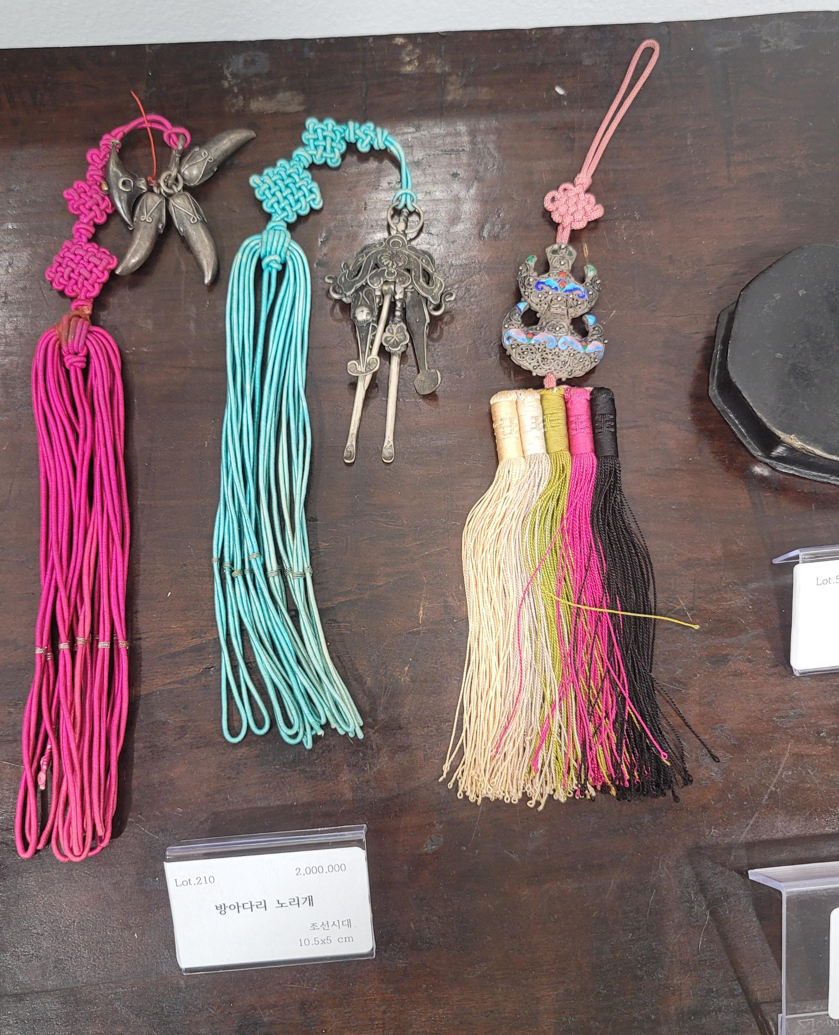 은에 칠보로 꾸민 화려한 노리개들 사이에 있는,