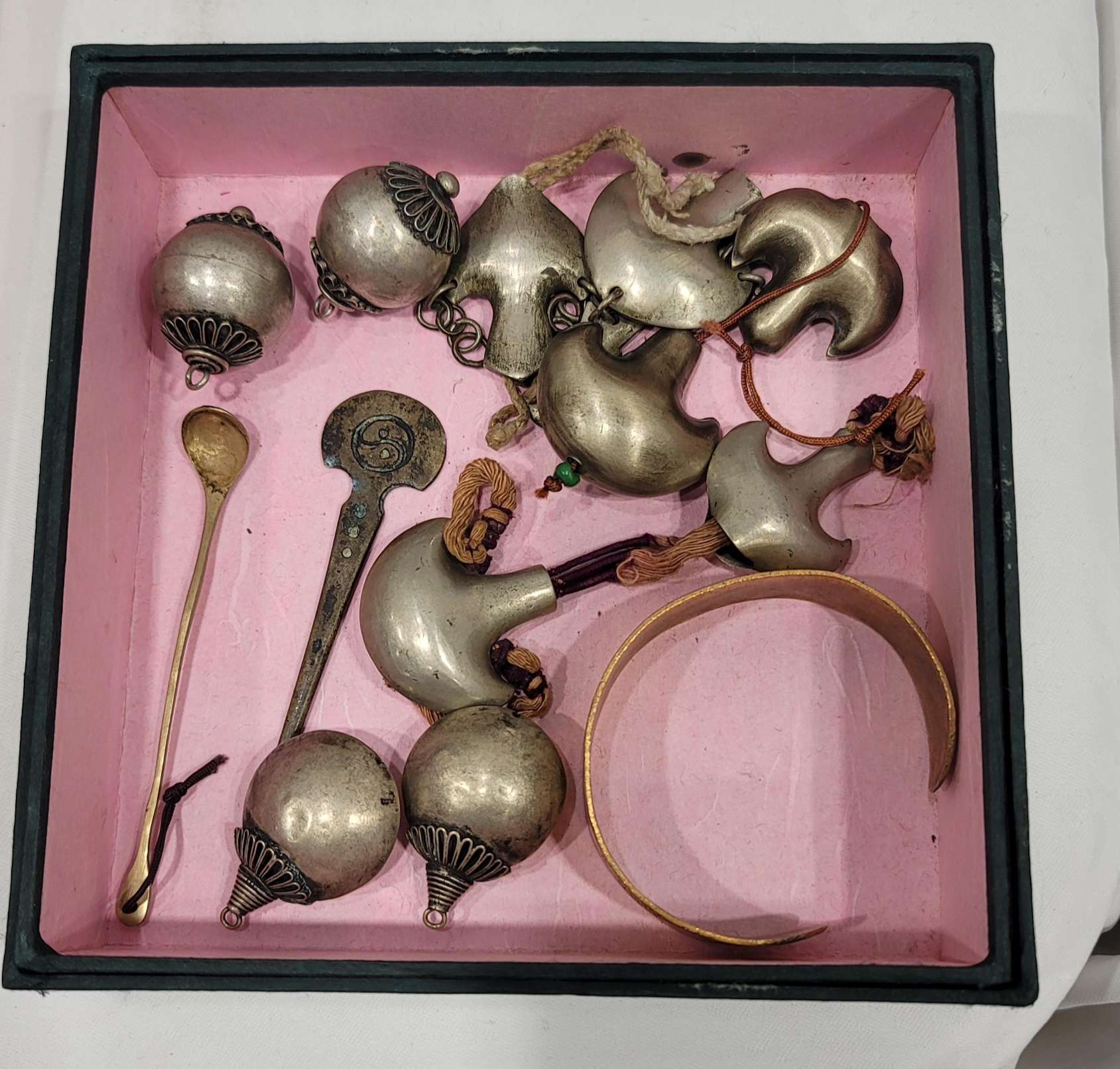 은으로 된, 노리개나 구슬 목걸이 등의 부품으로 보이는 것들.
