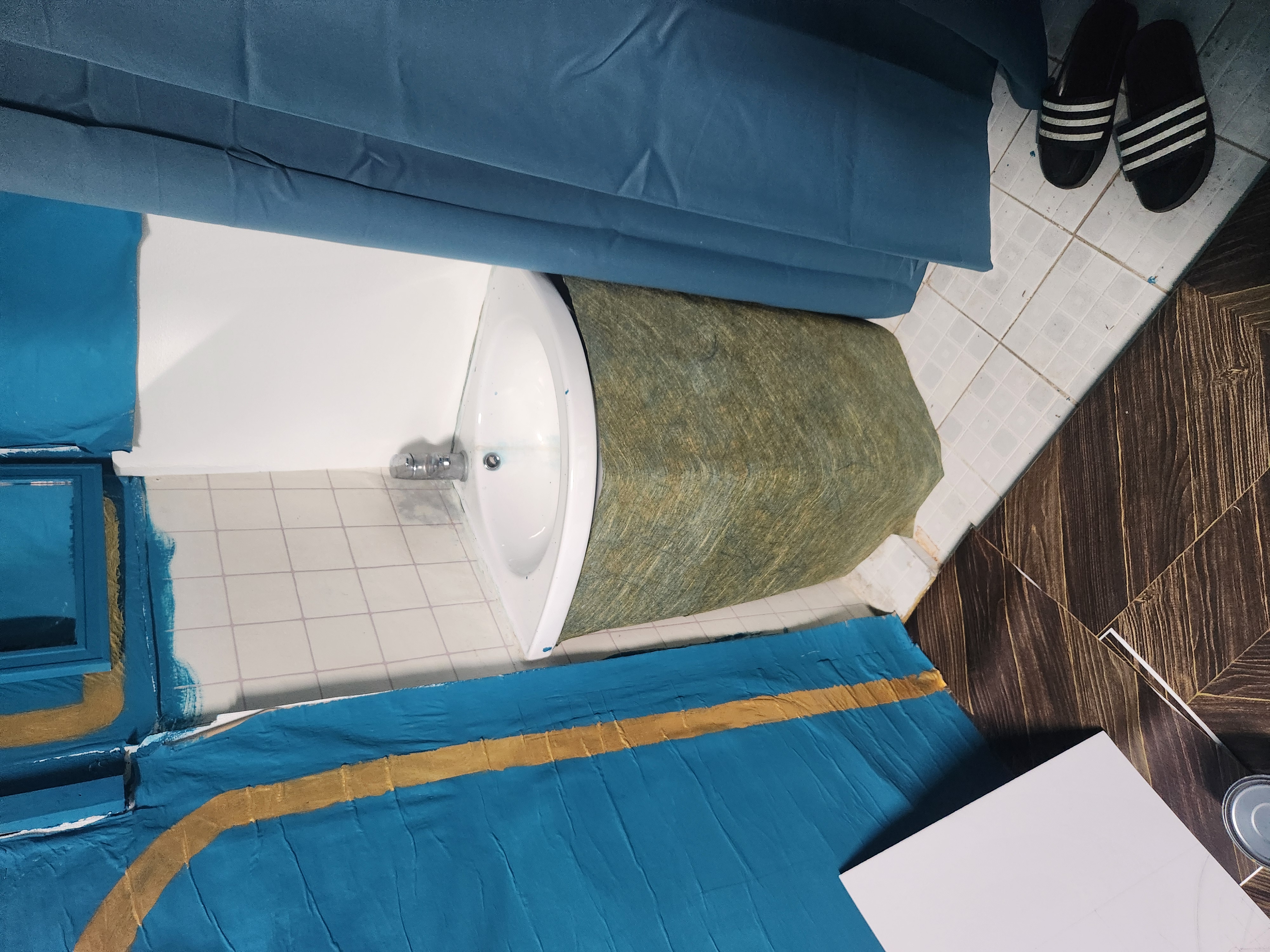 세면대에 붙은 페인트 자국도 지워야하는데 이건 공사가 끝난 후 대청소로 미뤄놓겠습니다.