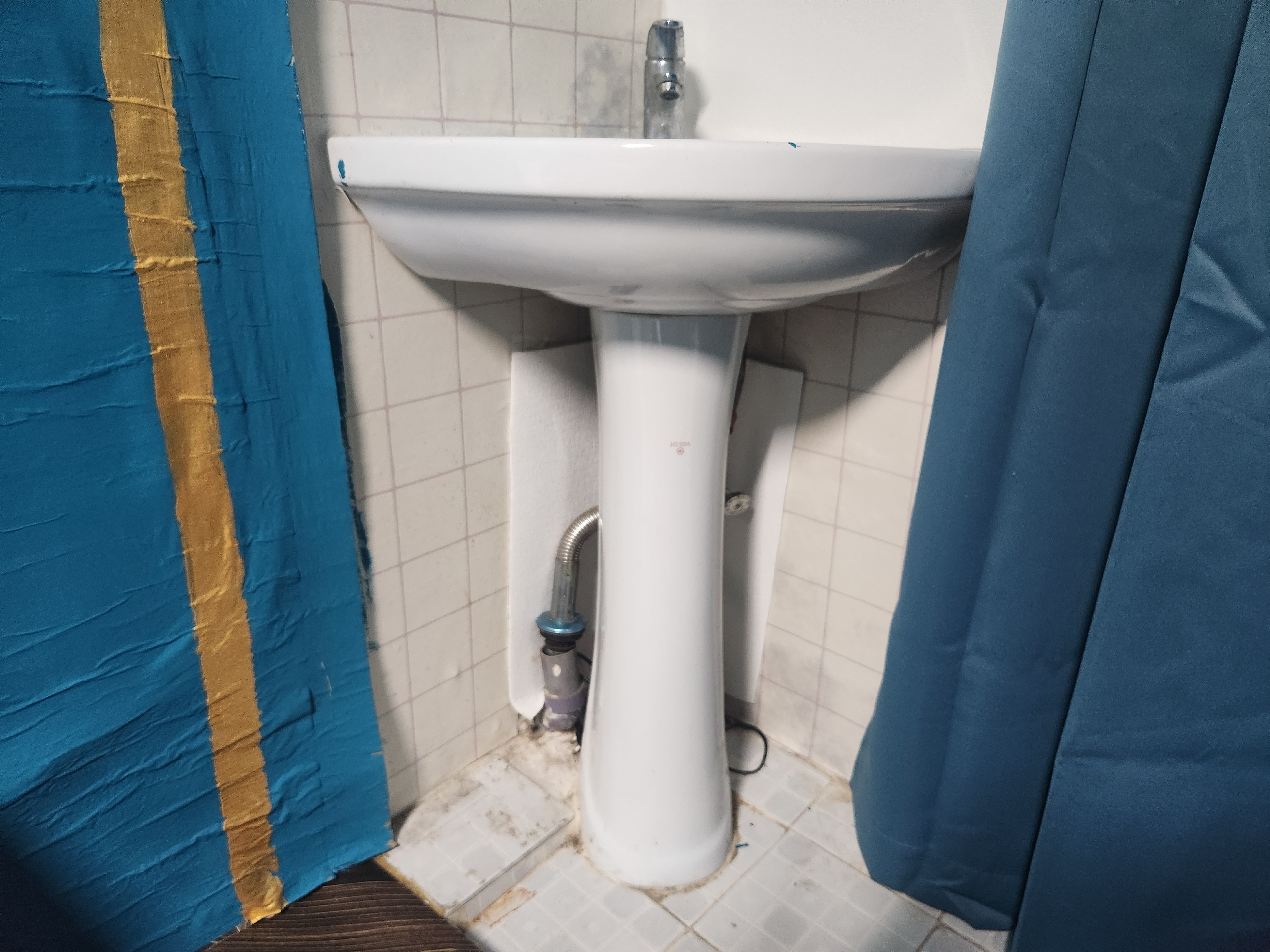 벽에 붙였으면 이렇게 각이 지진 않았겠지만 그러면 세면대 배관에 문제가 생겼을 때 덮개를 뜯어내야 하니까요.
