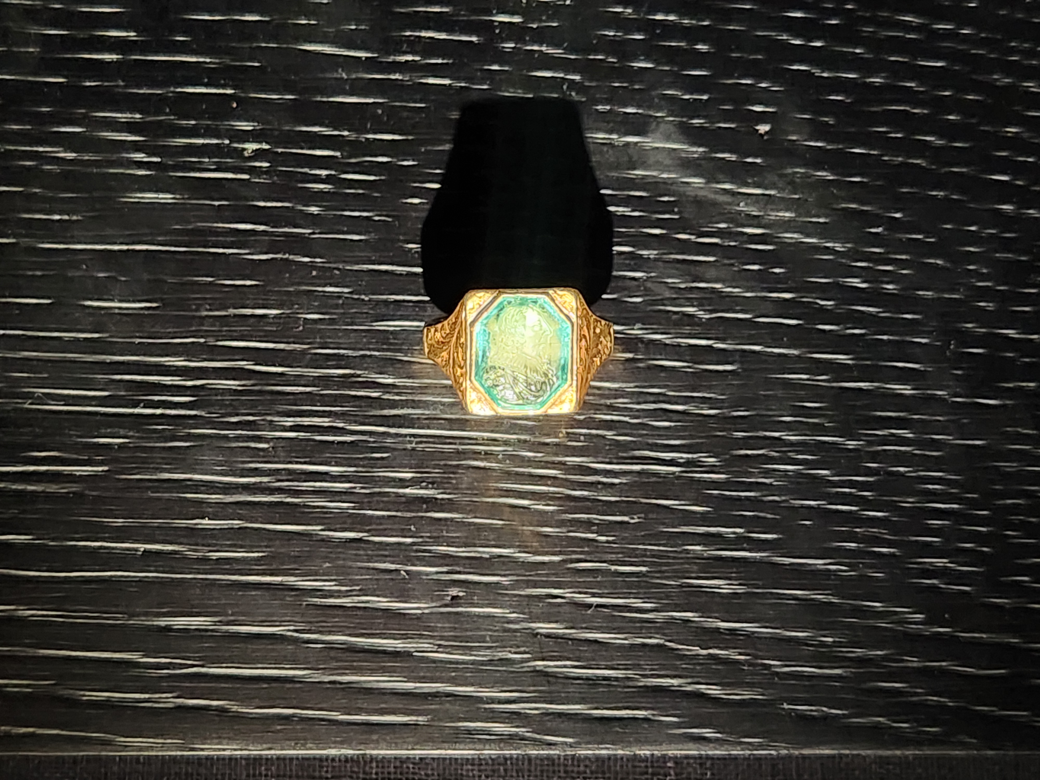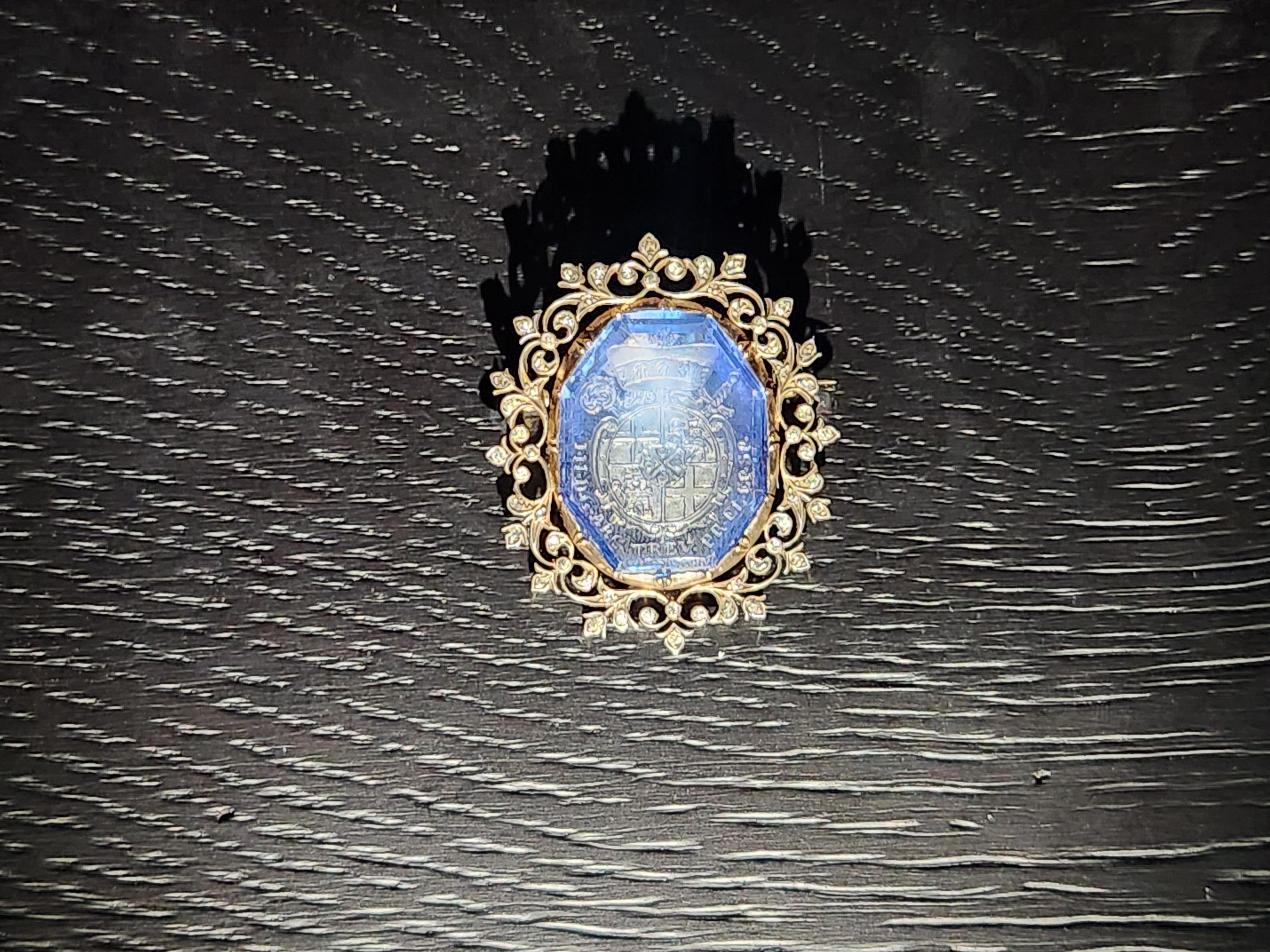 중세 물건이라서 금으로 스톤을 거의 덮다시피 세팅했더군요. 뒷면에는 에나멜로 장식했습니다.