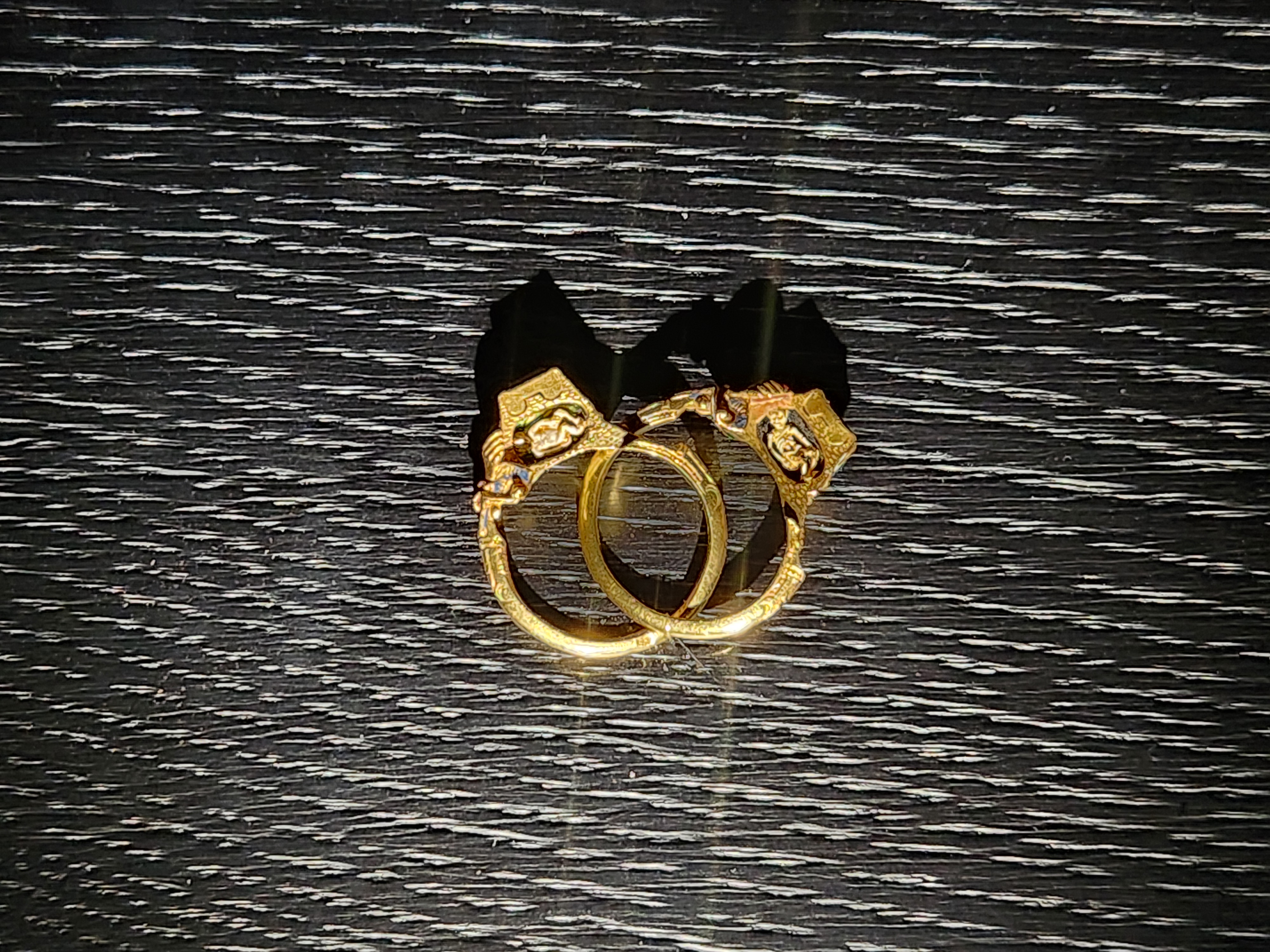 금 반지인데 윗부분에 지붕처럼 맞닿는 면을 만들어서 세공을 한 겁니다.