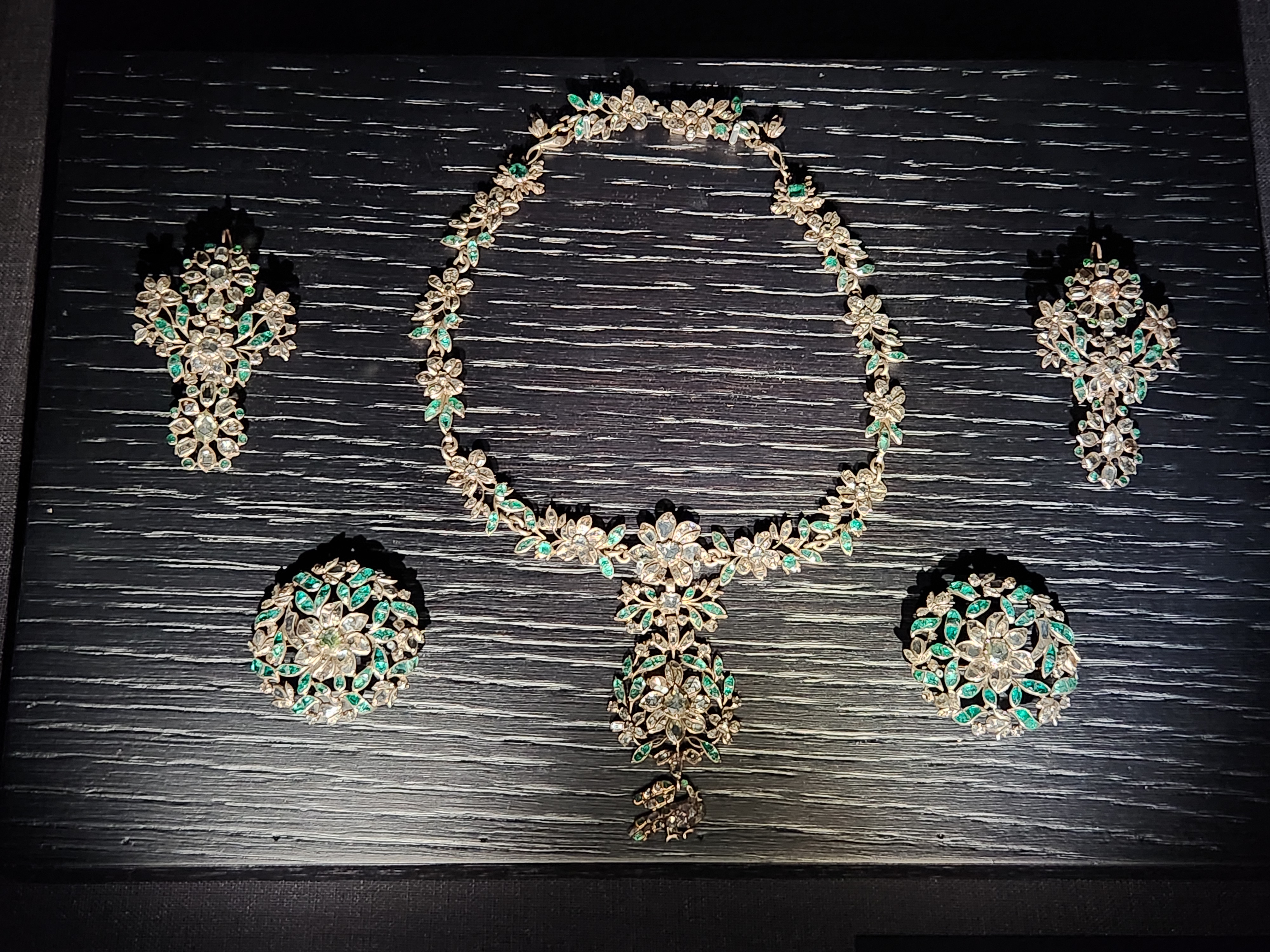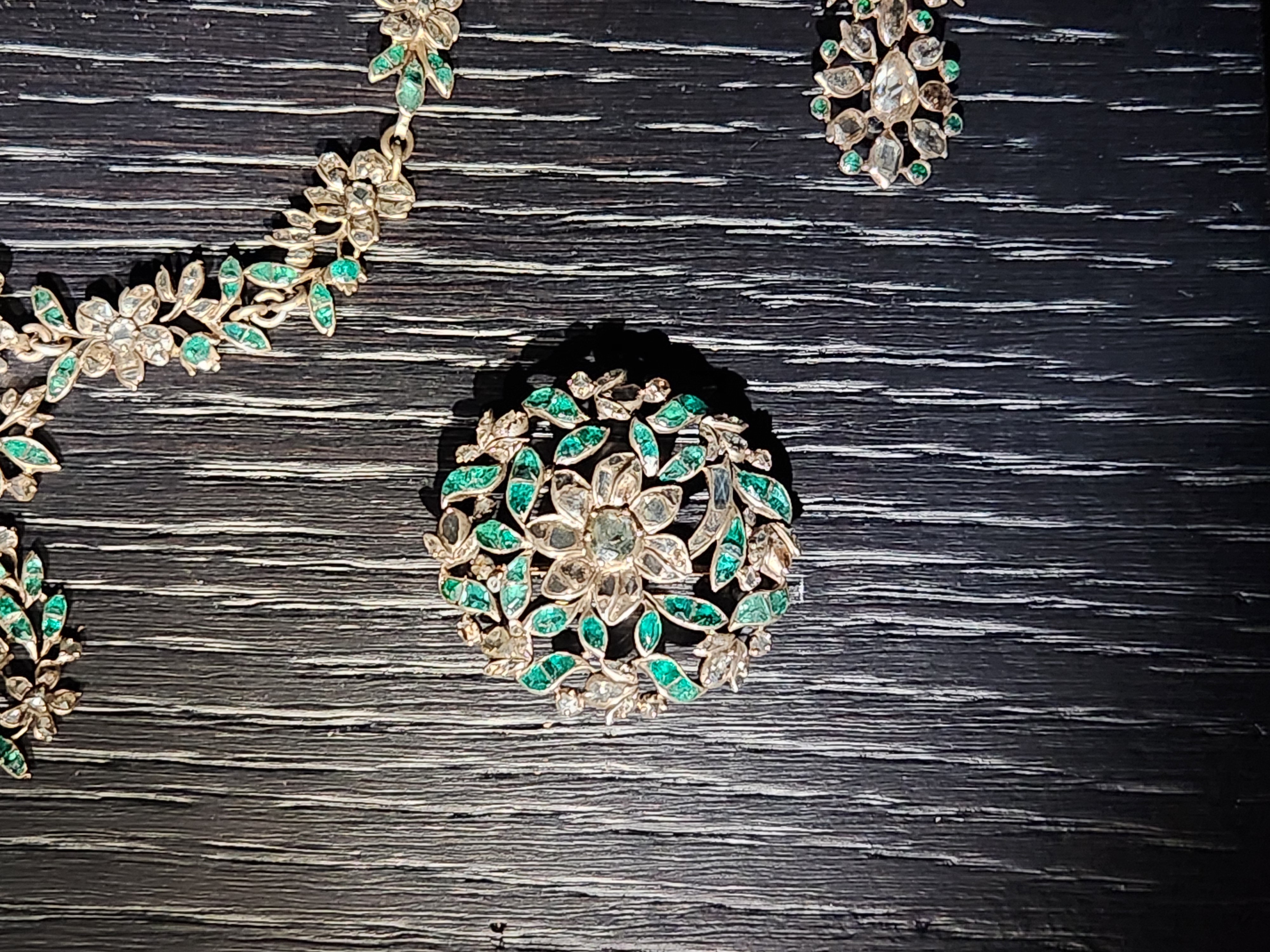 멋진 에메랄드 목걸이와 귀걸이 세트.
