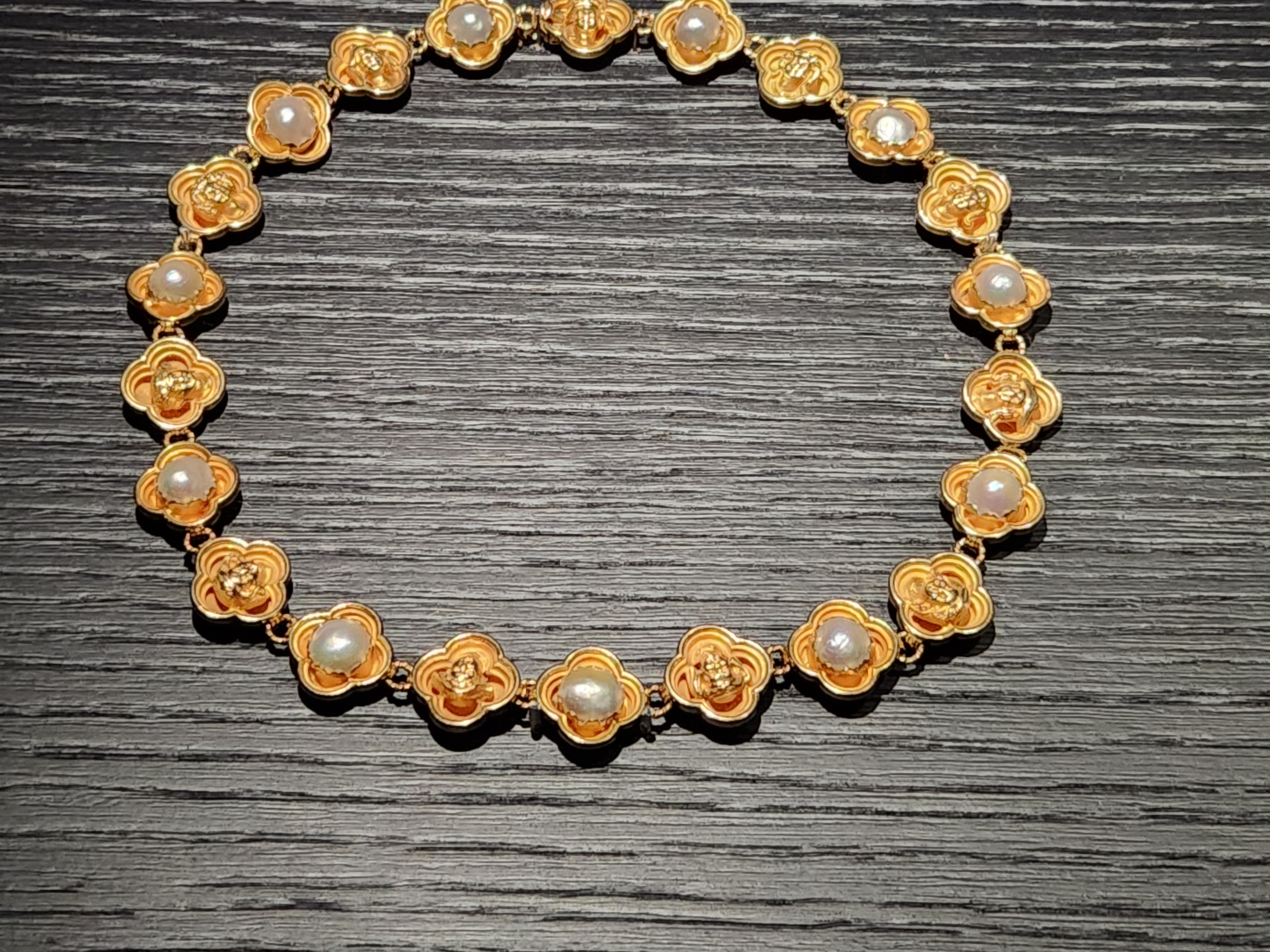 입체적인 4엽 프레임에 진주나 상징체를 박아넣은 팔찌입니다.
